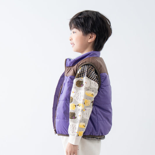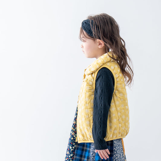 刺繍丸襟ベスト【リバーシブル】 YELLOW