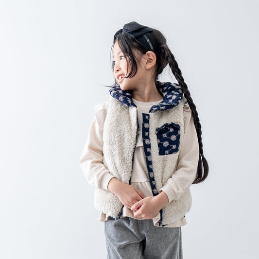 刺繍丸襟ベスト【リバーシブル】 NAVY