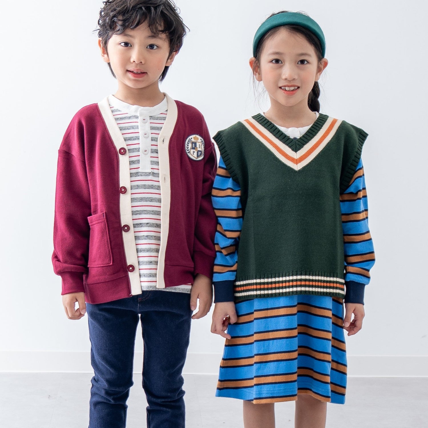 刺繍丸襟ベスト【リバーシブル】 NAVY