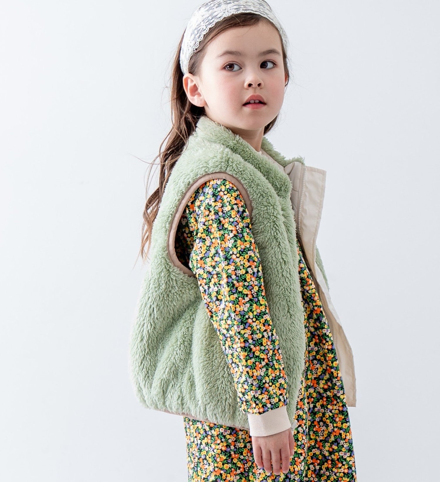 刺繍丸襟ベスト【リバーシブル】 YELLOW