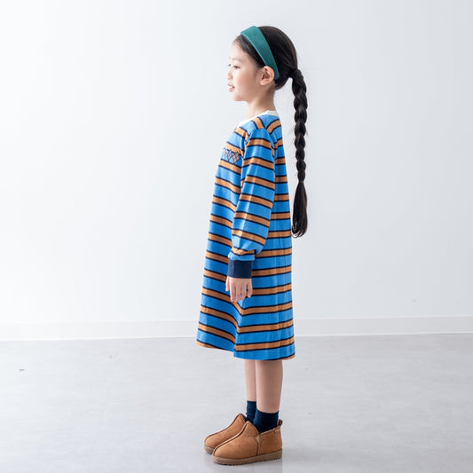 ヘンリーネックボーダーワンピース BLUE