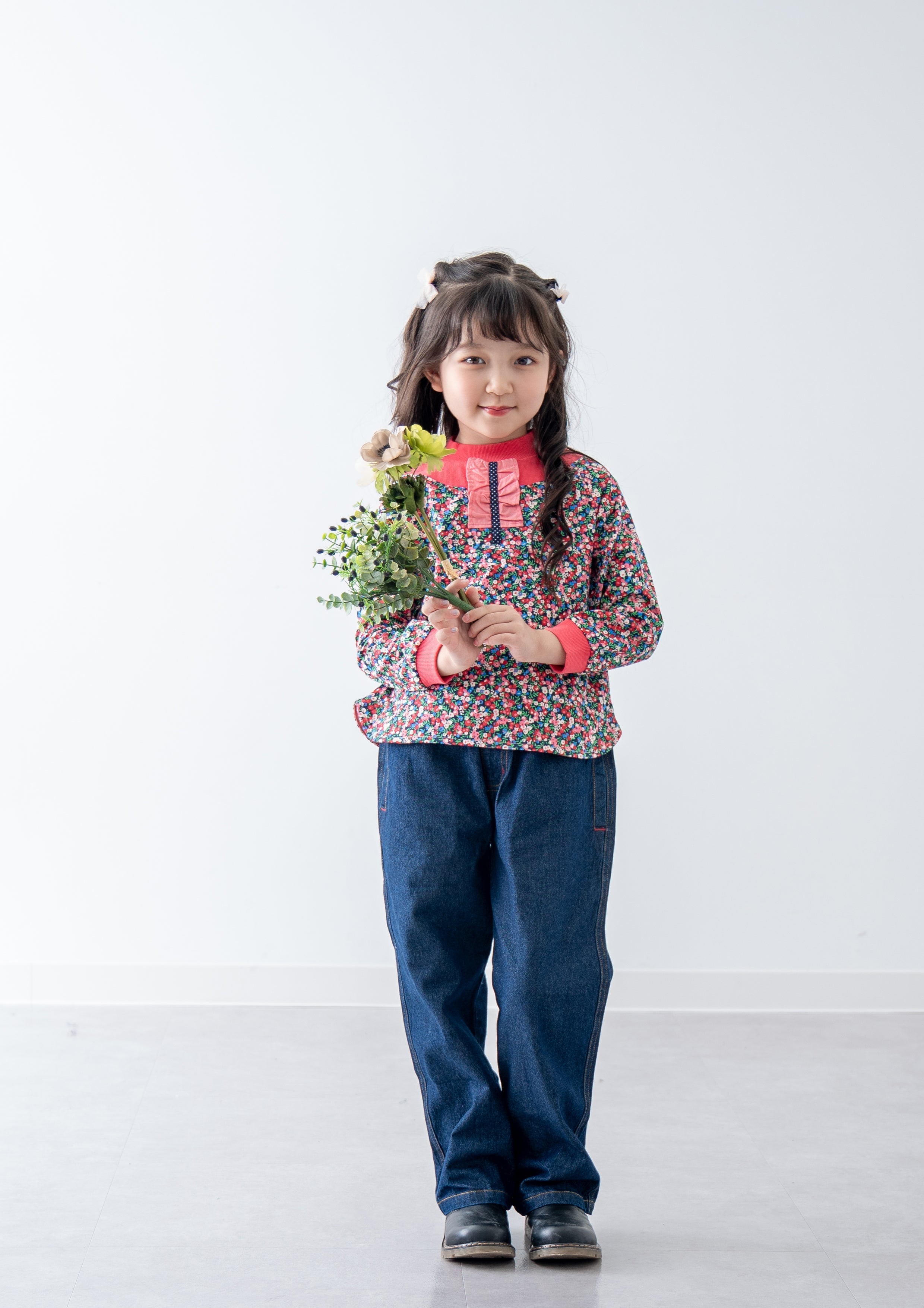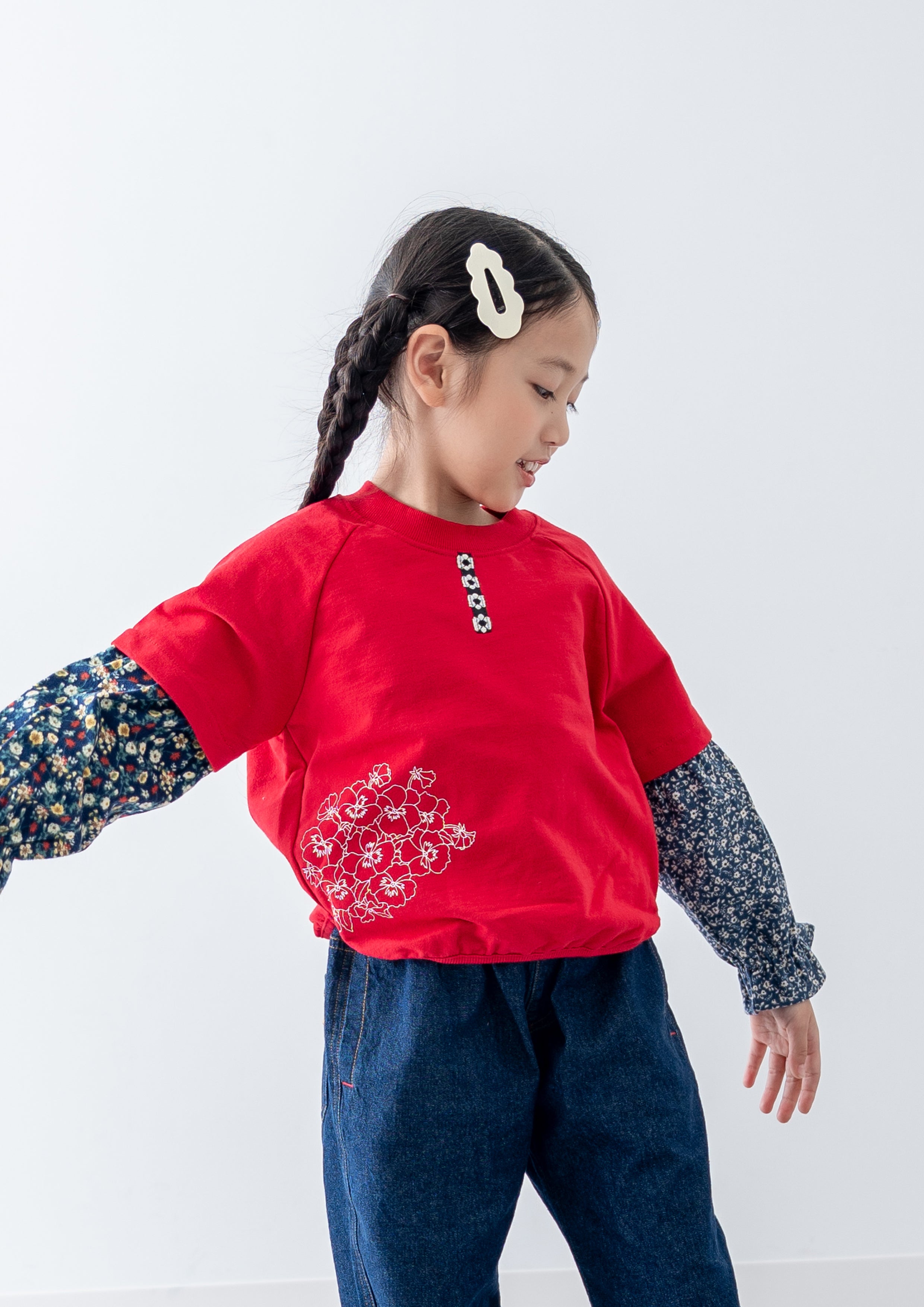 小花柄プリントトレーナー RED