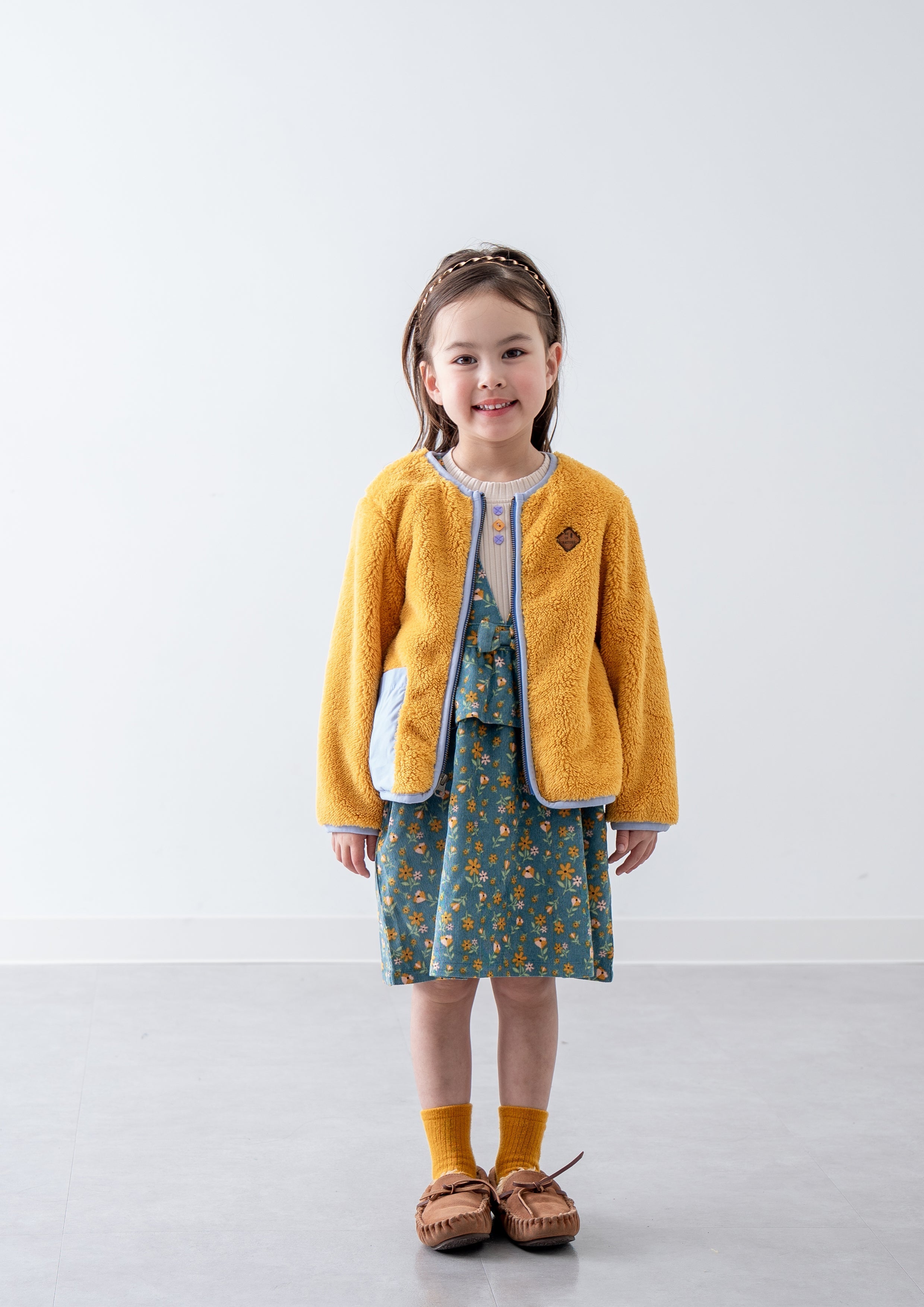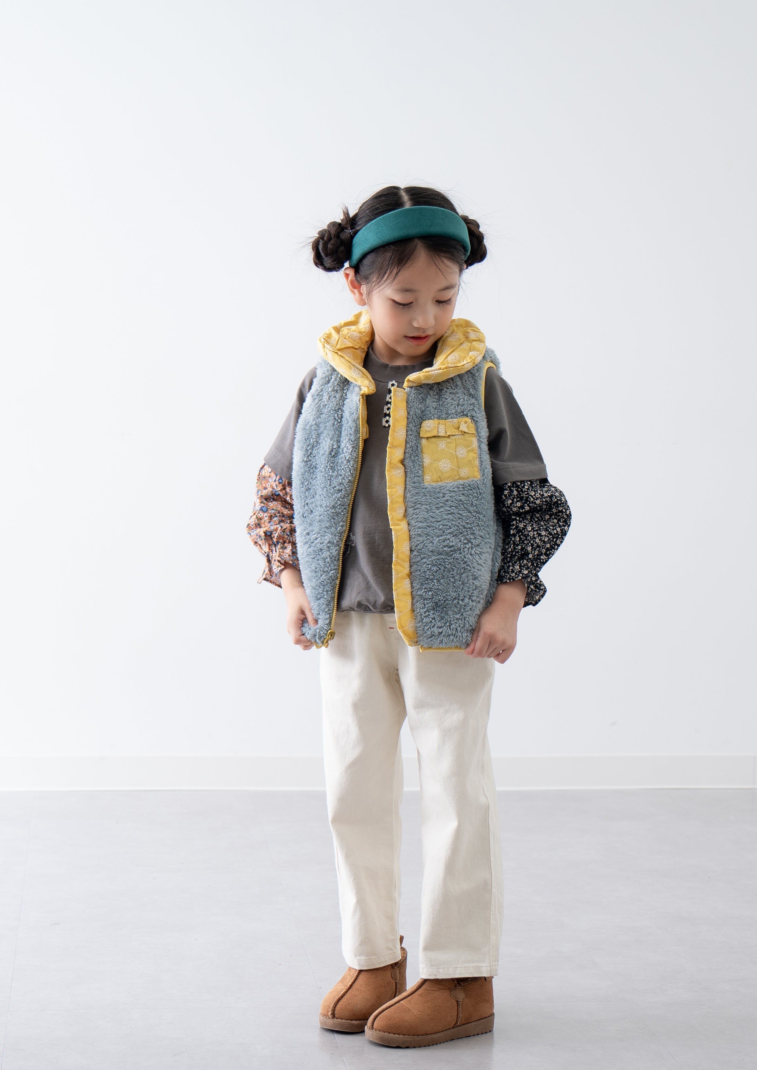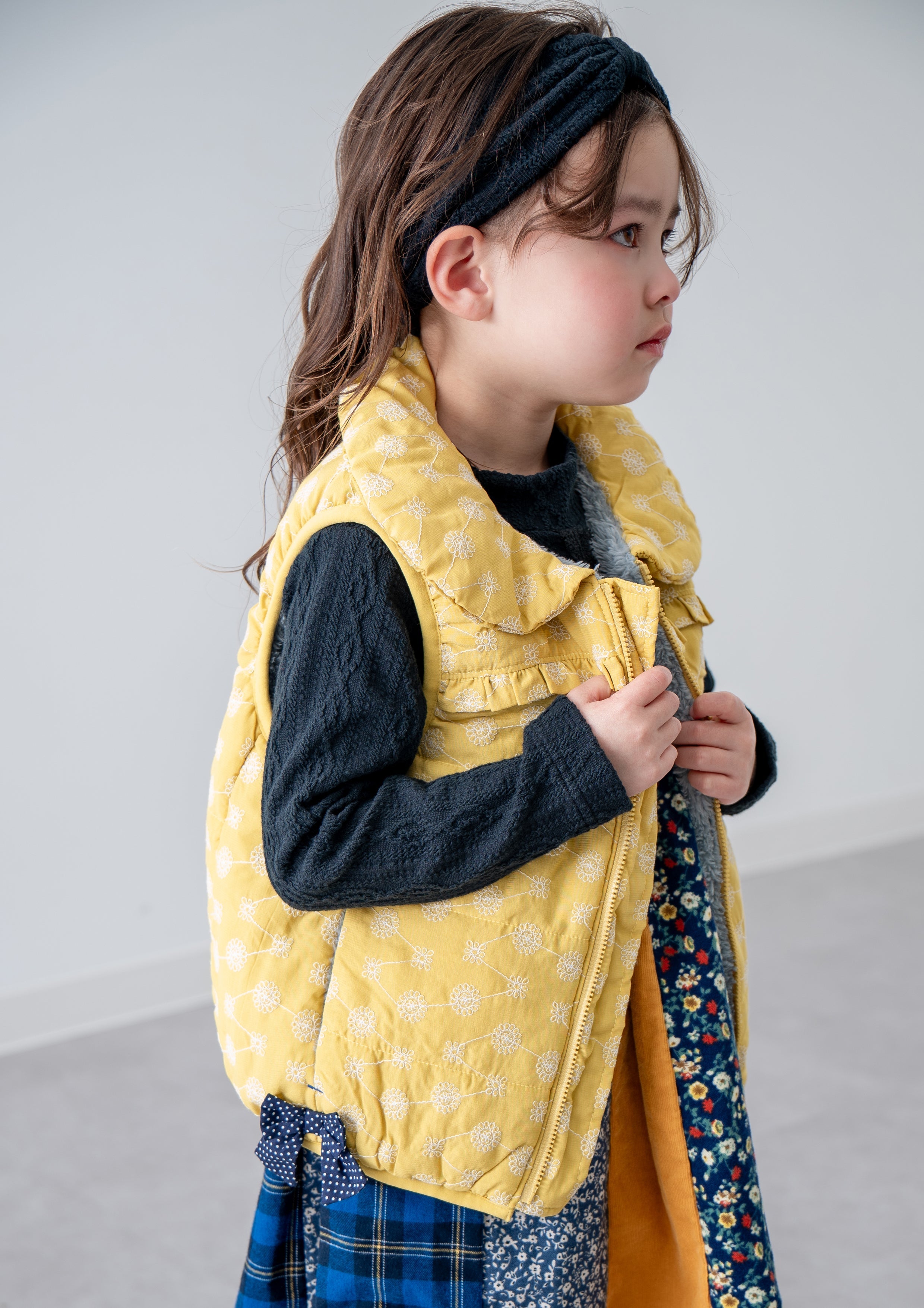 刺繍丸襟ベスト【リバーシブル】 YELLOW