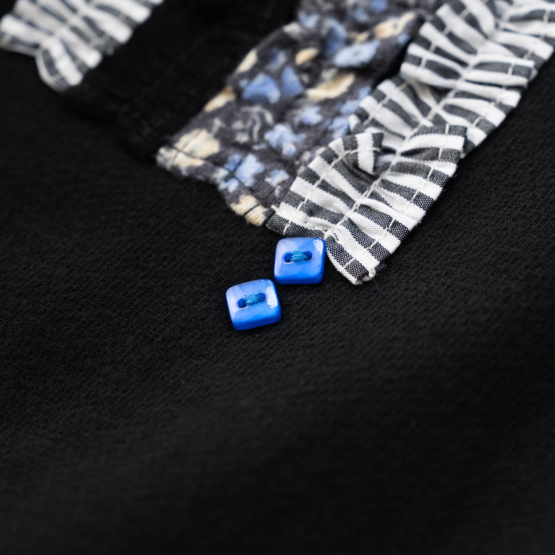 例)ボタンやステッチ糸のカラー・パッチワーク部分の素材変更など。