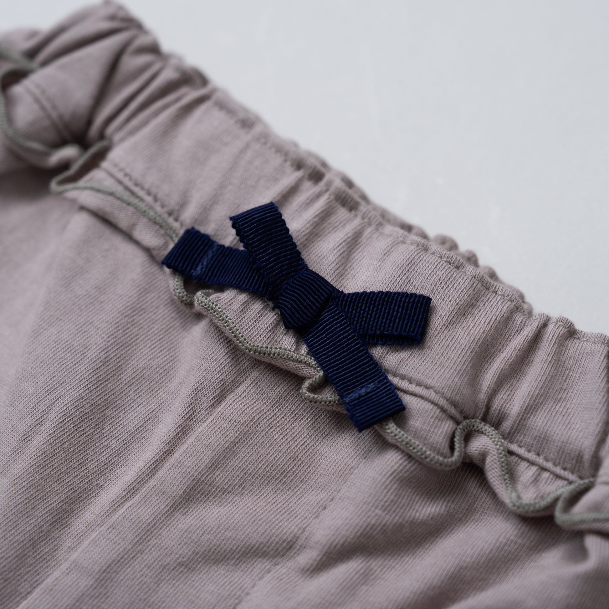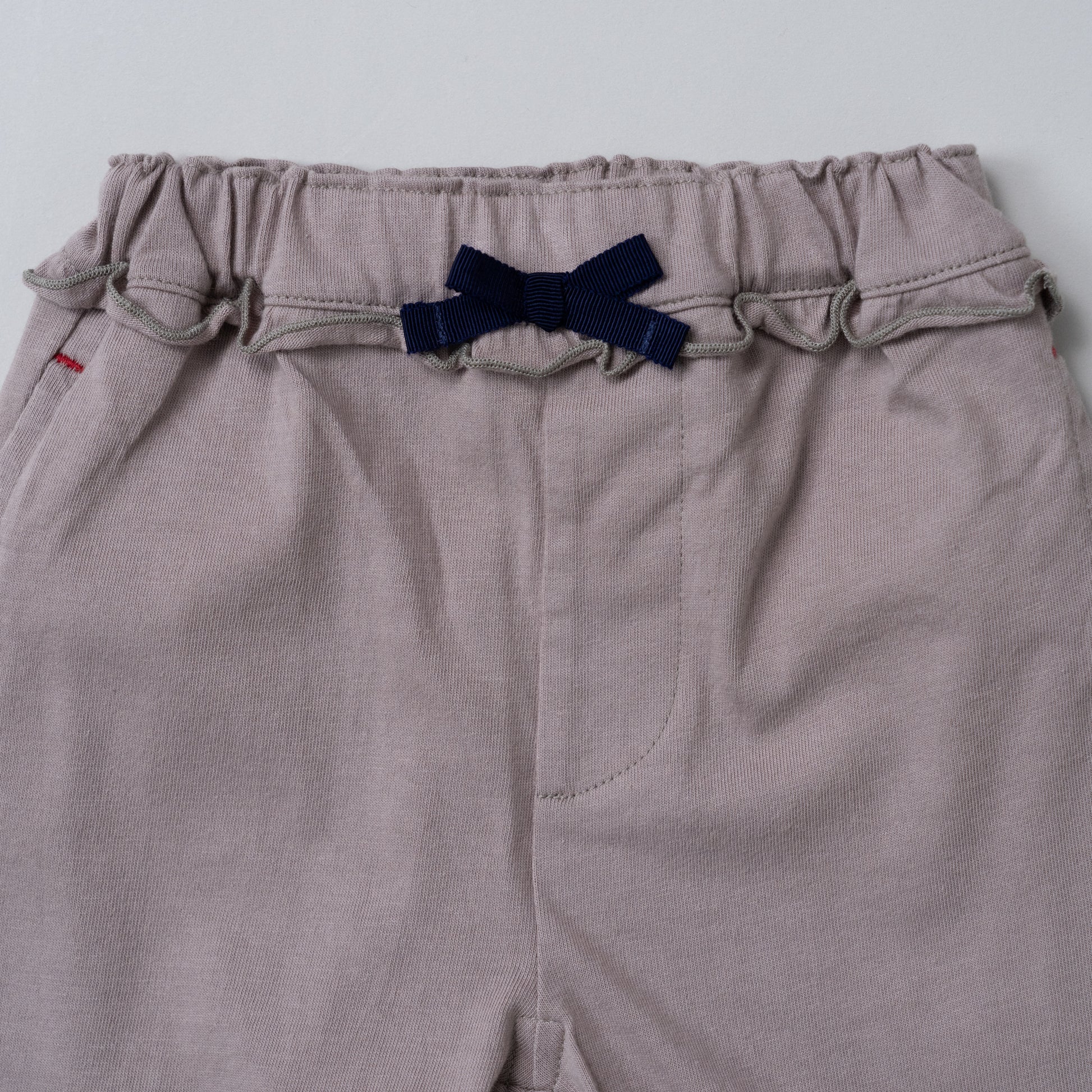 柔らかい天竺素材のシンプルなデザインのカットソーパンツ。女の子用のロングパンツとしてお使いいただけます。着脱しやすいウエスト総ゴム仕上げなので、デイリーにお使いいただけます。
