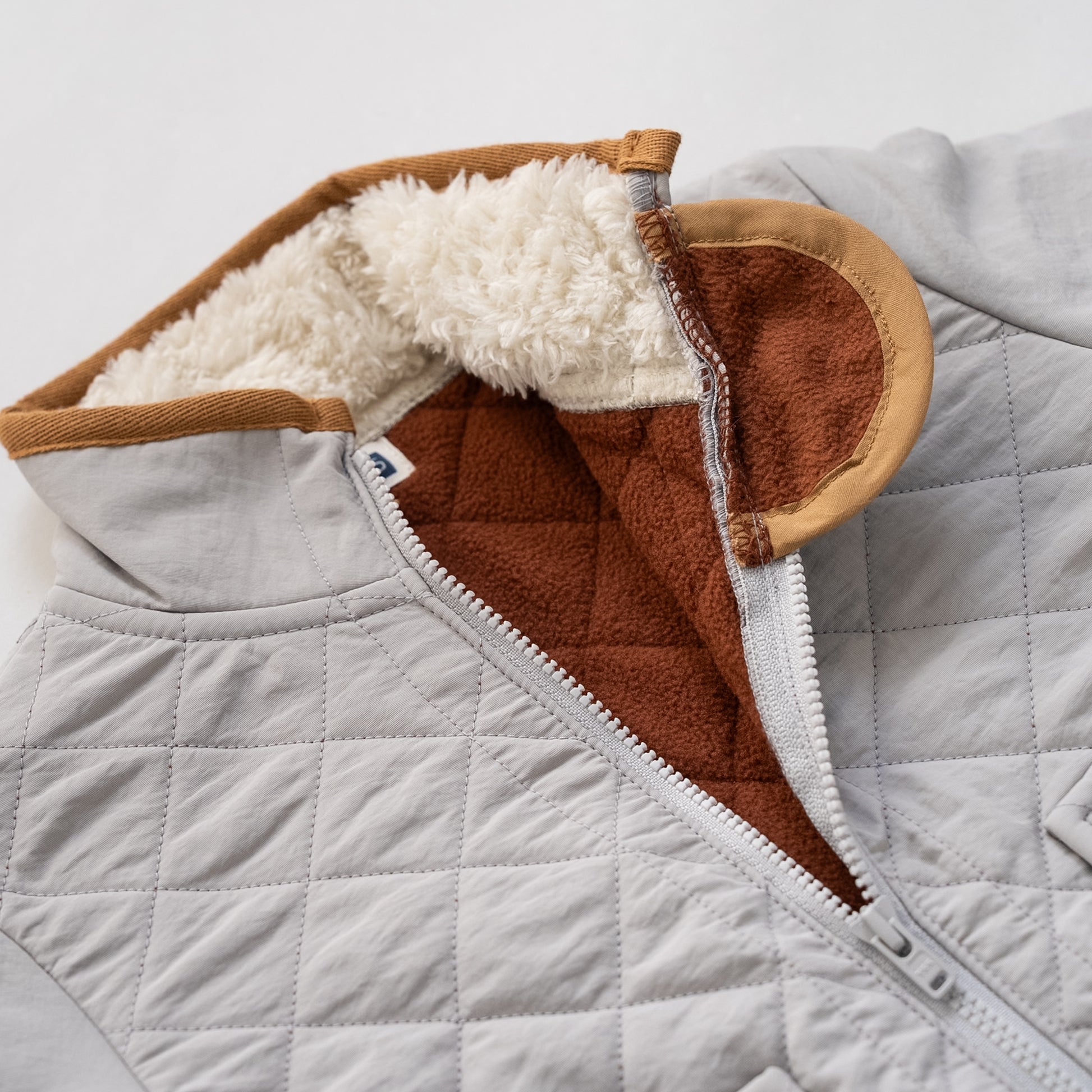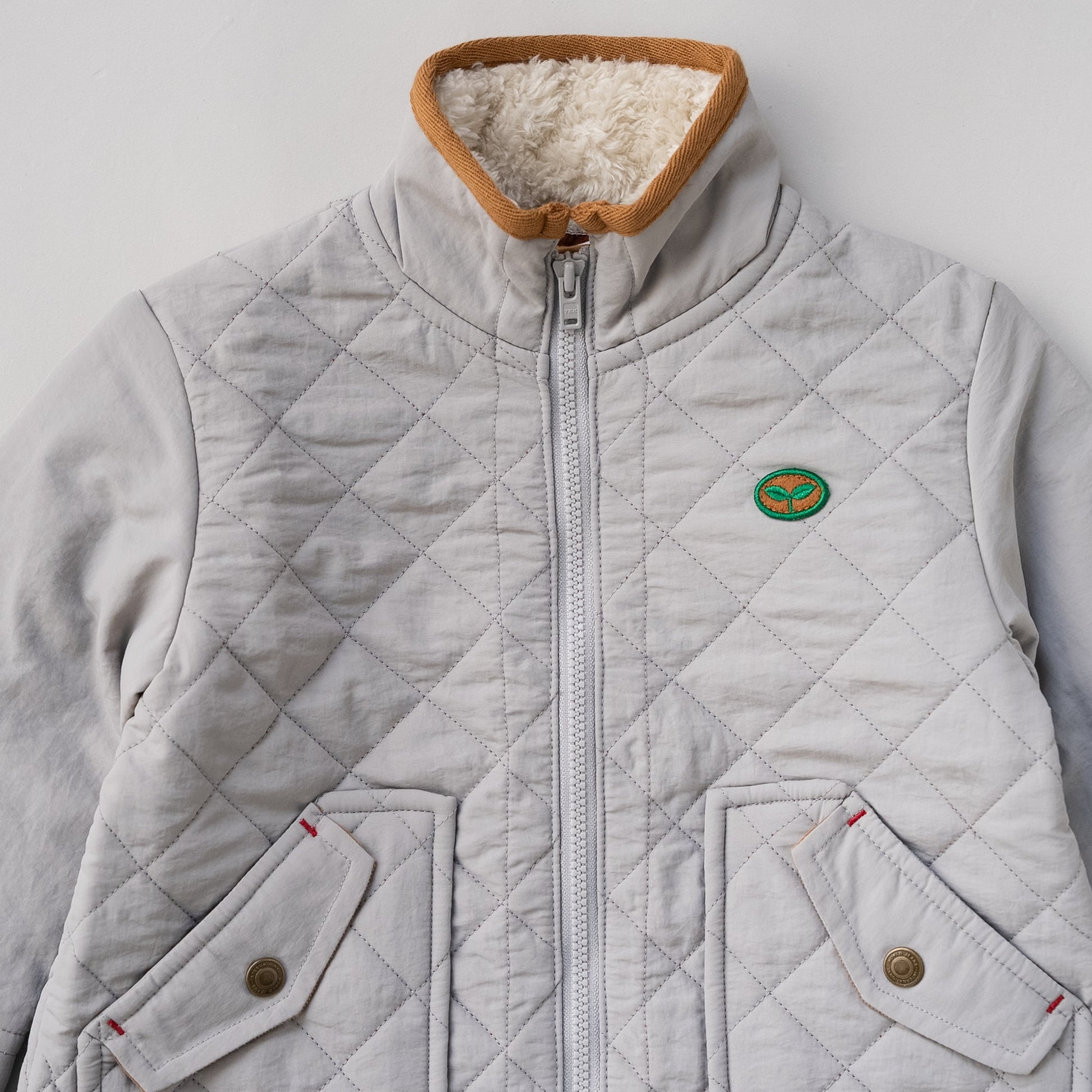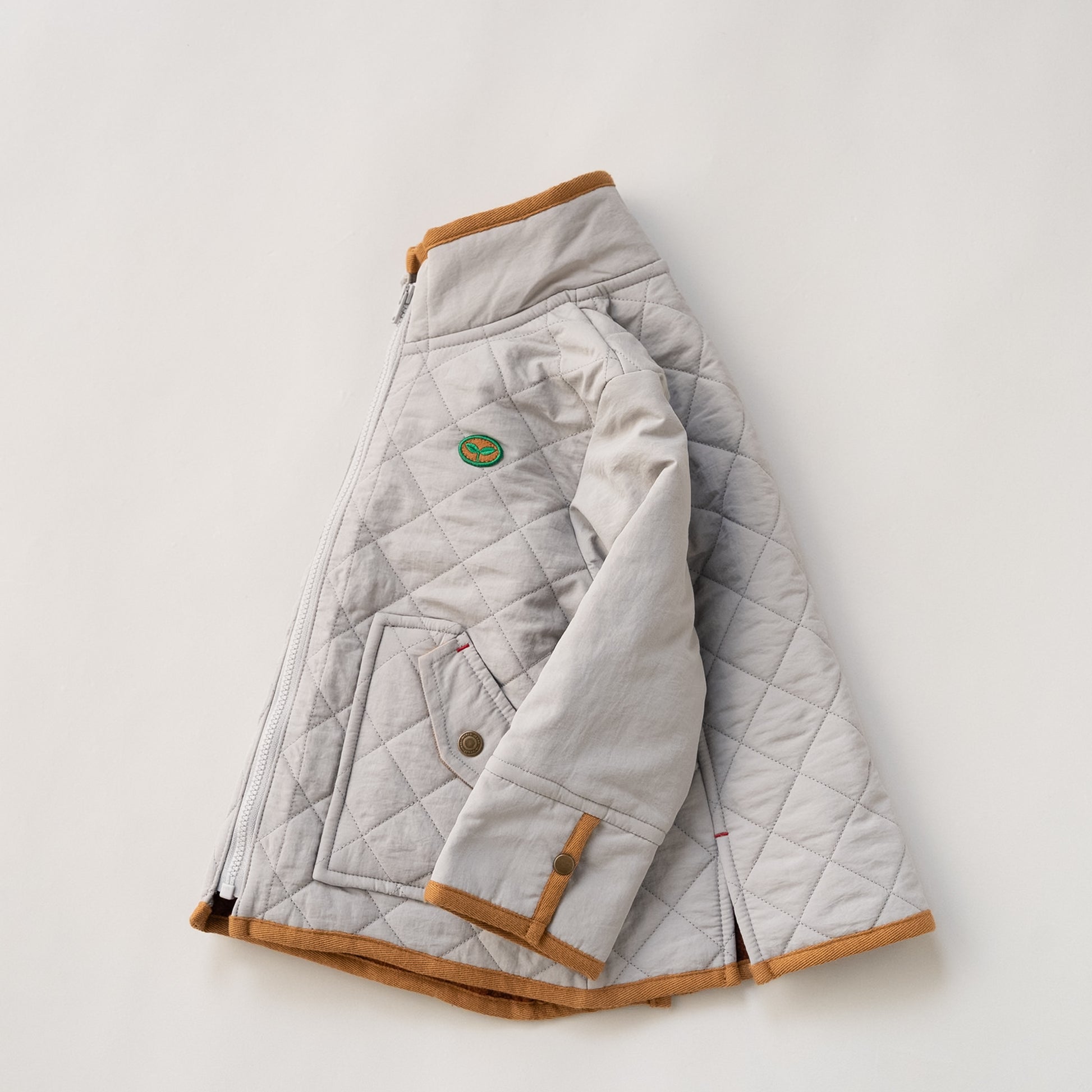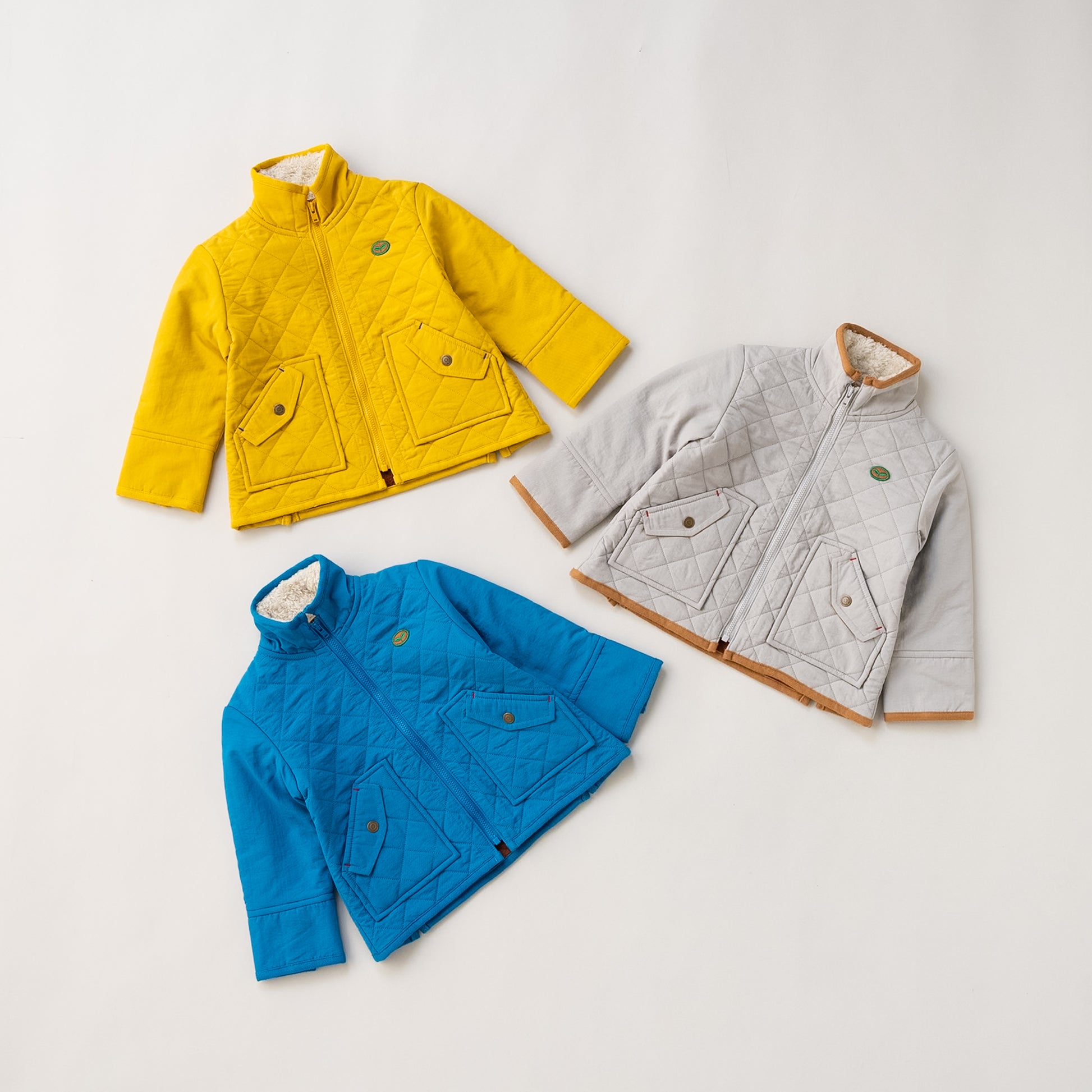 ハイネック仕様のジップアップジャンバーは、厚手のアウターに移行前の軽防寒としてお使いいただけます。表はキルティングナイロン×裏はフリース素材。スッキリとした細身のサイズ感なので、厚着が苦手なお子様にも使いやすいジャンバーです。