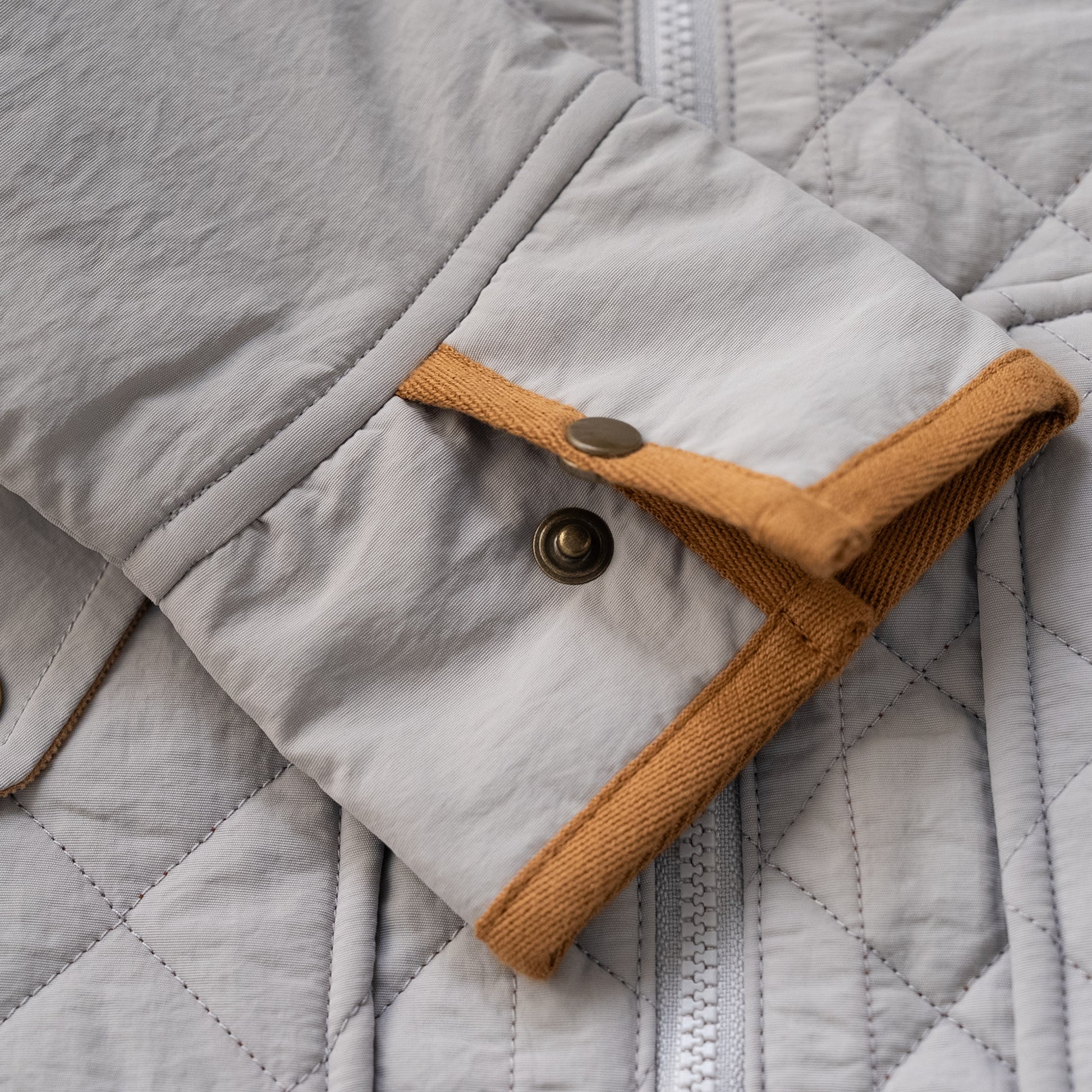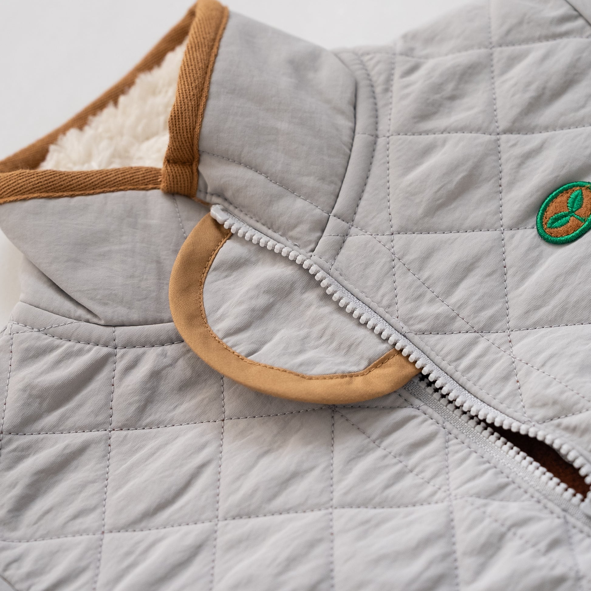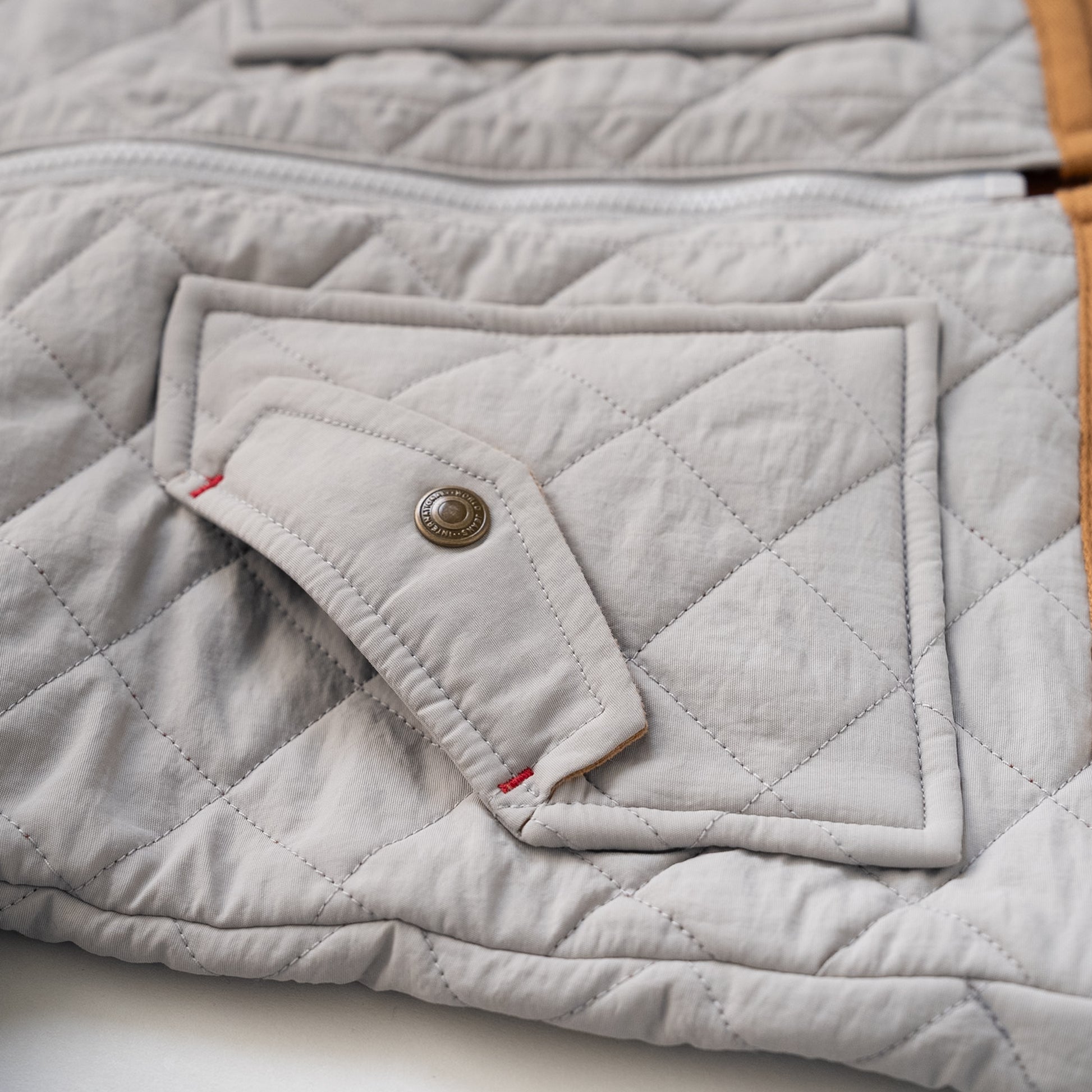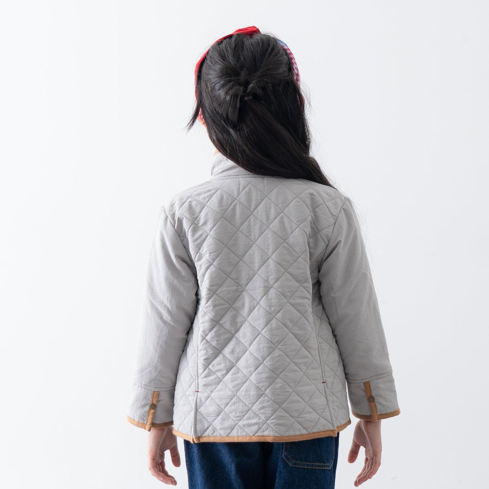 ハイネック仕様のジップアップジャンバーは、厚手のアウターに移行前の軽防寒としてお使いいただけます。表はキルティングナイロン×裏はフリース素材。スッキリとした細身のサイズ感なので、厚着が苦手なお子様にも使いやすいジャンバーです。
