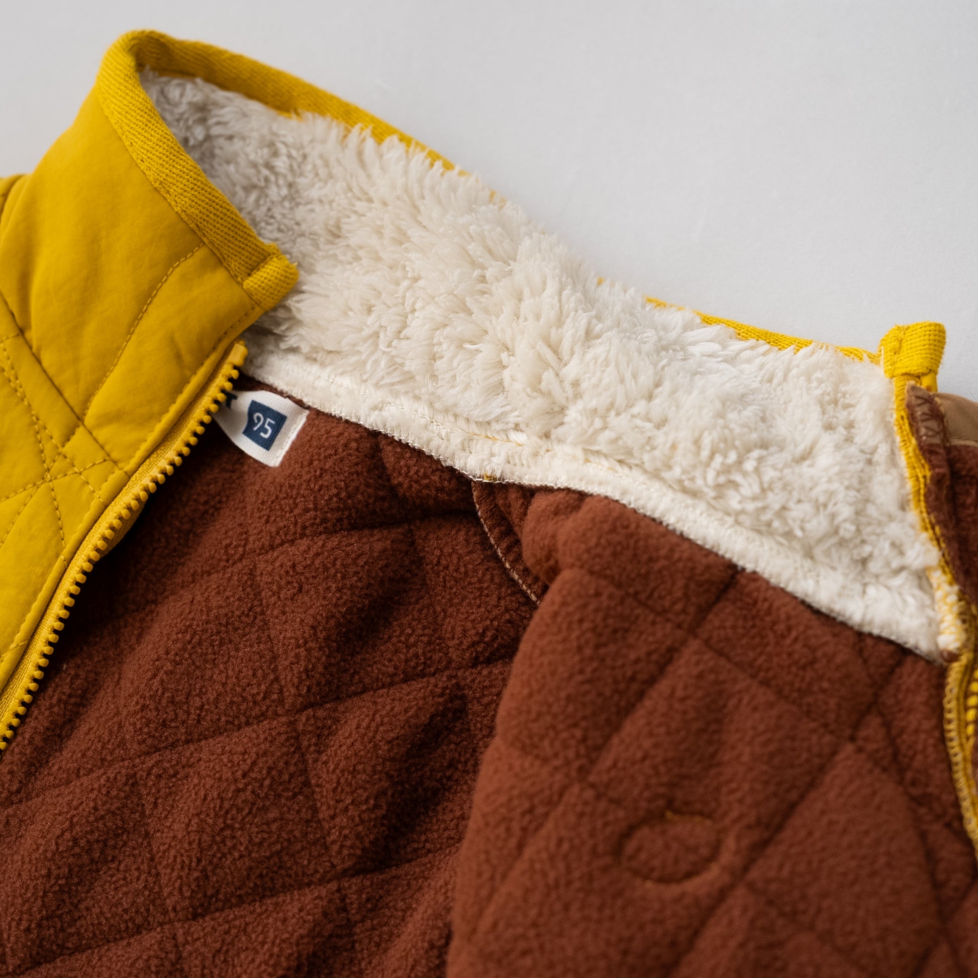 ハイネック仕様のジップアップジャンバーは、厚手のアウターに移行前の軽防寒としてお使いいただけます。表はキルティングナイロン×裏はフリース素材。スッキリとした細身のサイズ感なので、厚着が苦手なお子様にも使いやすいジャンバーです。