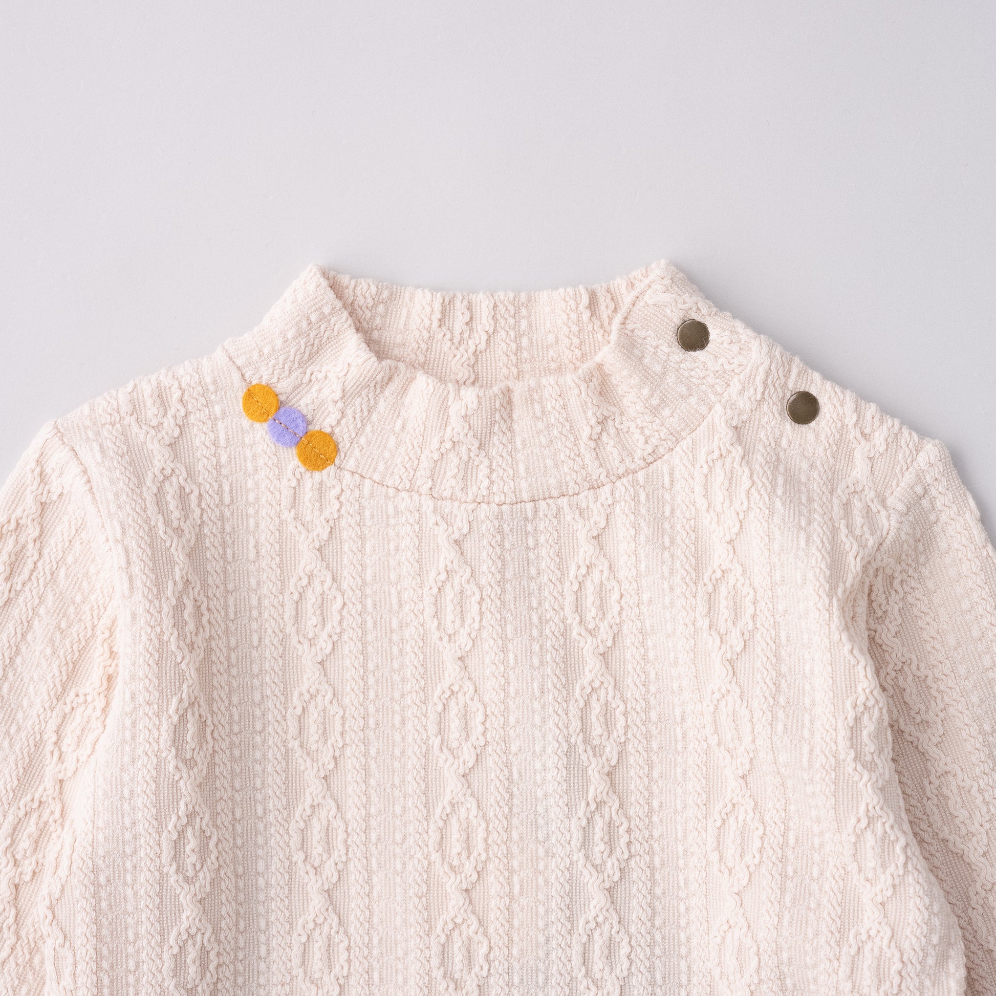 ケーブル柄を編みこんだ表面感が秋らしいハイネック。シンプルなデザインながらインナーにも使いやすいハイネックは色違いで揃えたくなるアイテム。ボトムを選ばないシンプルなデザインはデイリーに大活躍します。