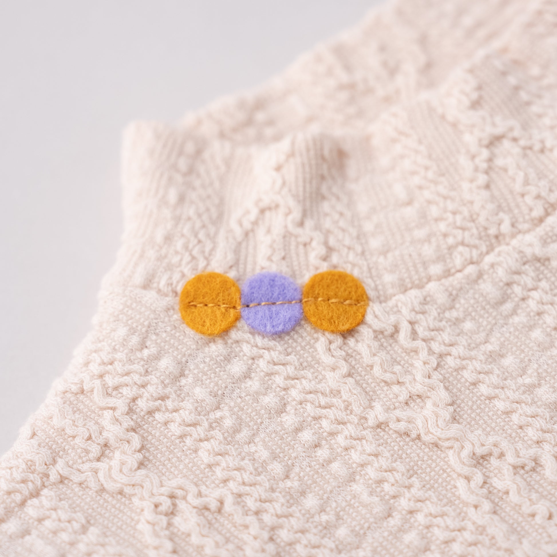 例)ボタンやステッチ糸のカラー・パッチワーク部分の素材変更など。