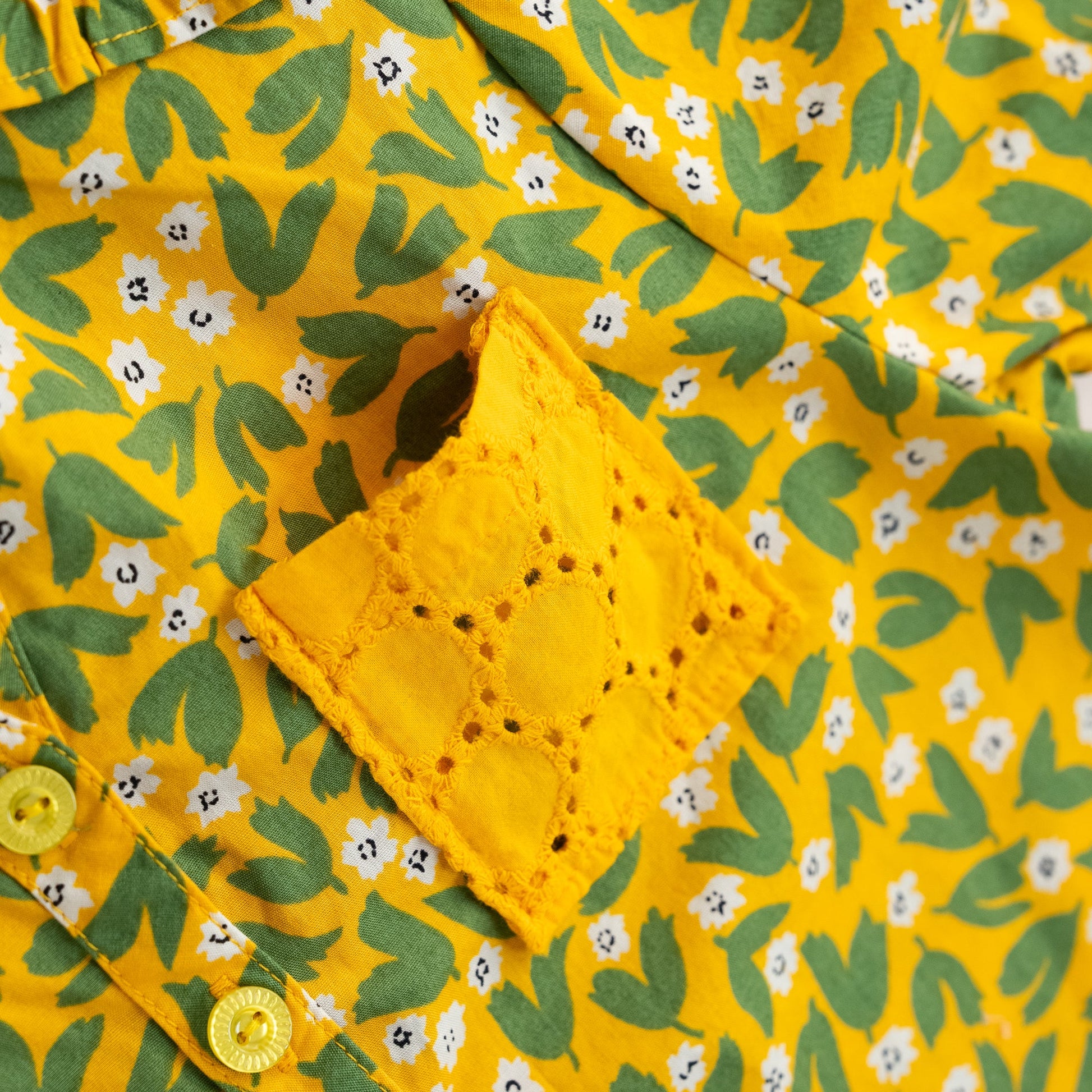 例)ボタンやステッチ糸のカラー・パッチワーク部分の素材変更など。