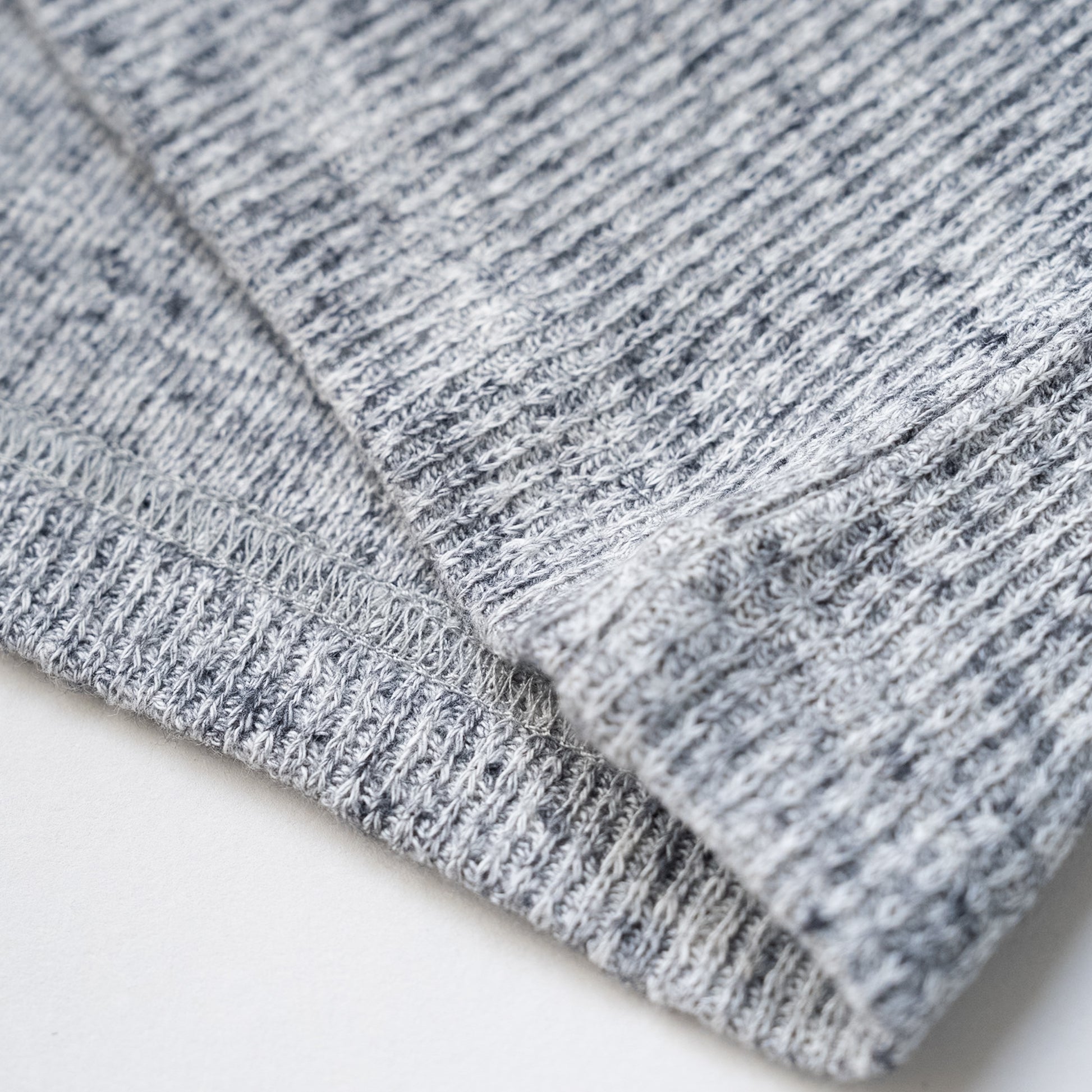 柔らかいジャガードリブ素材を使用したハイネックTシャツは、程よいフィット感でインナーとしても大活躍します。冬のモノトーンレイヤードコーデには欠かせない、シンプルさがちょうど良い一枚です。定番のブラック、グレーに加え、アクセントになるブルーボーダーをご用意しております。