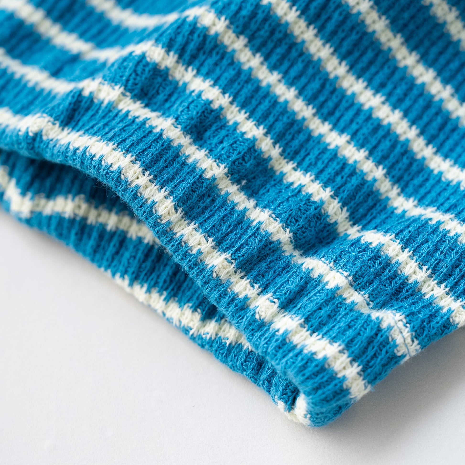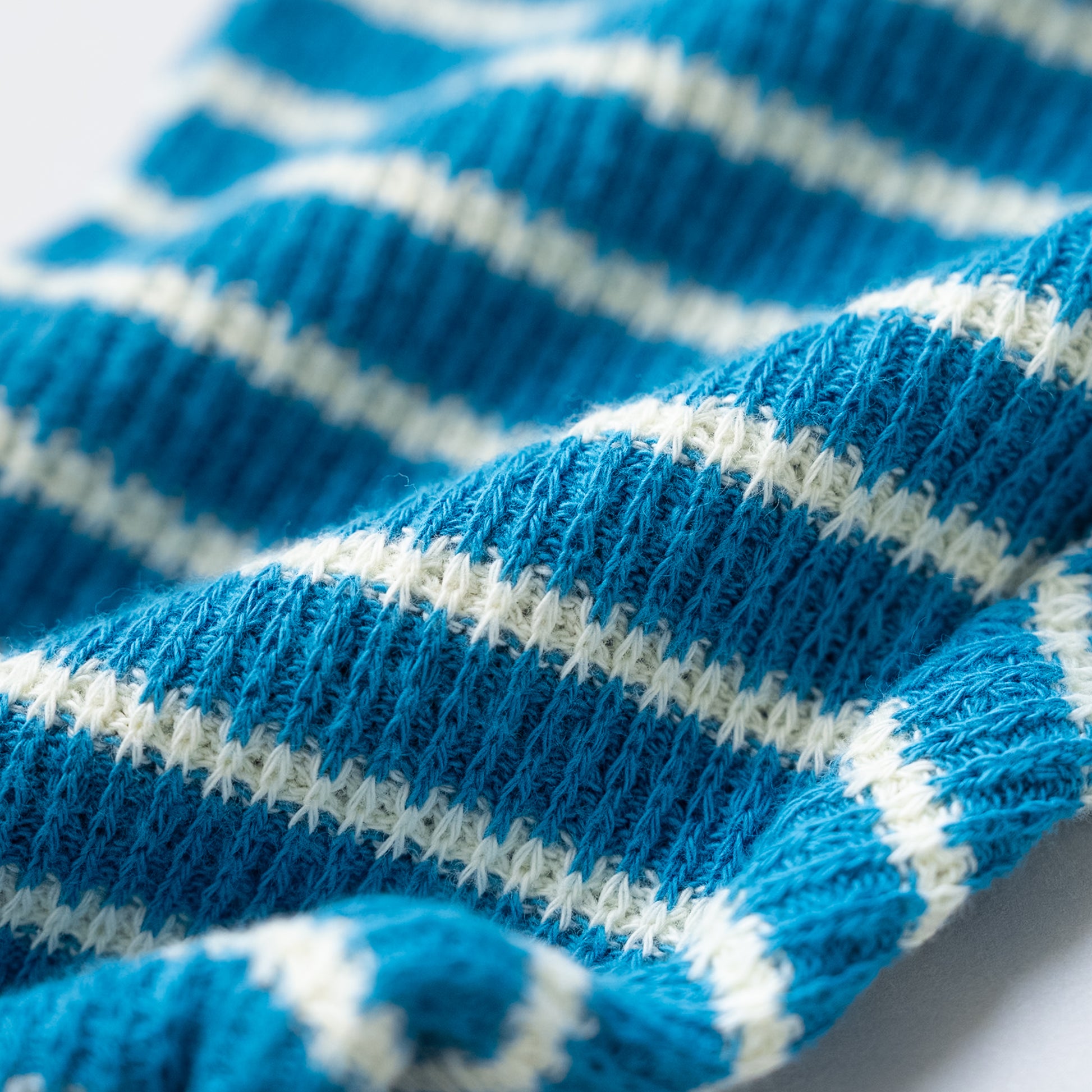 冬のレイヤードスタイルに欠かせないレギンスは、柔らかなジャガードリブ素材を使用。シンプルなブラックやグレーはもちろん、アクセントカラーのブルーボーダーで、ワンピースやスカートとの冬のおしゃれなレイヤードスタイルをお楽しみください。