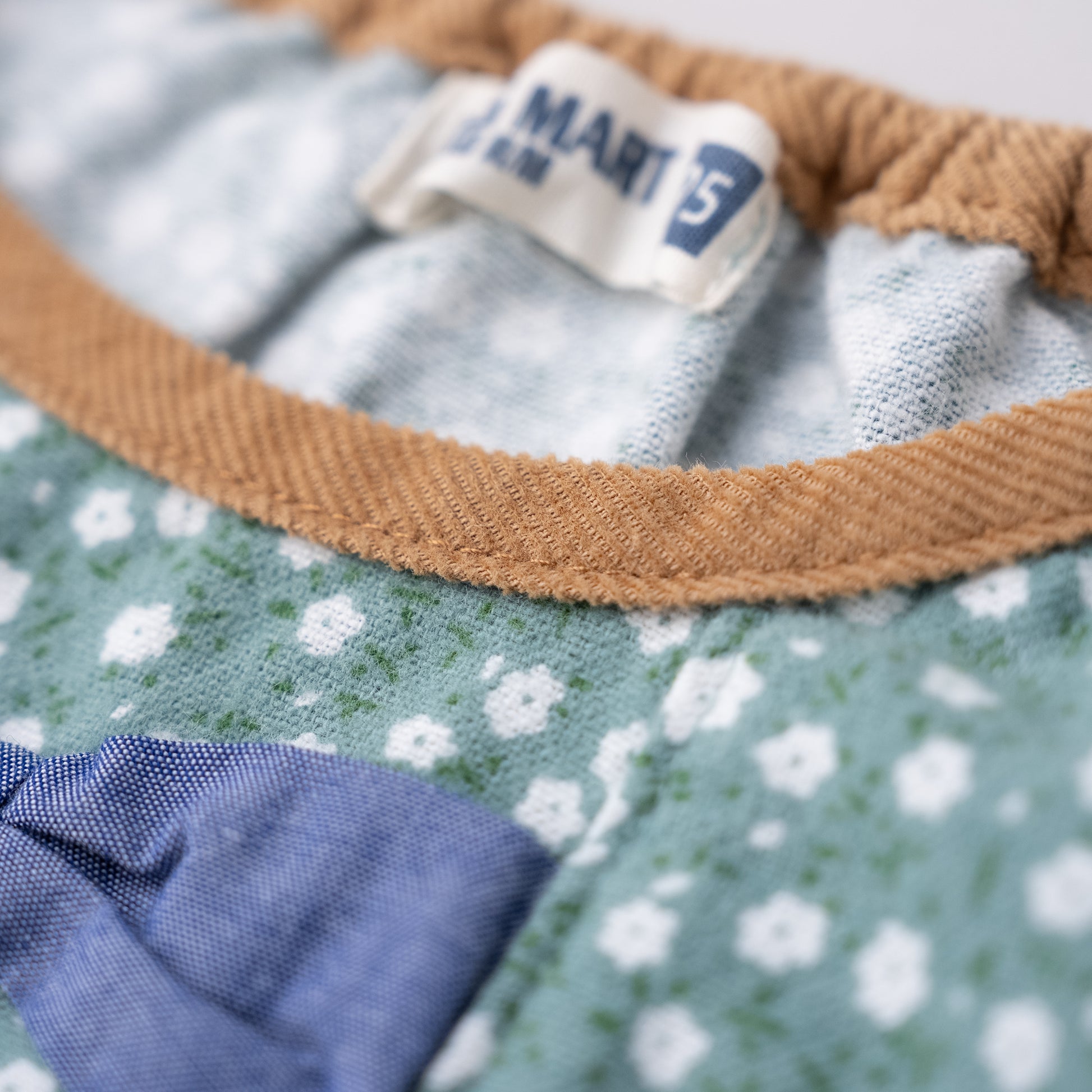 例)ボタンやステッチ糸のカラー・パッチワーク部分の素材変更など。