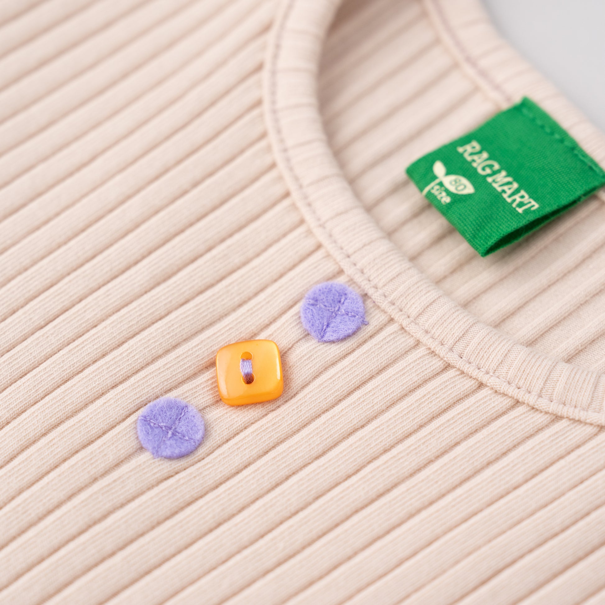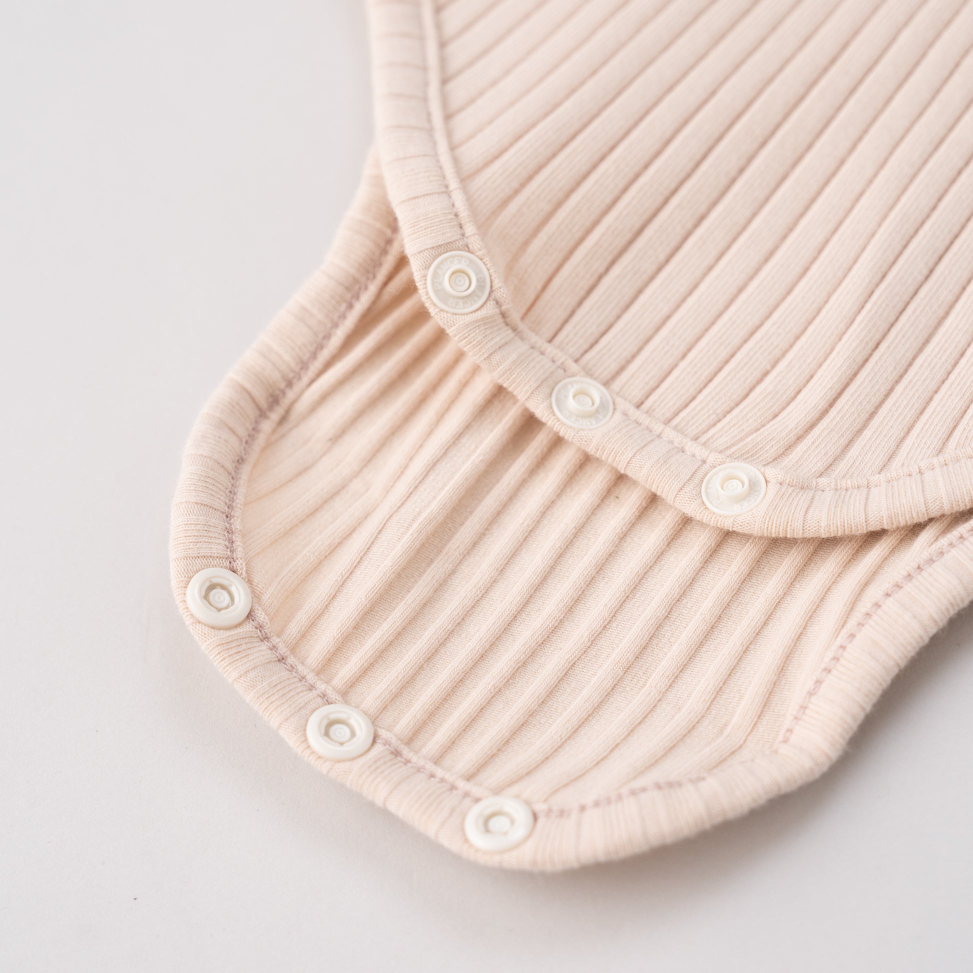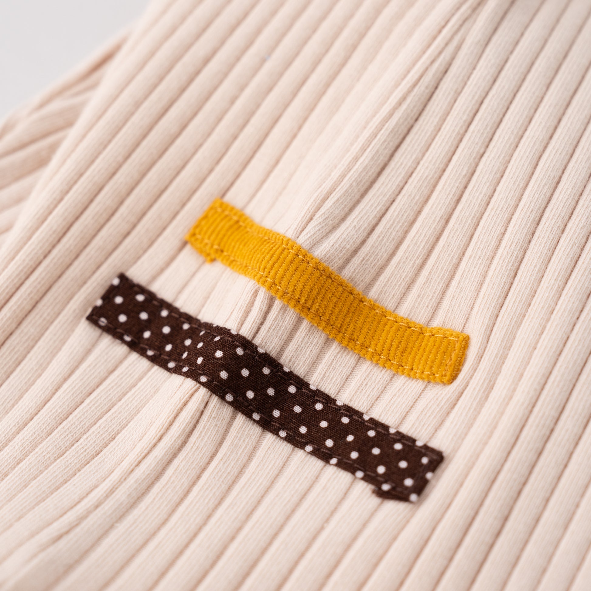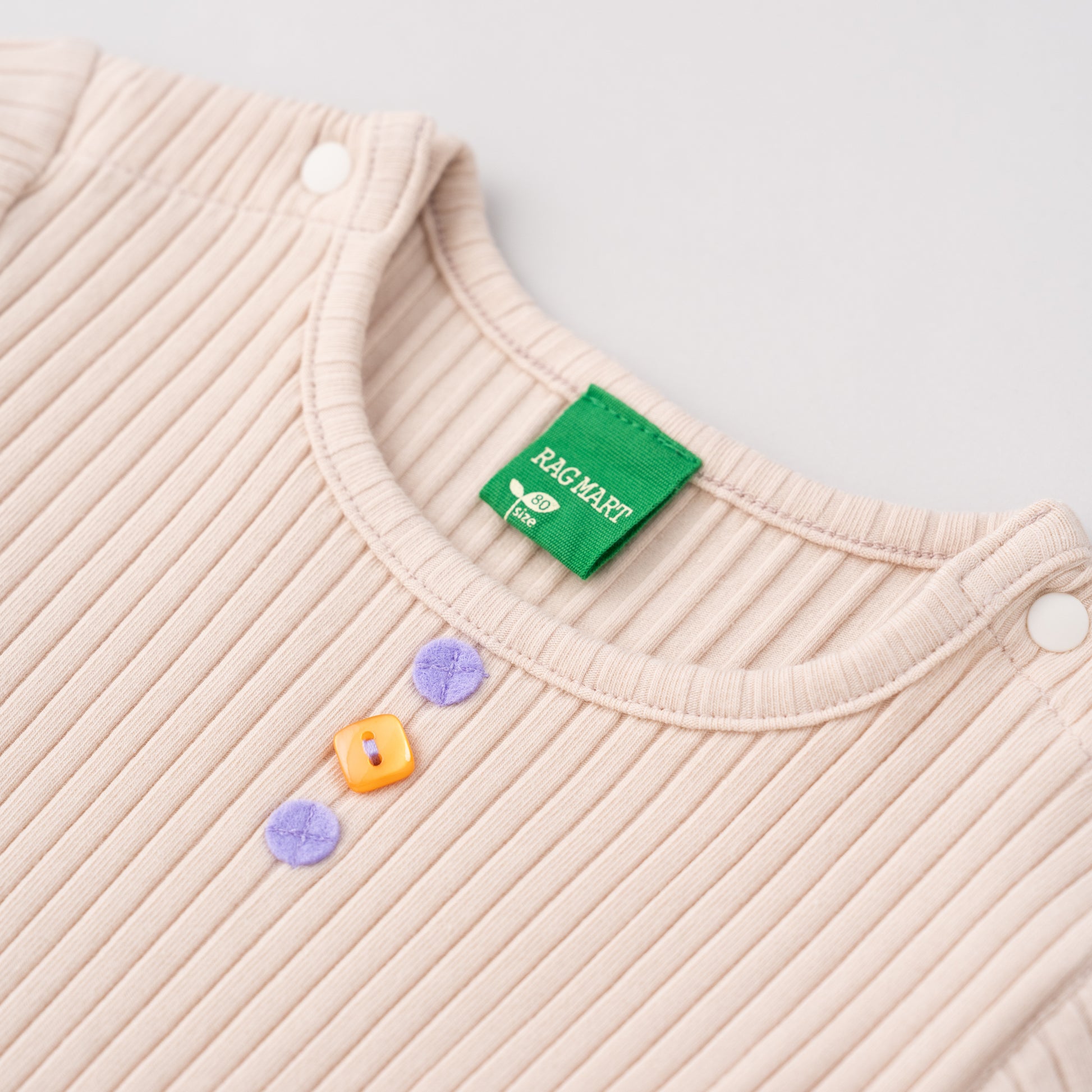 伸縮性のあるテレコ素材のボディスーツ。秋らしいカラーにフェルトやボタンがアクセントになったデザイン。おなかが出ないインナーとしてパンツやオーバーオールのインナーにオススメです。伸縮自在で赤ちゃんの動きをストレスなく受け止めます。