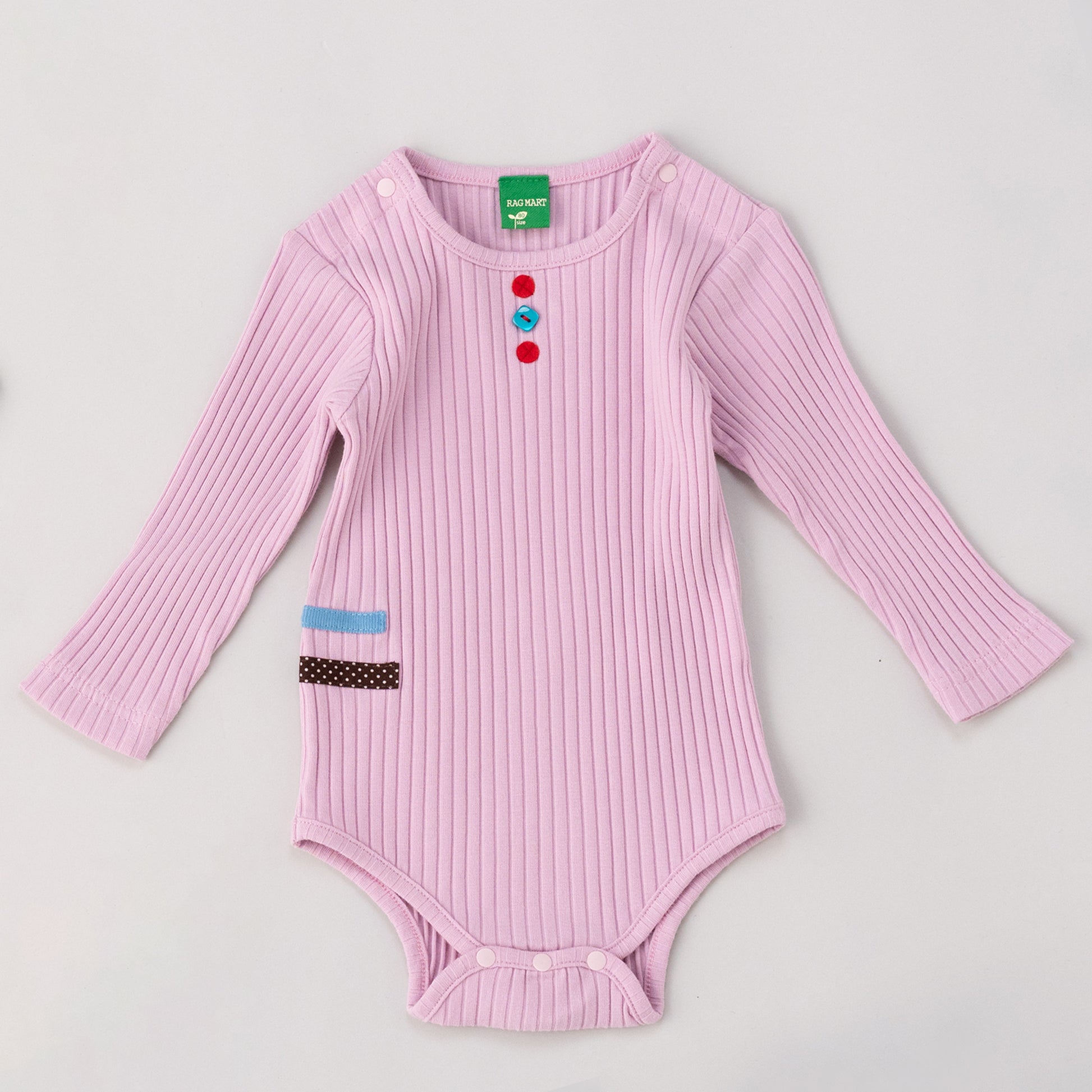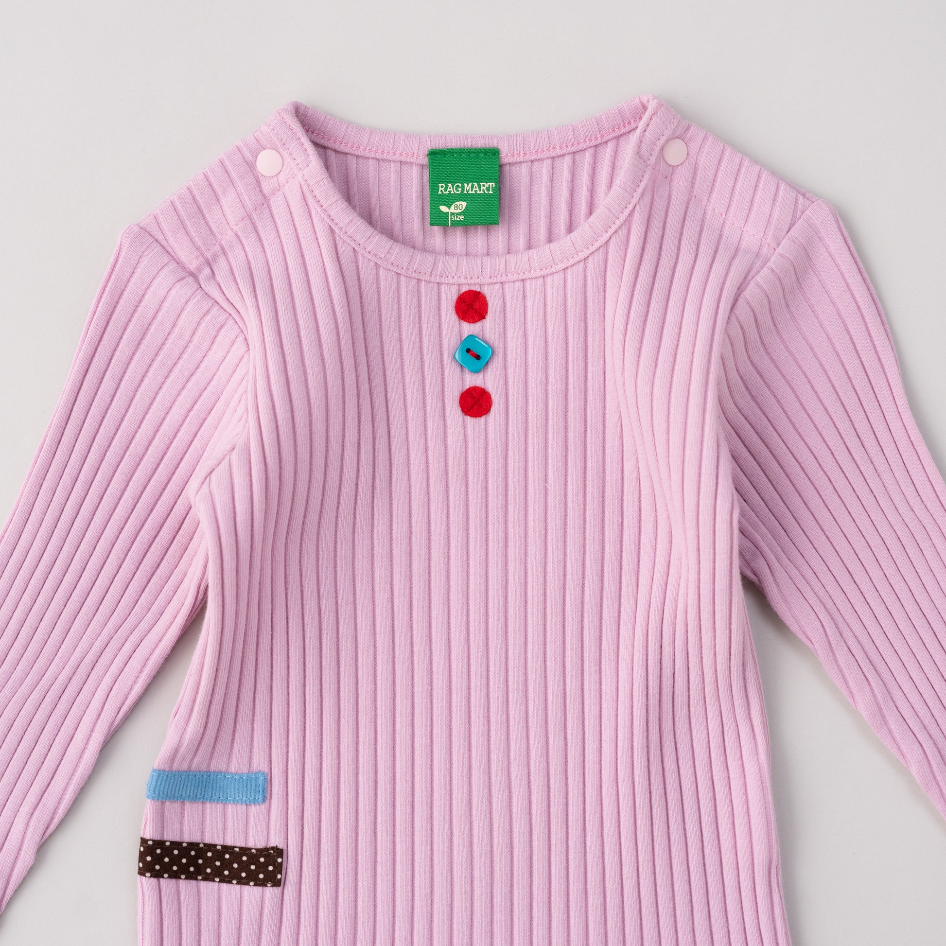 伸縮性のあるテレコ素材のボディスーツ。秋らしいカラーにフェルトやボタンがアクセントになったデザイン。おなかが出ないインナーとしてパンツやオーバーオールのインナーにオススメです。伸縮自在で赤ちゃんの動きをストレスなく受け止めます。