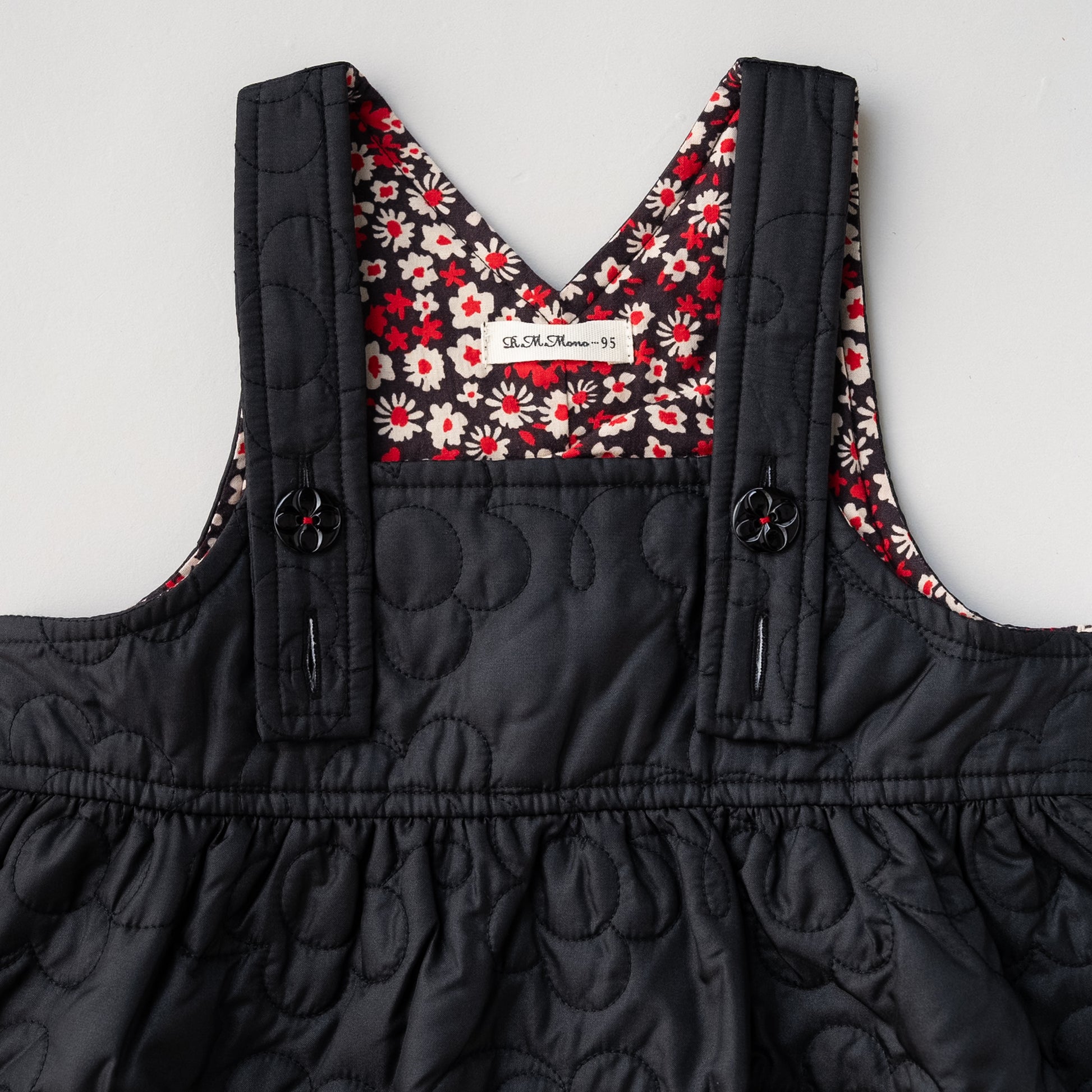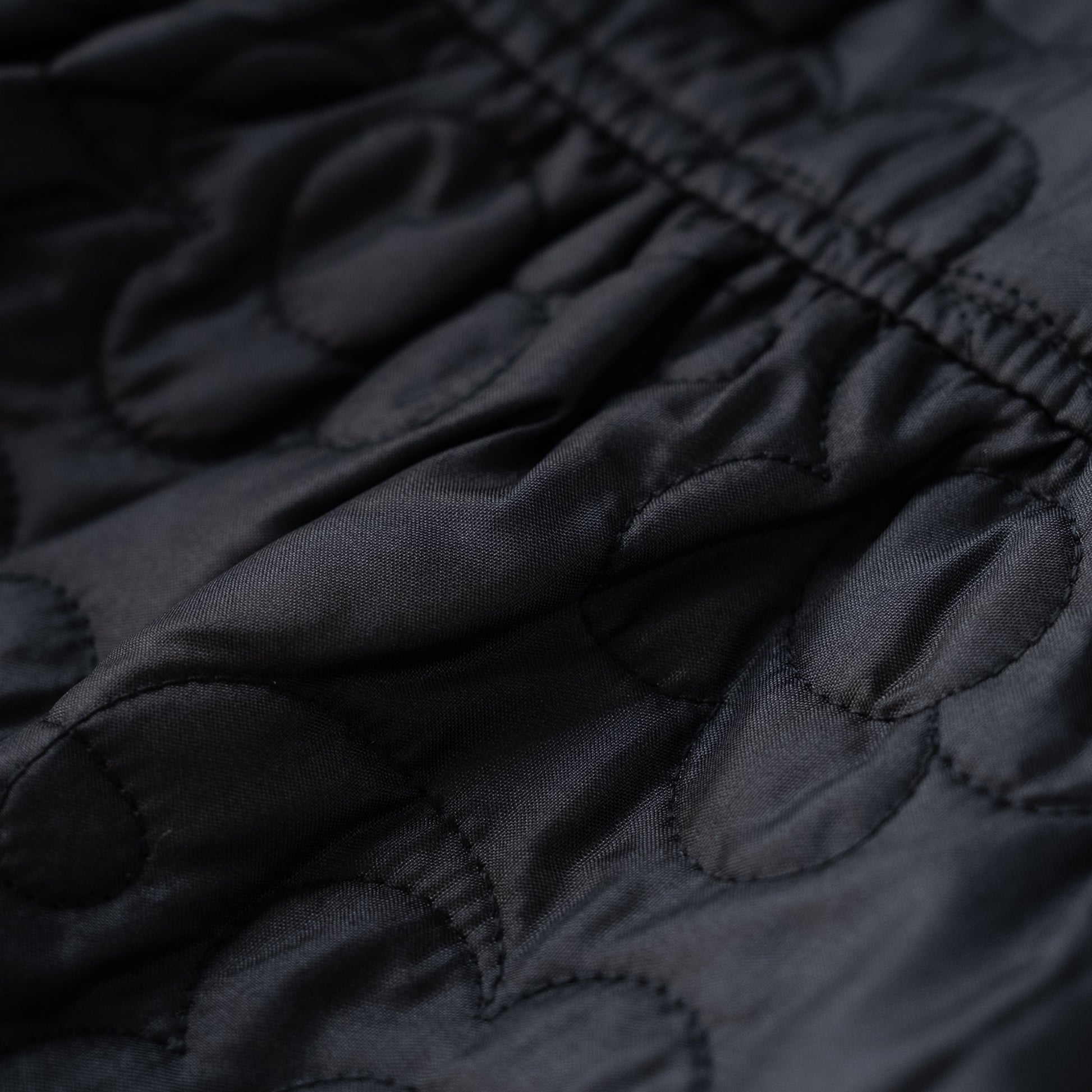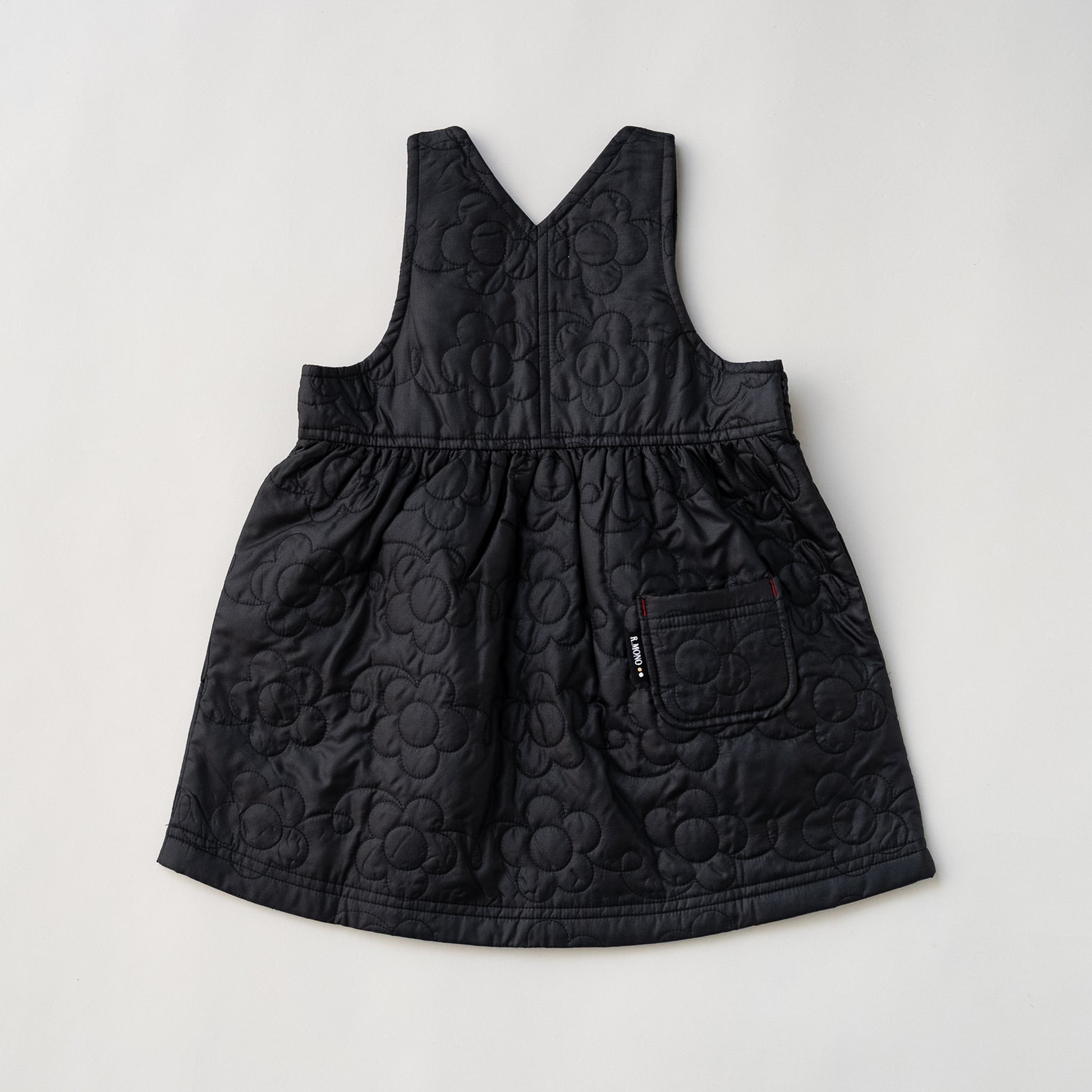大人っぽい印象のナイロンキルトワンピースは、ウエスト周りから広がるふんわりとしたフォルムがおしゃれな一枚です。インナーやレギンスの色合わせで印象の変化を楽しんでいただけます。プチフォーマルにもお使いいただけます。