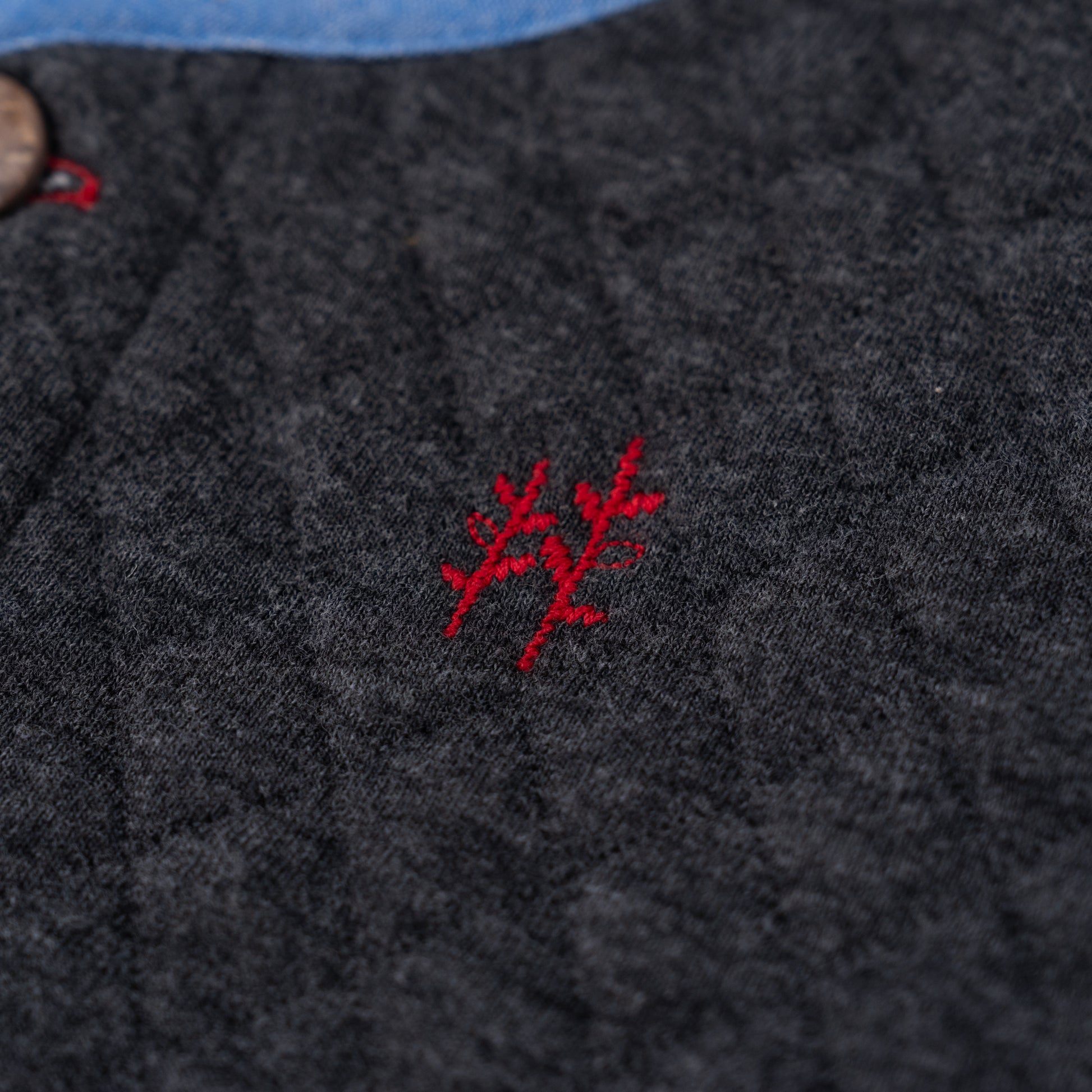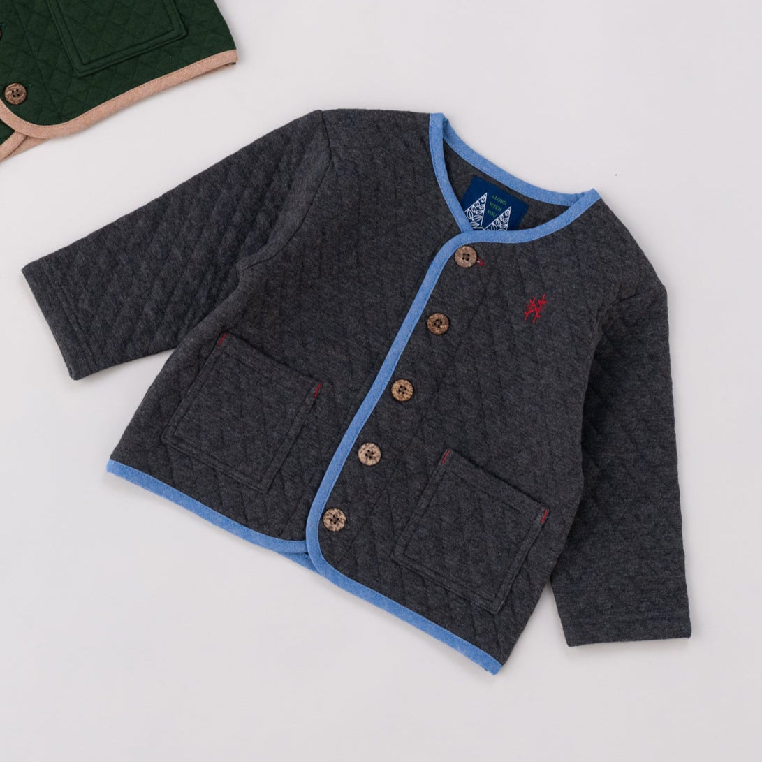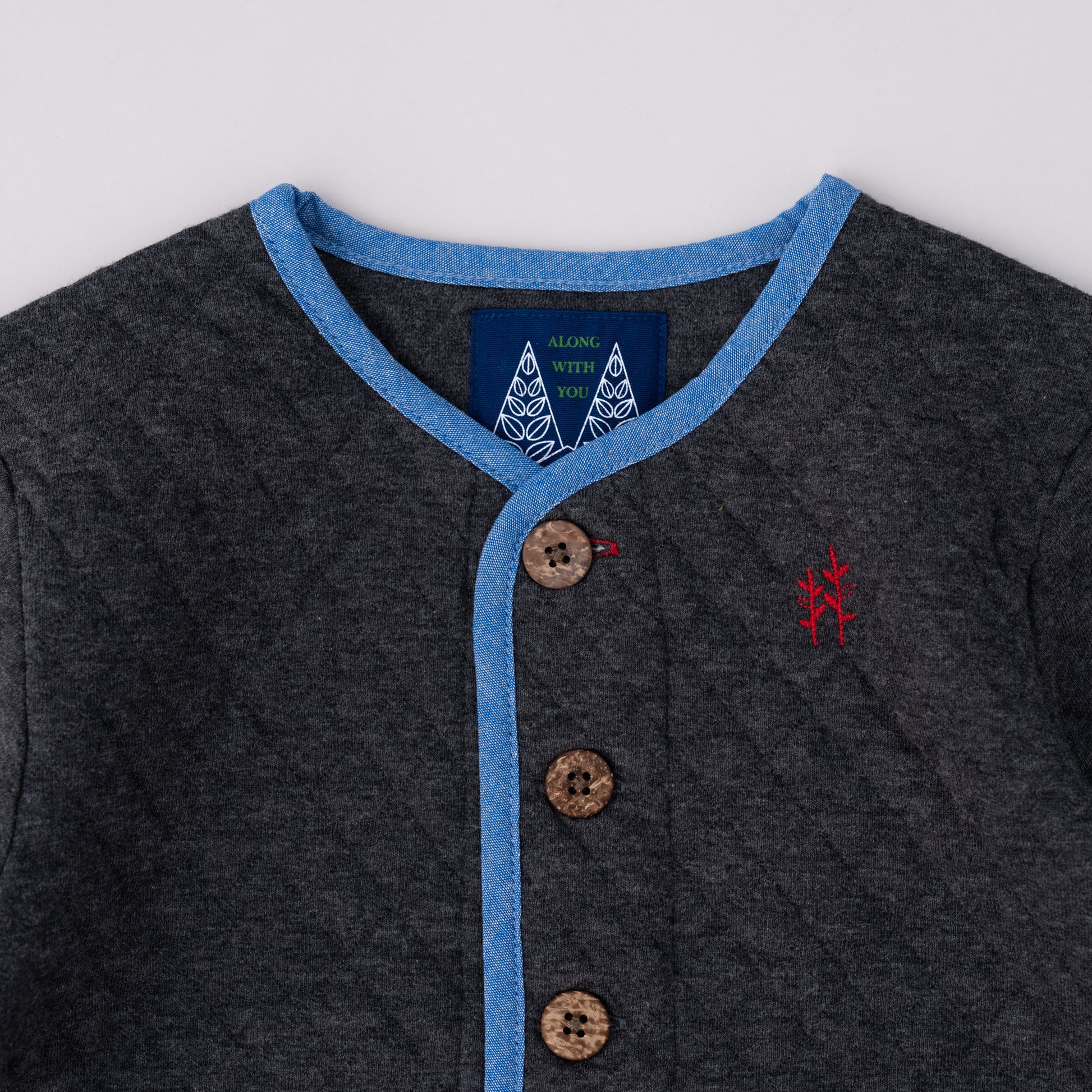 男女ユニセックスでお使いいただけるカーデジャケットは、秋冬らしい素材感のニットキルトを使用。秋カラーのカーディガンは1枚あるとコーディネートの幅も広がり、秋冬のレイヤードスタイルをより一層楽しめます。兄弟姉妹のペアコーデにもオススメです。