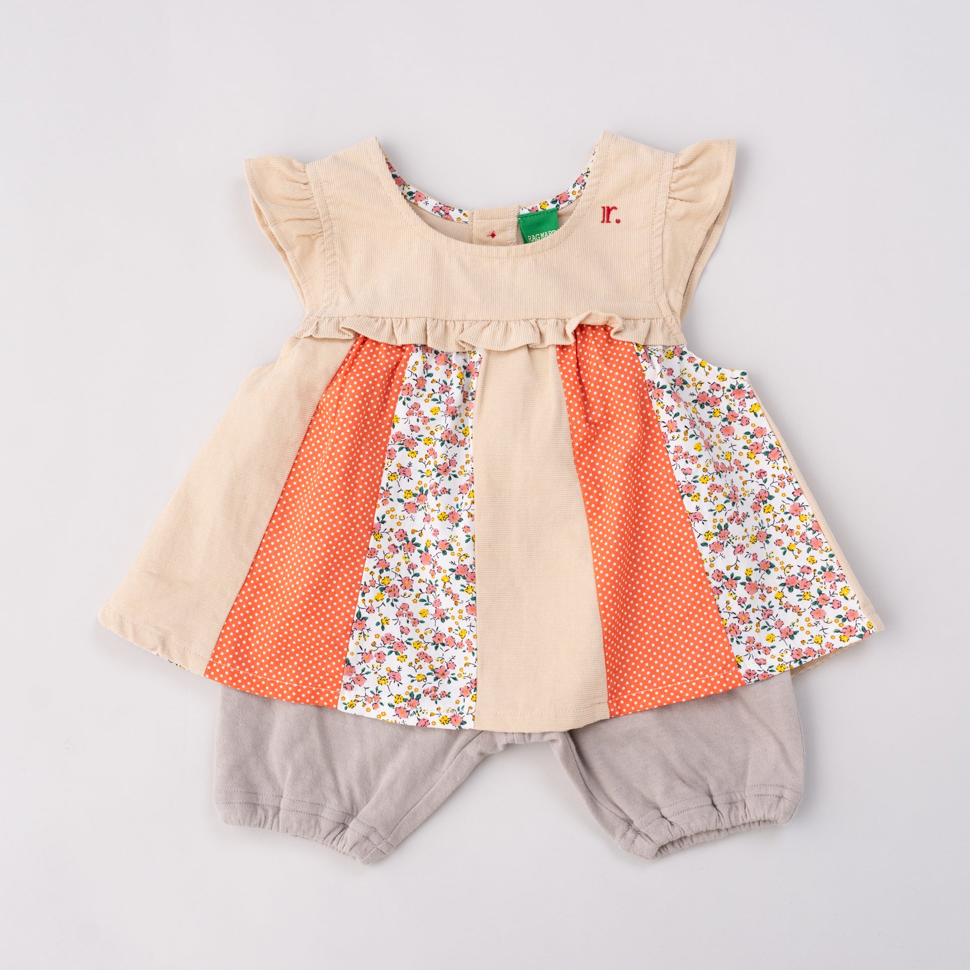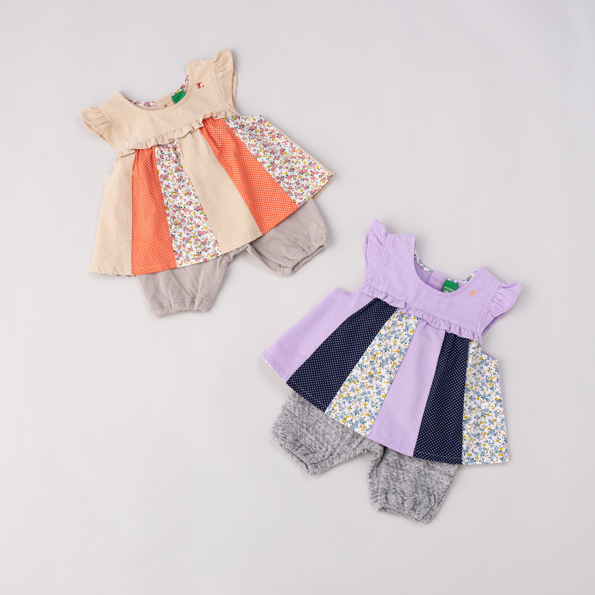 パッチワークチュニックと履きやすい接結パンツの上下セットは、ラグベビー定番人気のアイテムです。インナーコーデでいろんなイメージが楽しめます。ギフトにもオススメです。