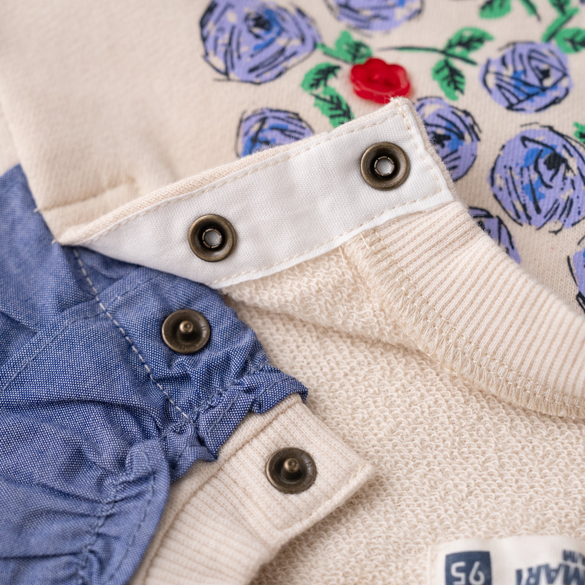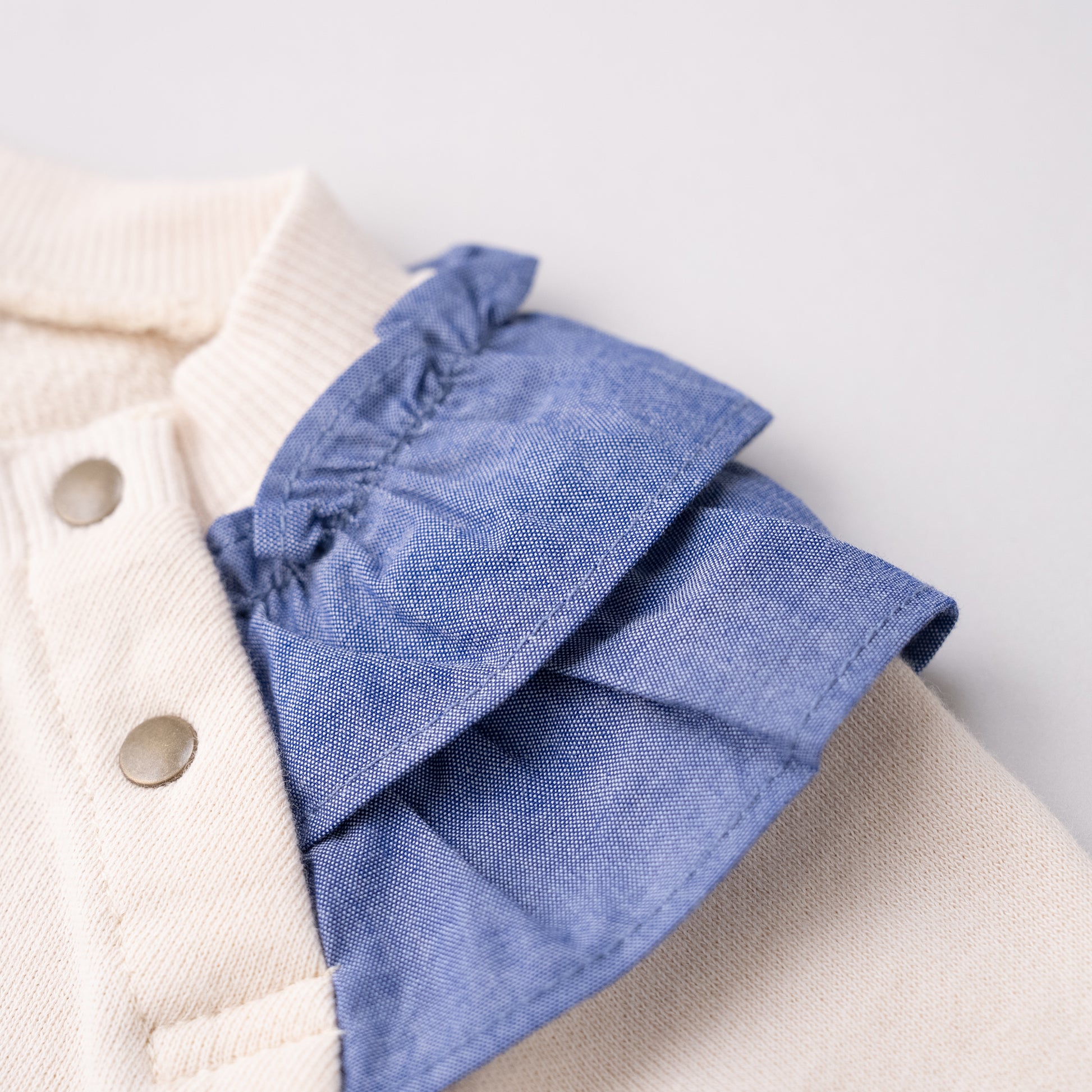 例)ボタンやステッチ糸のカラー・パッチワーク部分の素材変更など。