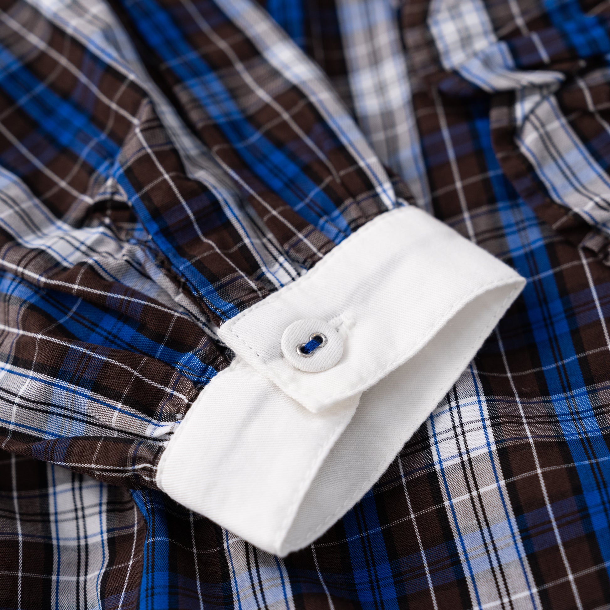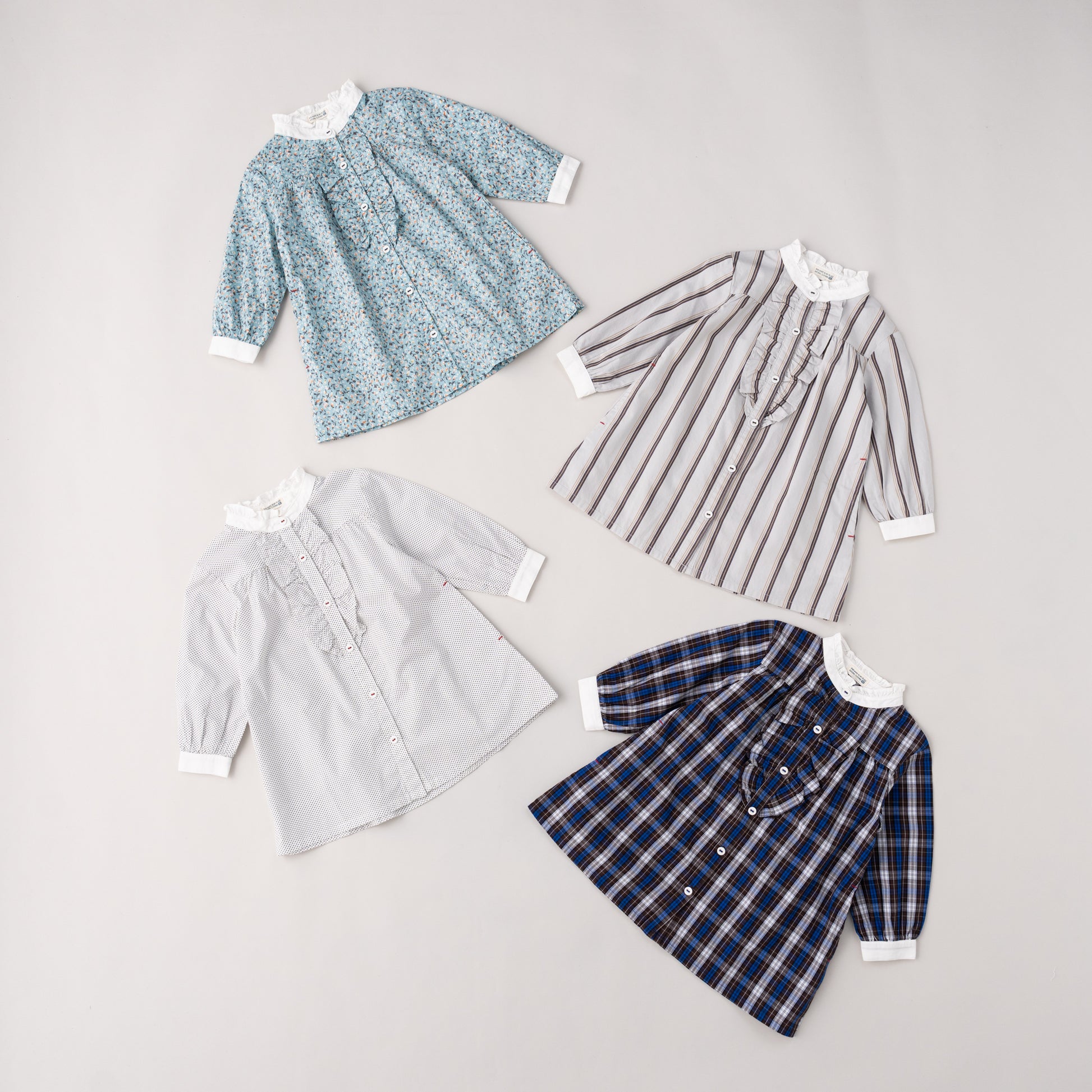 トラッドな印象のワンピースにフリルカラーで甘さをMIXしたシャツワンピースは、ストライプ・チェック・ドット・花柄からお選びいただけます。きちんと感のある清楚なデザイン。同シリーズでレギュラーカラーシャツもあり、ペアコーデをお楽しみいただけます。