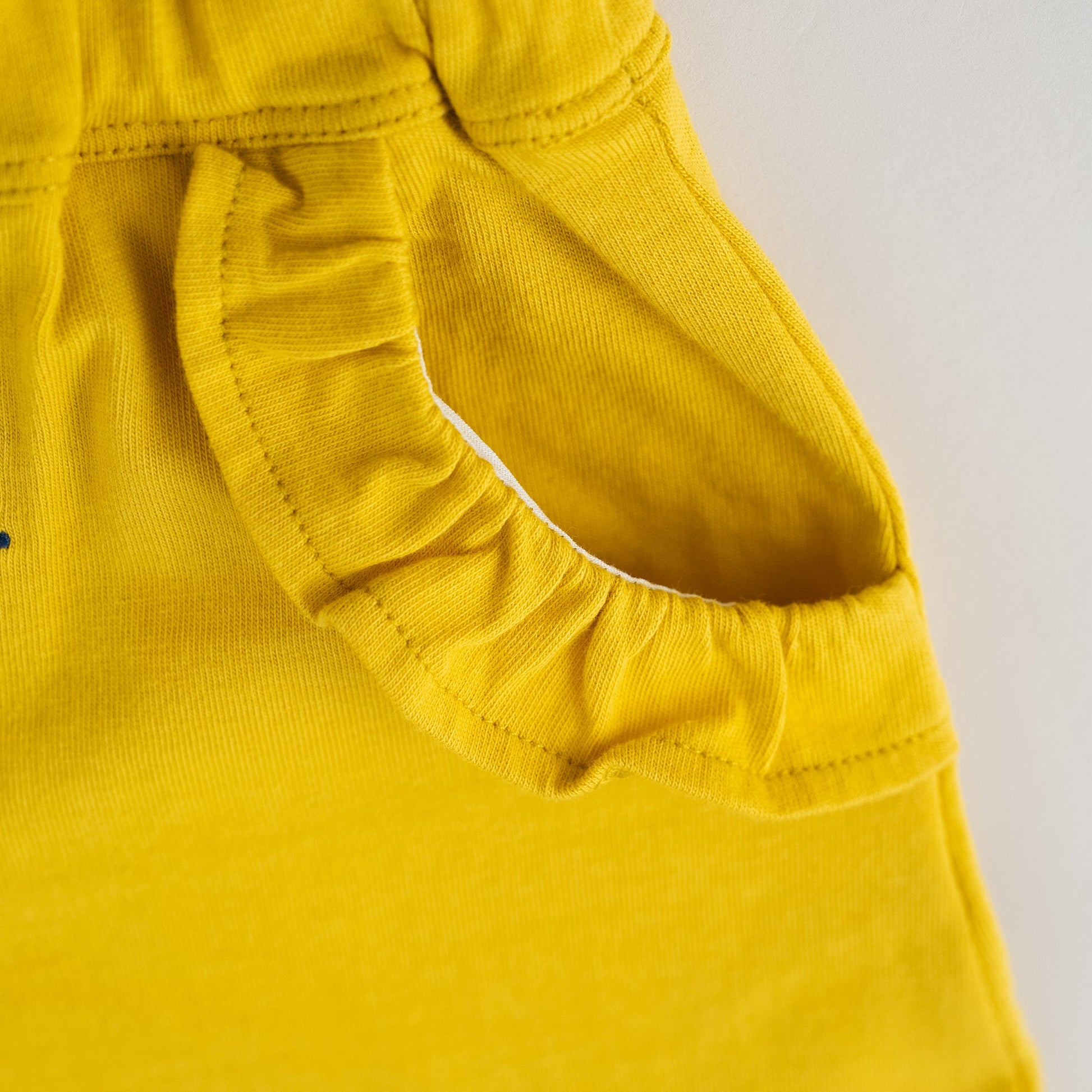 柔らかな天竺素材のフリルパンツは肌なじみが良く、トップスを選ばないデイリー使いに何枚あっても重宝します。ウエストは着脱しやすい総ゴム仕様が嬉しい1枚。
