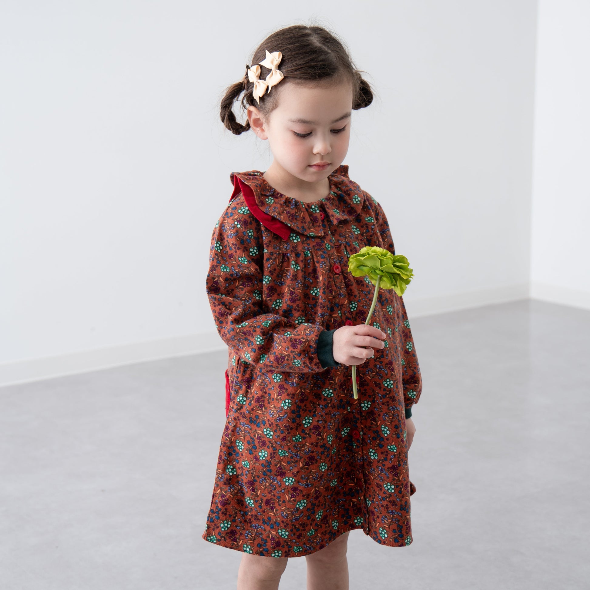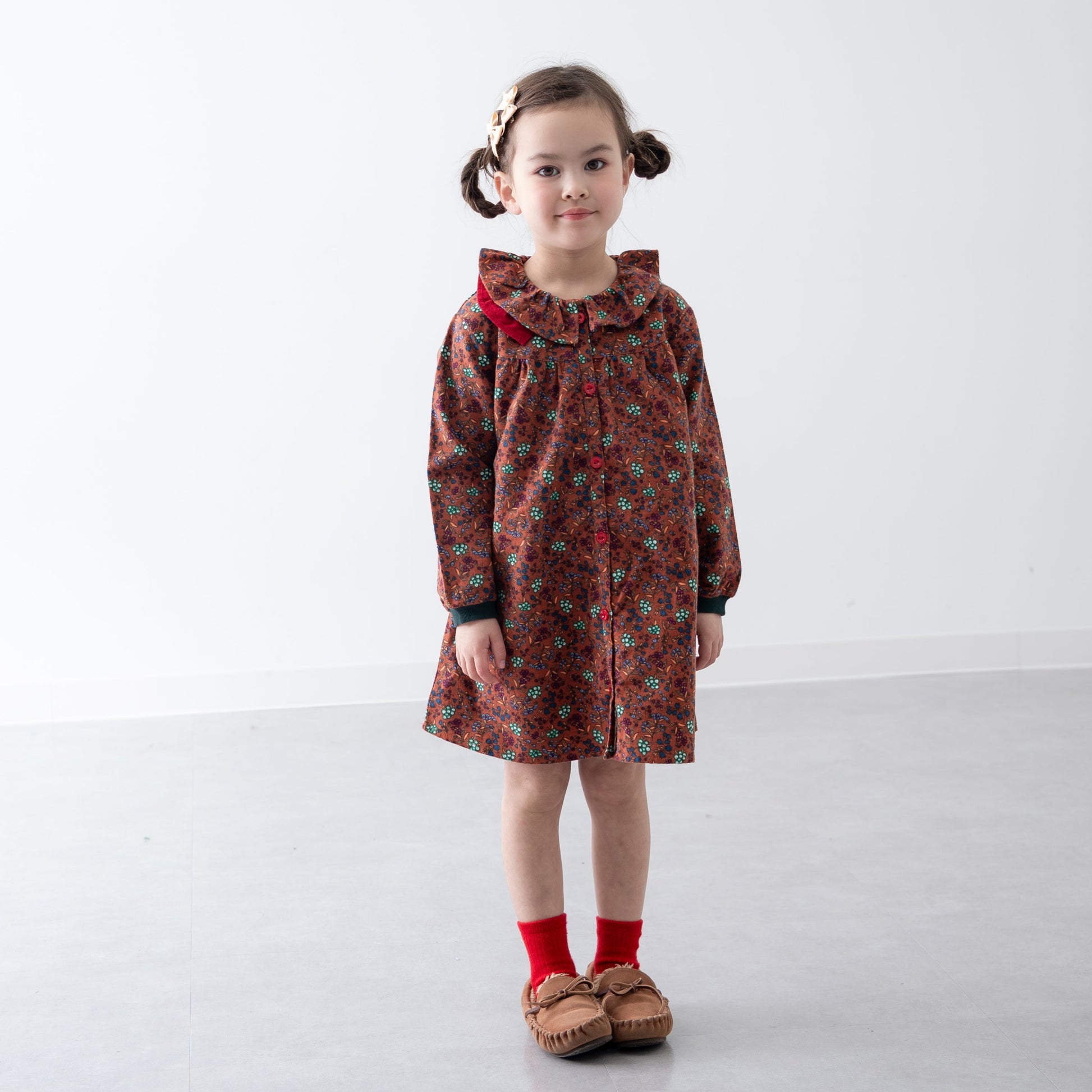 ちょっと大人っぽくおしゃれな雰囲気をまとうワンピースはこの秋のワードローブの主役に。ラウンドカラーが程よい甘さを演出してくれます。カーディガンやベストとのレイヤードはもちろん、前開きシャツタイプなのでロングシャツとして羽織ってもお使いいただけます。