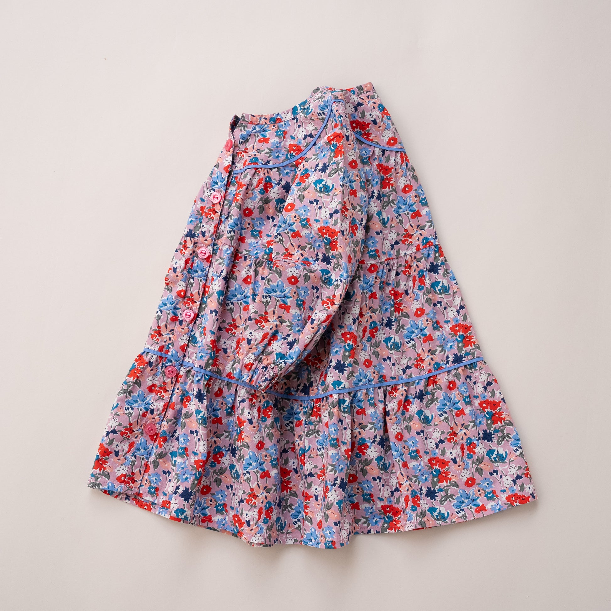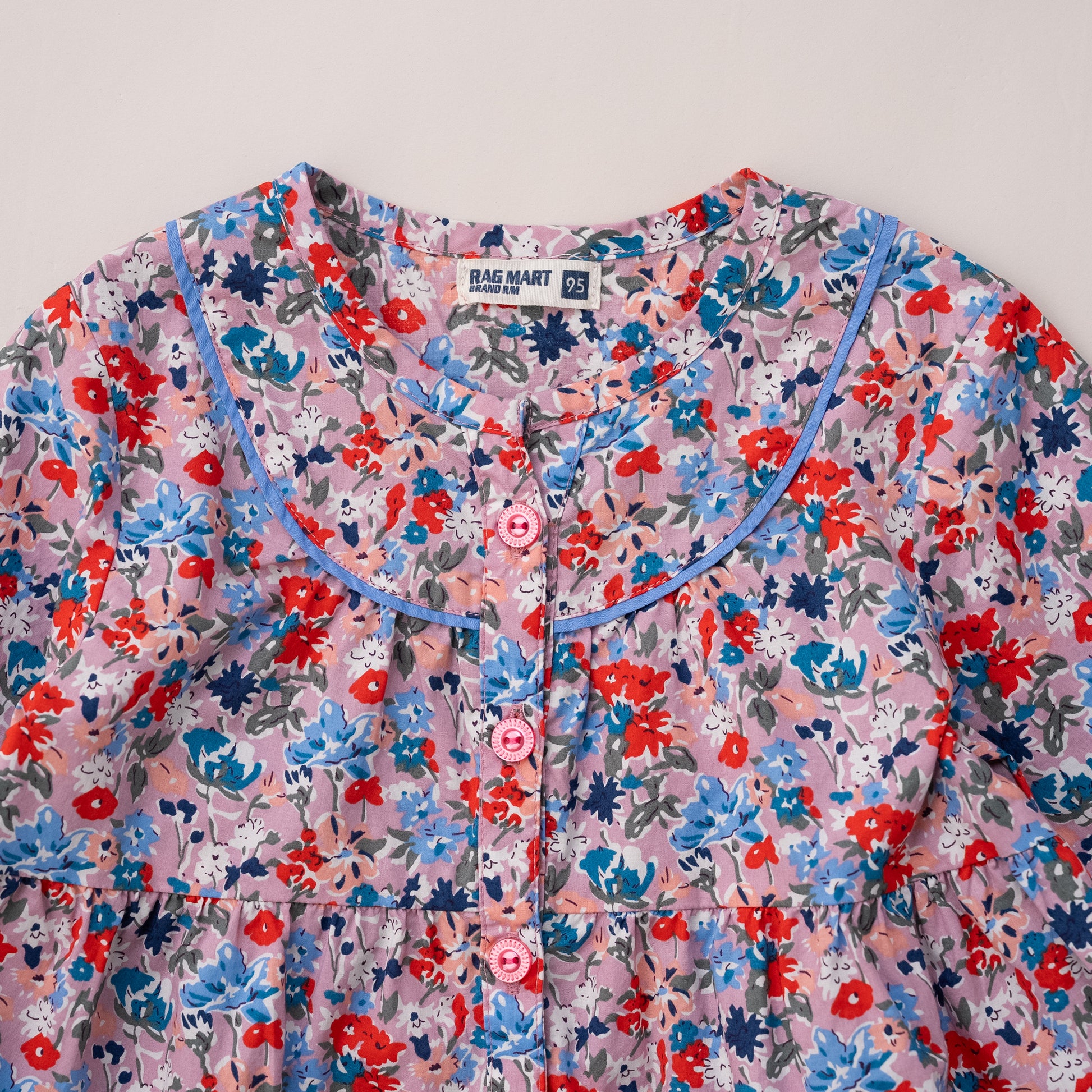 1枚着るだけで女の子らしさとおしゃれ感がグッとアップする優秀なワンピース。ラグマートの総柄アイテムはトレンドに左右されない可愛さがあり、そんなテキスタイルのファンも多い人気のブラウスワンピースです。