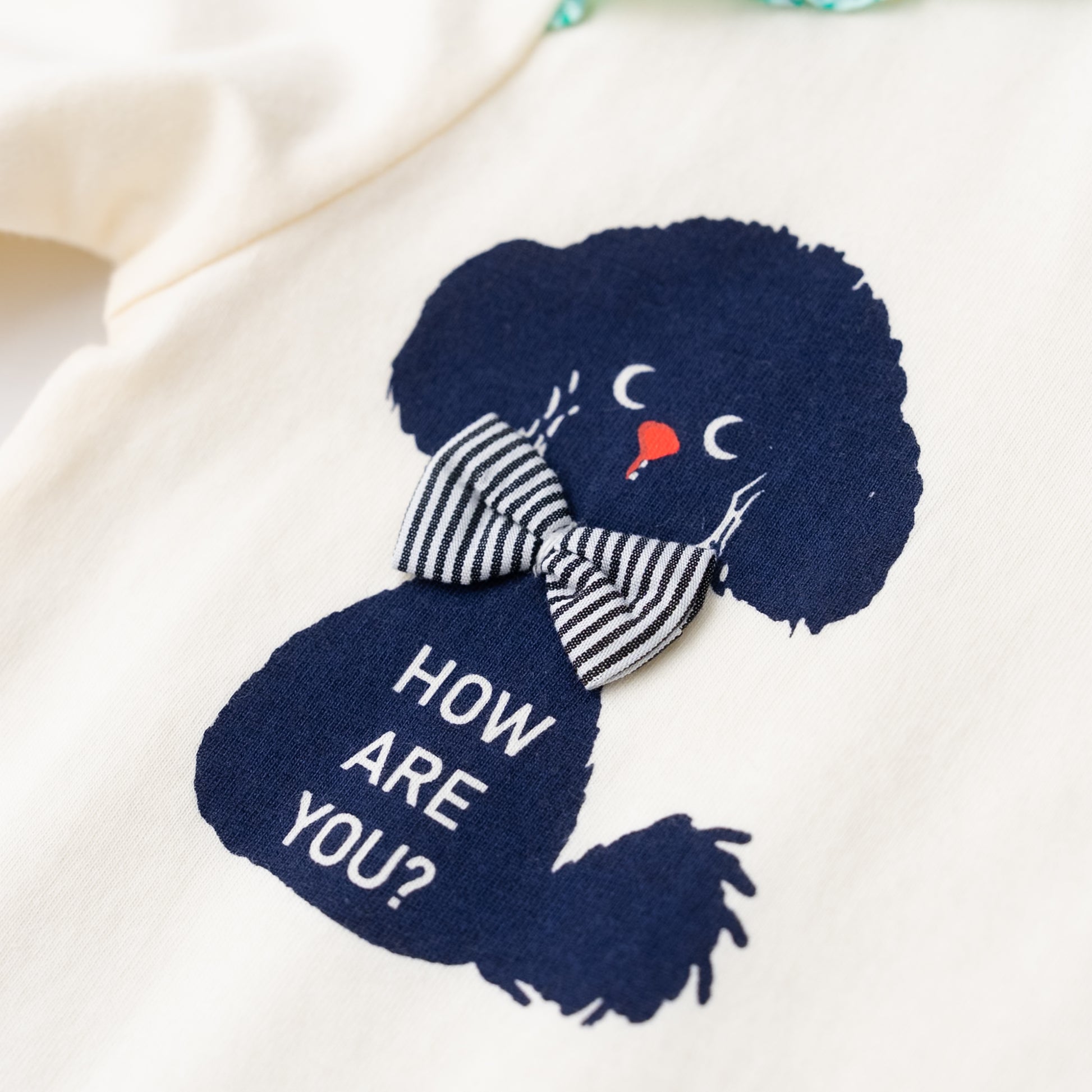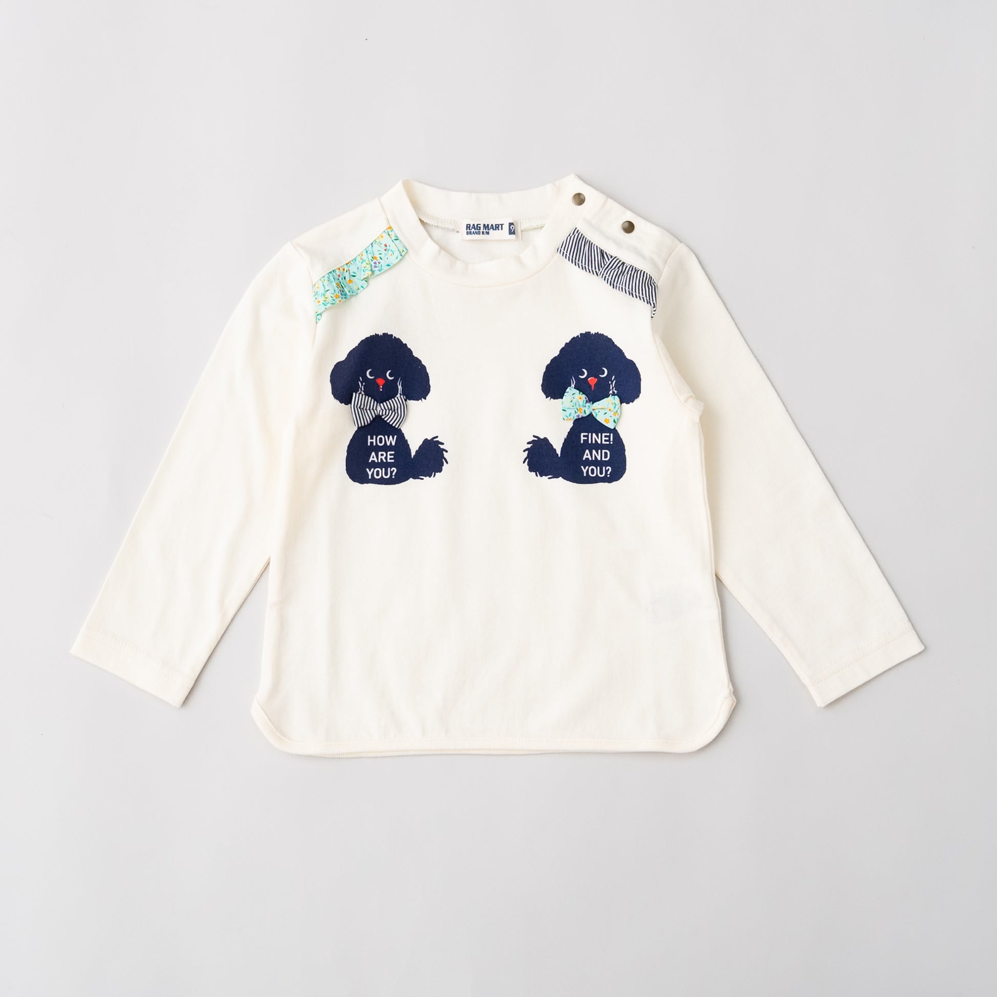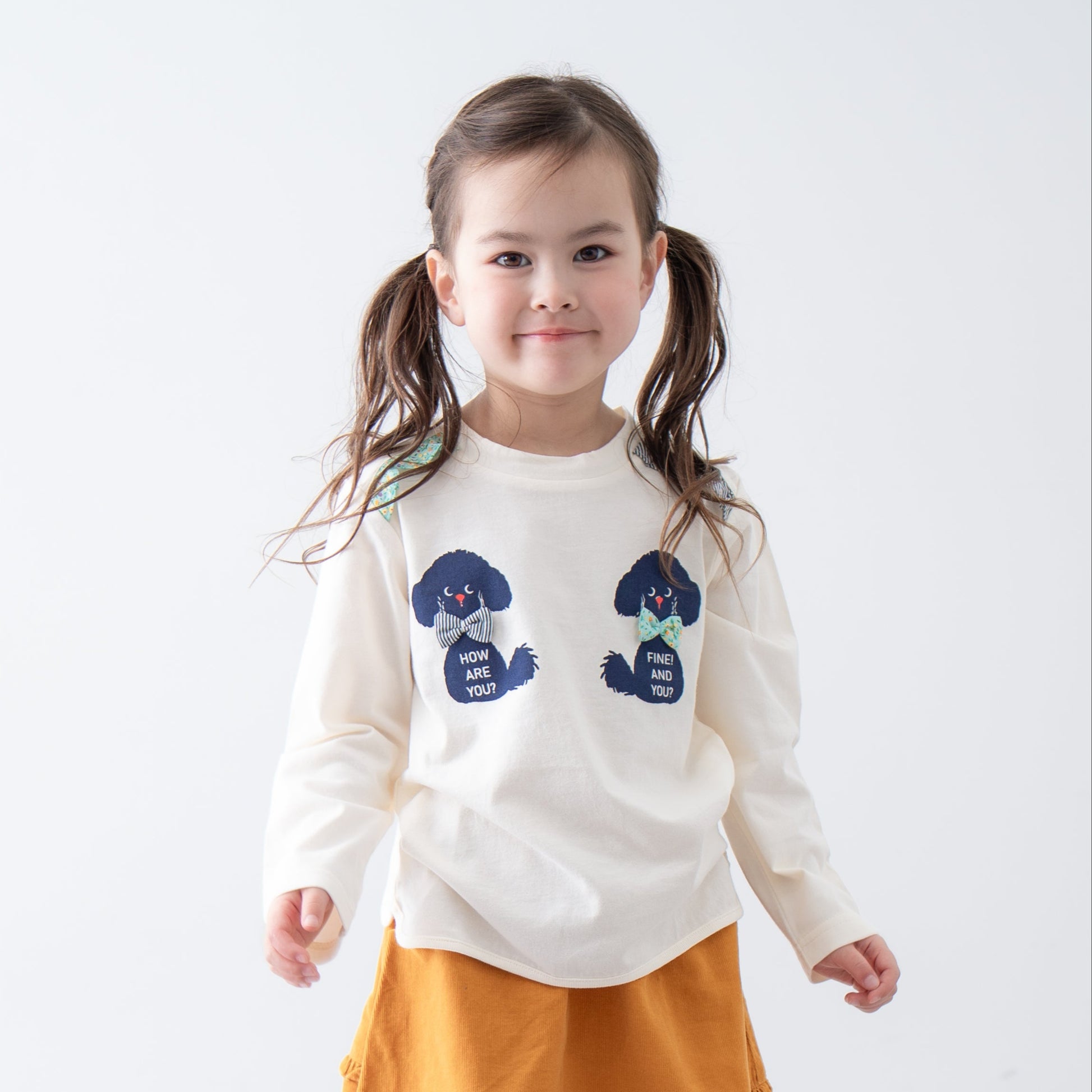 この秋、リバイバルデザインのプードルモチーフがカットソーTシャツで登場。着心地の良い天竺素材で秋口~春先まで活躍します。肩のフリル使いもかわいい1枚です。
