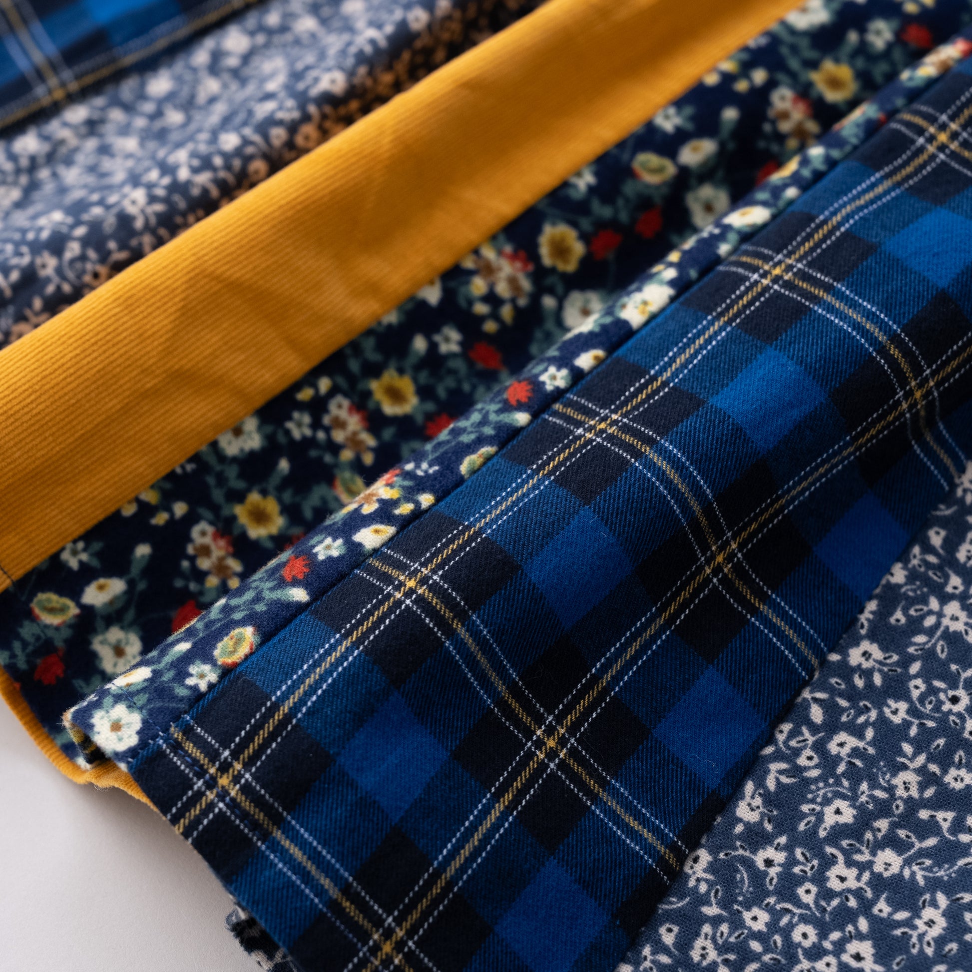 例)ボタンやステッチ糸のカラー・パッチワーク部分の素材変更など。