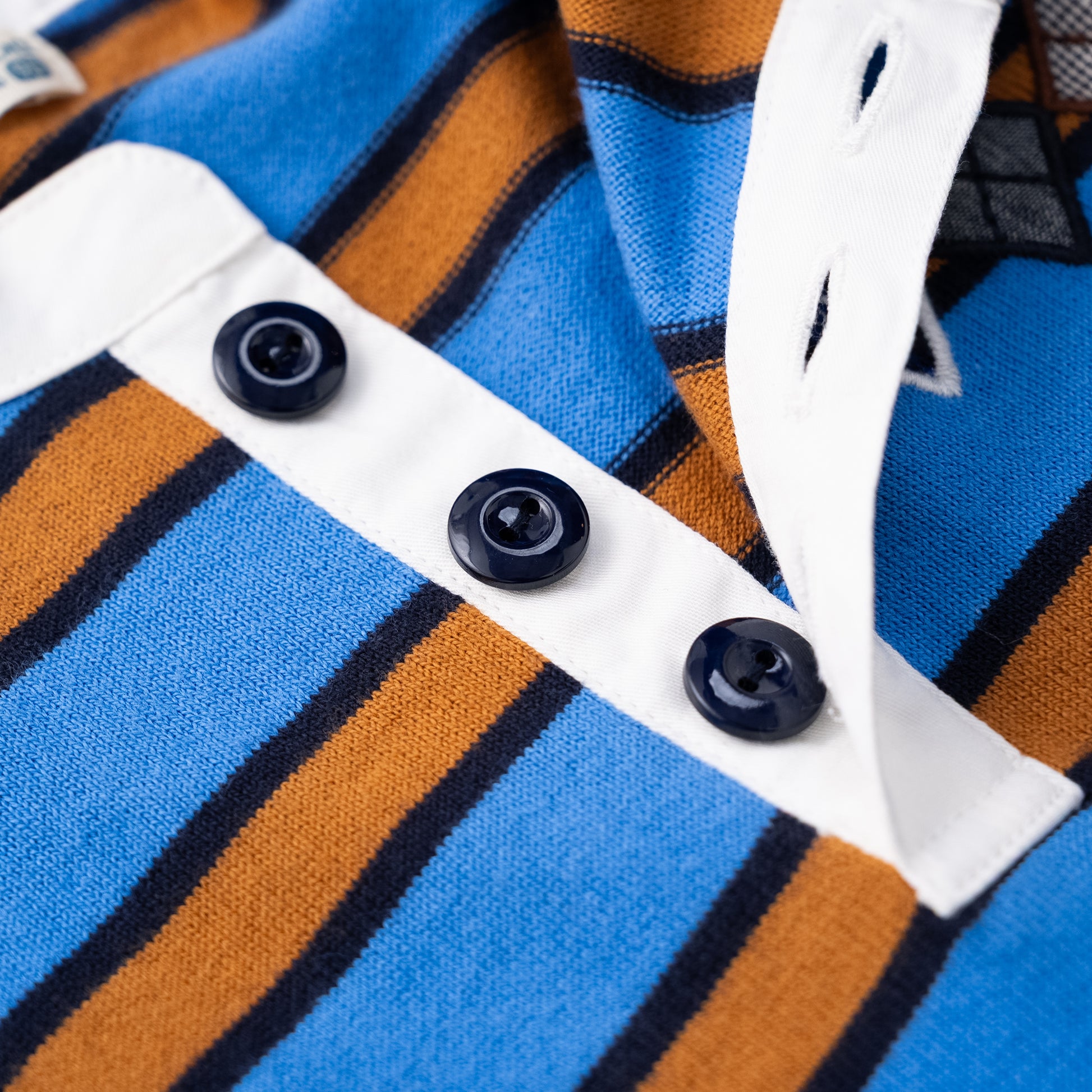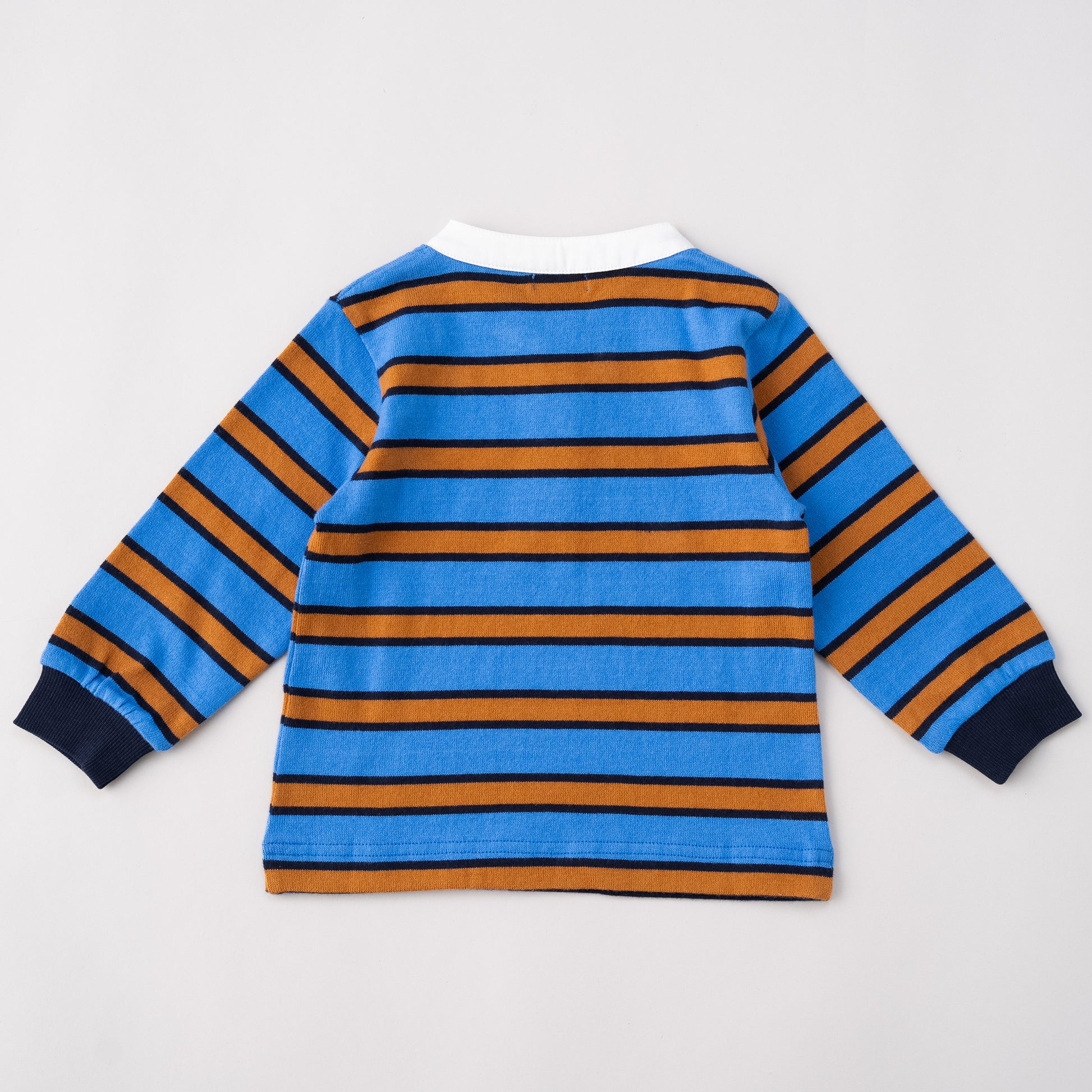 配色にこだわったボーダーTシャツはすっきりとした白襟ヘンリーネック仕様。胸元のワッペンがアクセントになっています。シリーズでワンピースもあり、ペアコーデをお楽しみいただけます。