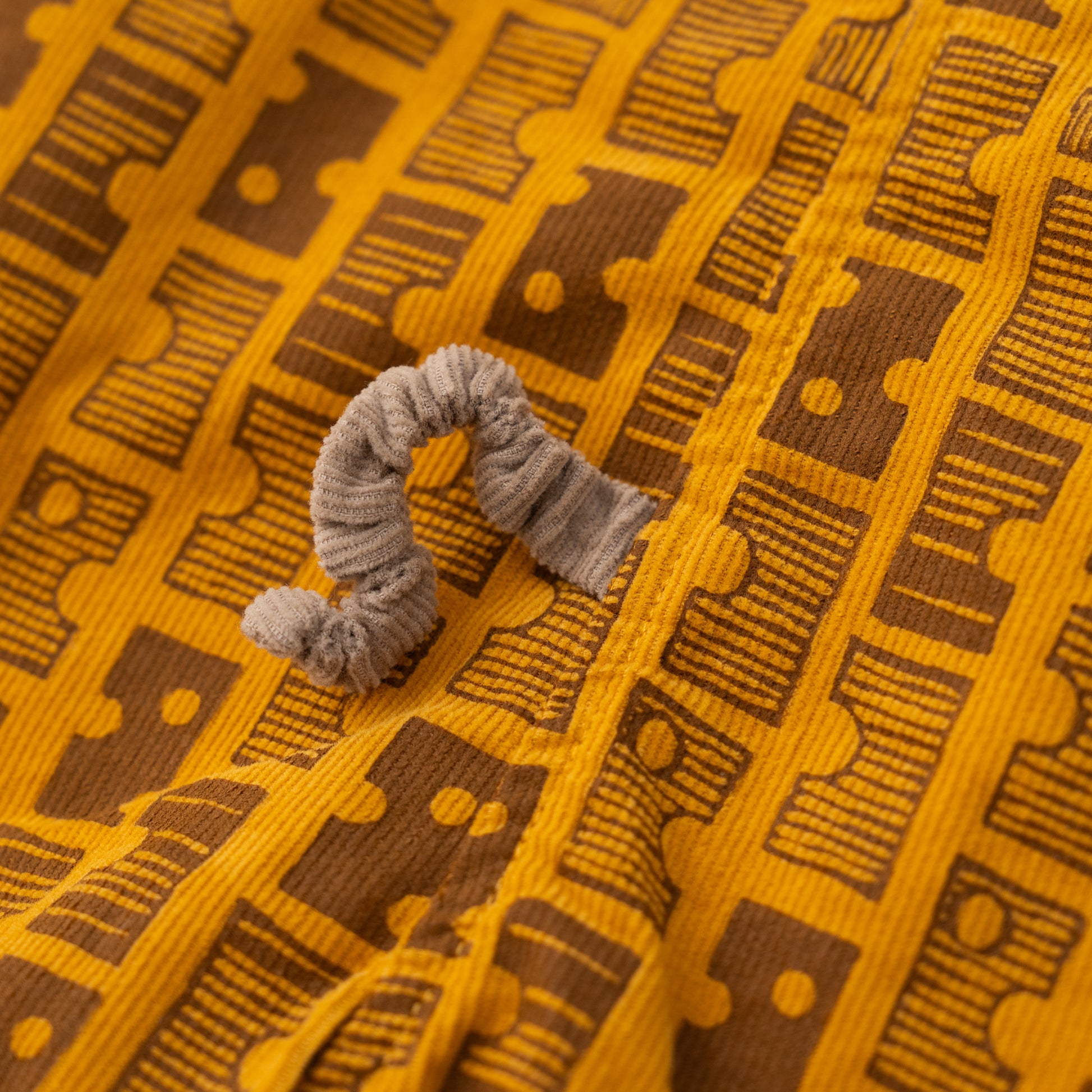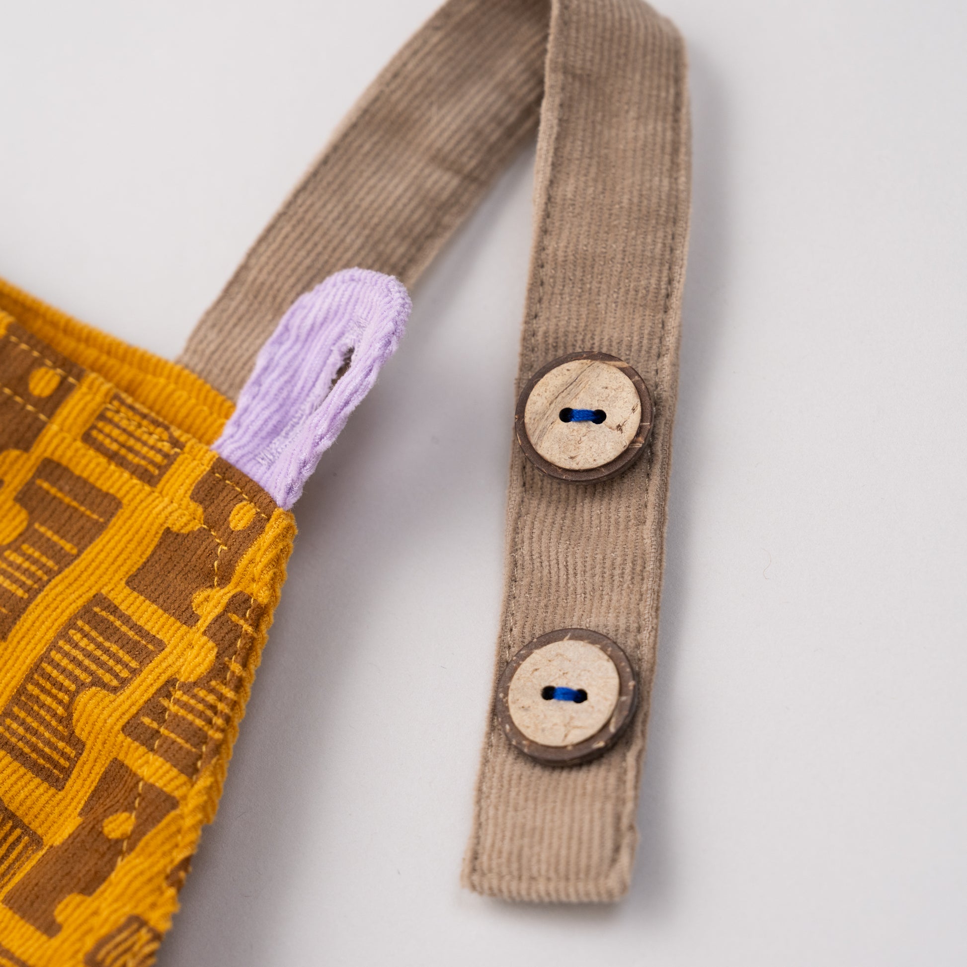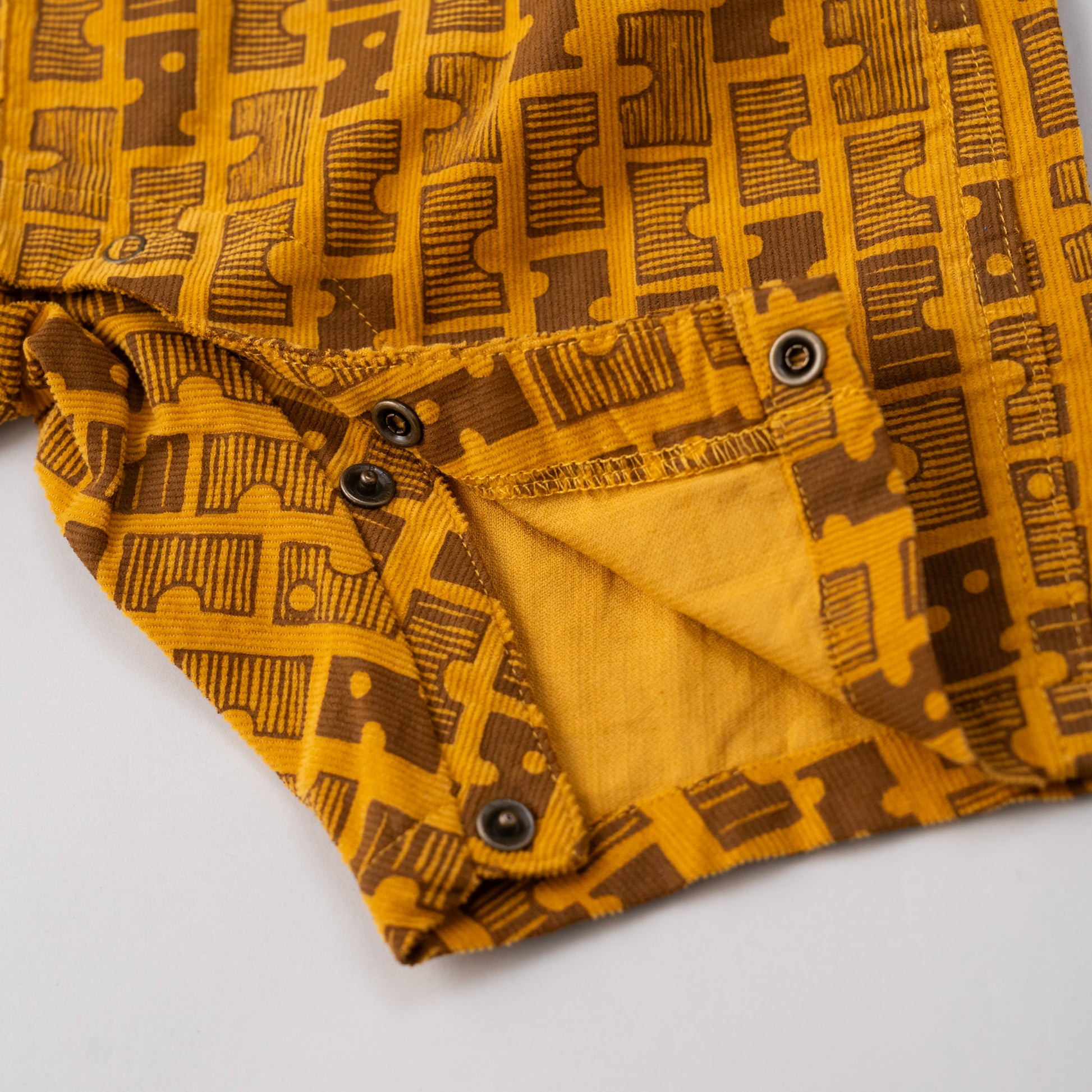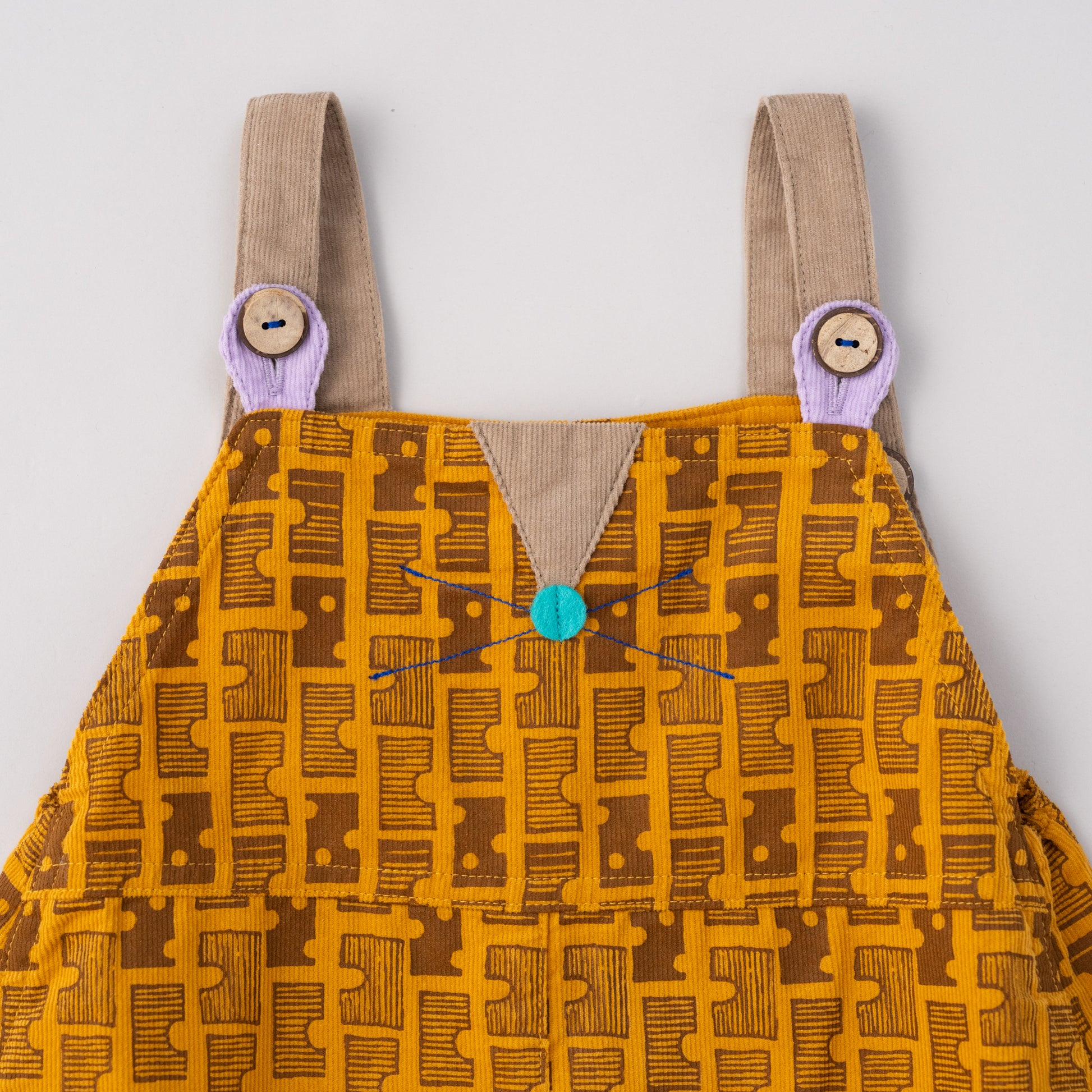 ベビーサロペットは柔らかなミジンコール素材を使用し、全体的に丸いシルエットが赤ちゃんらしくかわいいデザイン。個性的な総柄でユニセックスにお使いいただけます。
