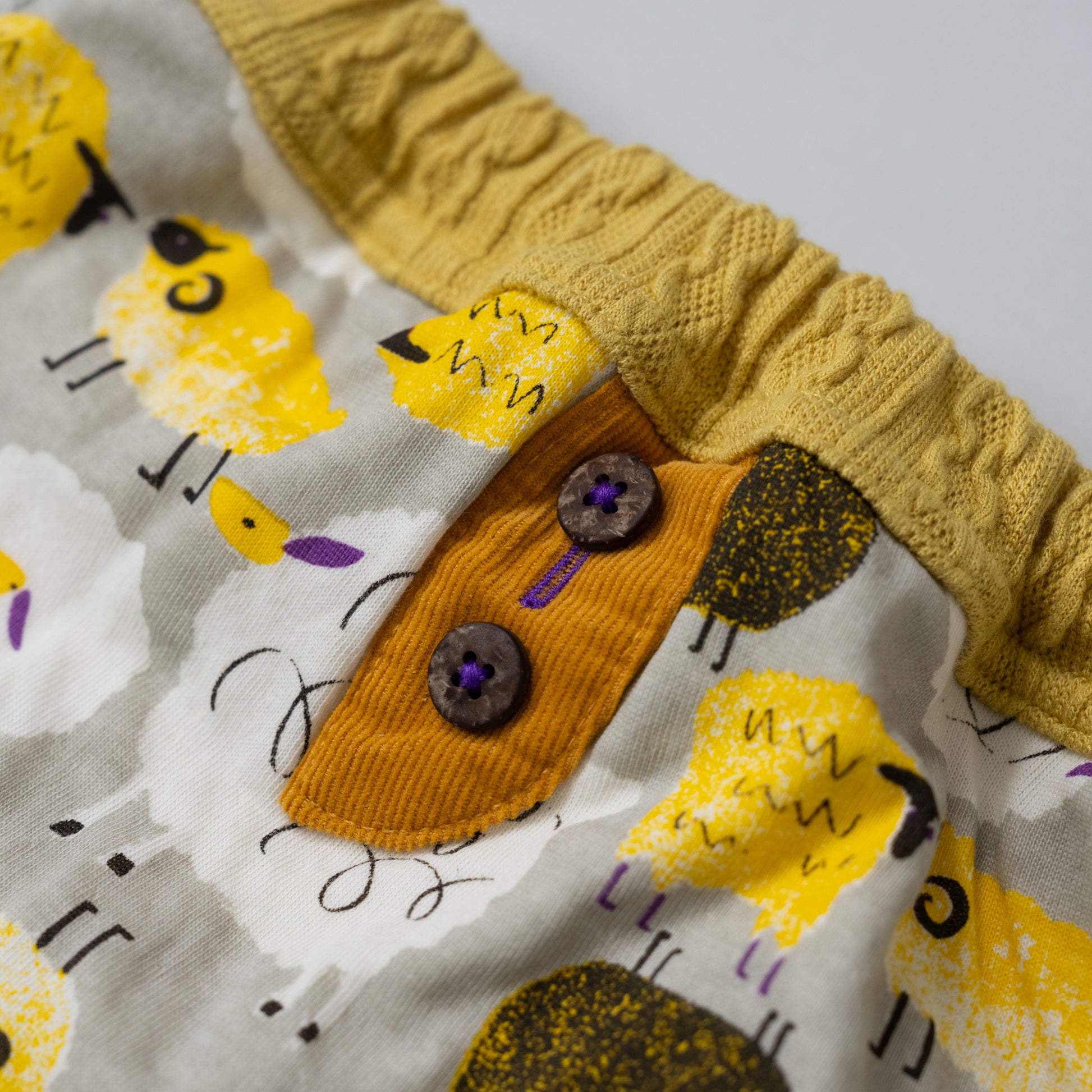例)ボタンやステッチ糸のカラー・パッチワーク部分の素材変更など。