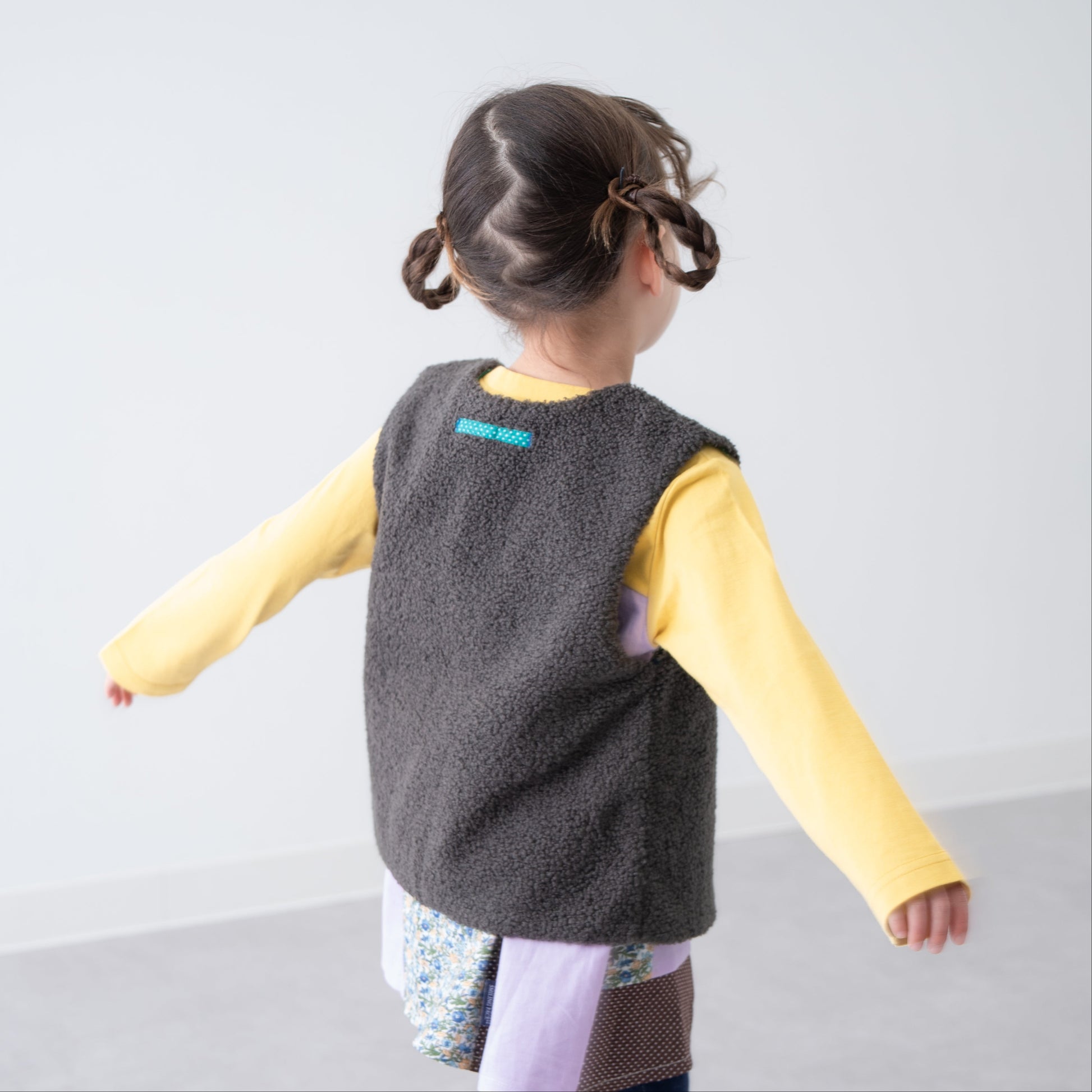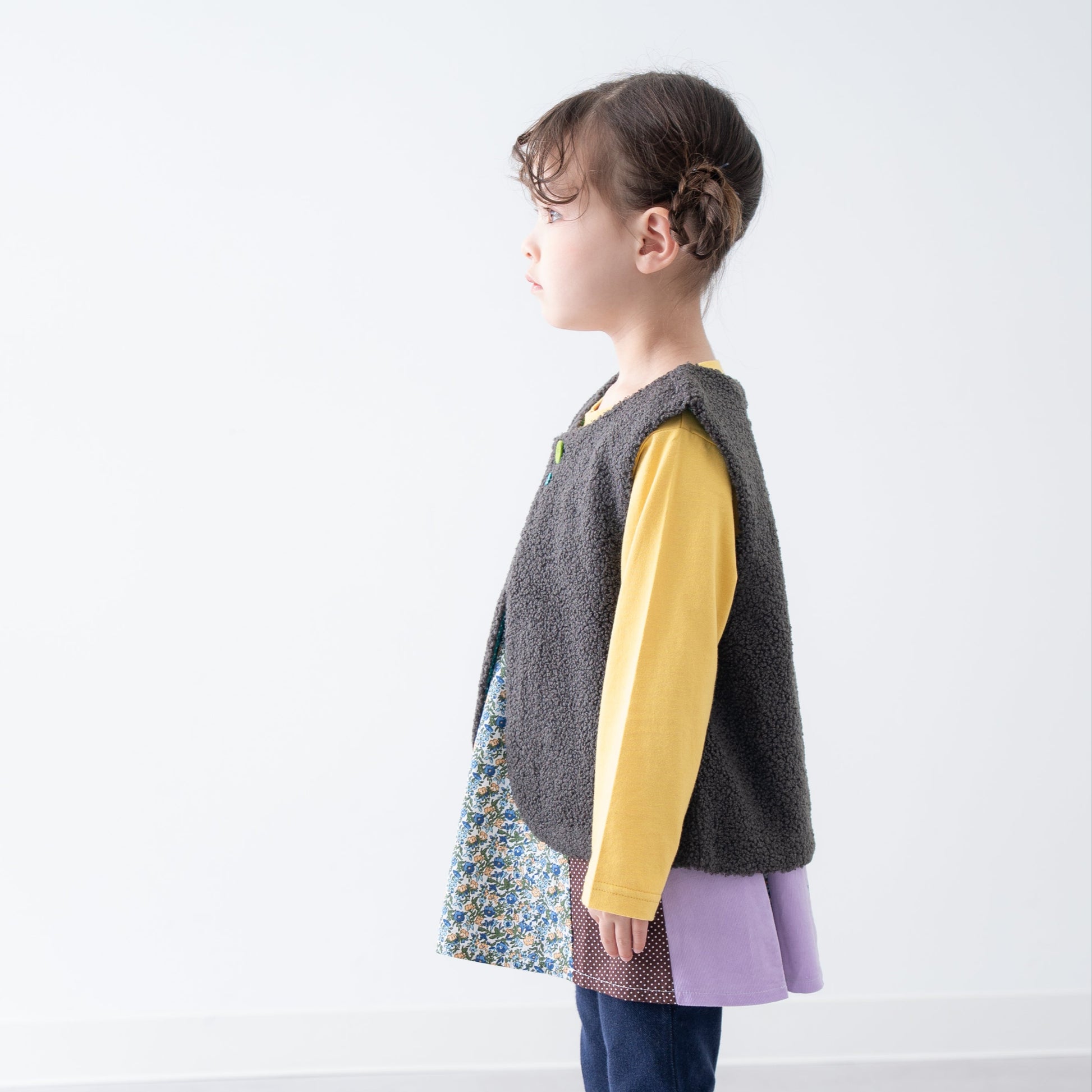 秋のレイヤードコーデに人気のボア素材のベスト。もこもこ感がワンピやパンツとのコーデにグッと秋らしさをプラスします。男の子にもお使いいただけます。同素材のマフラーやポシェットもあり、素材でのリンクコーデをお楽しみください。