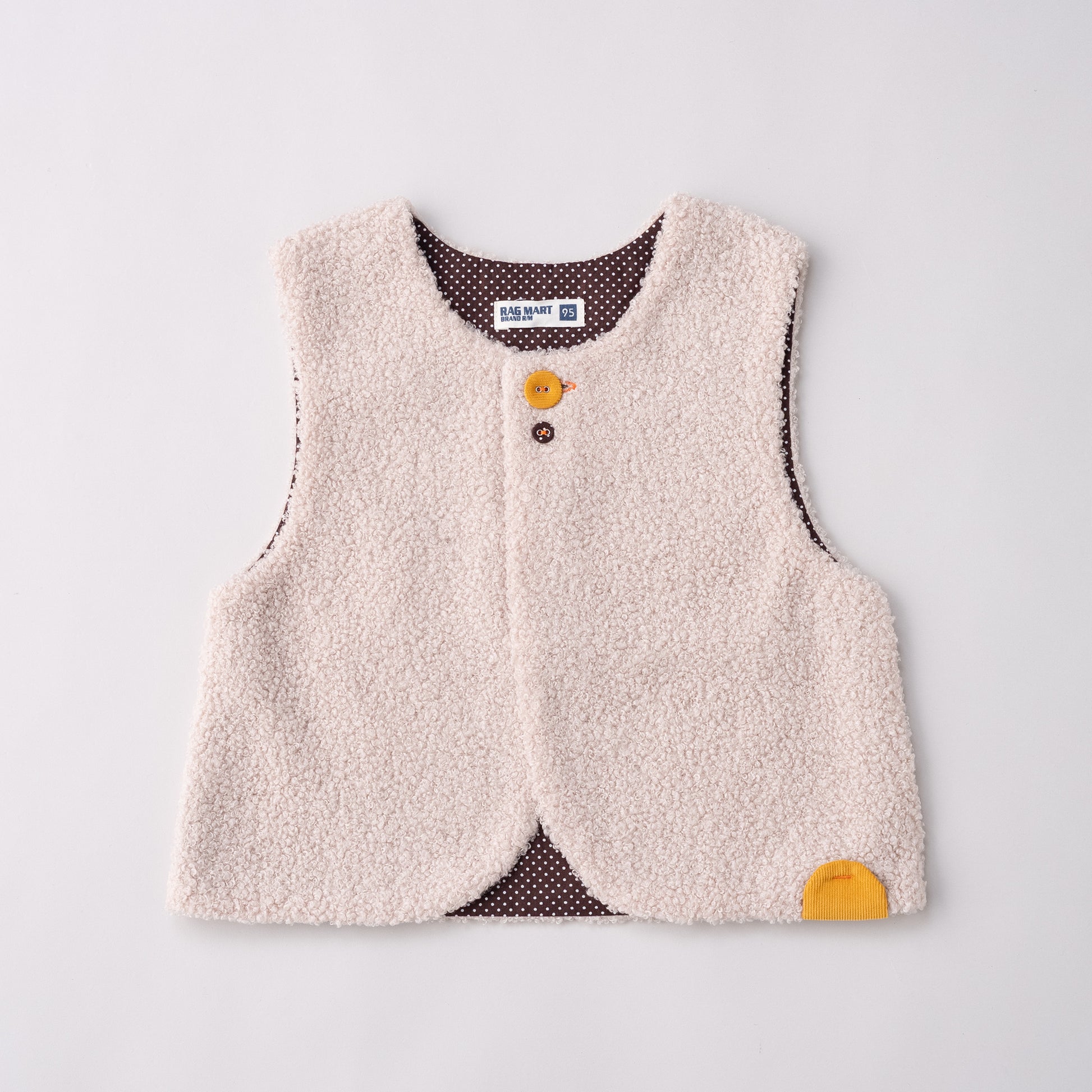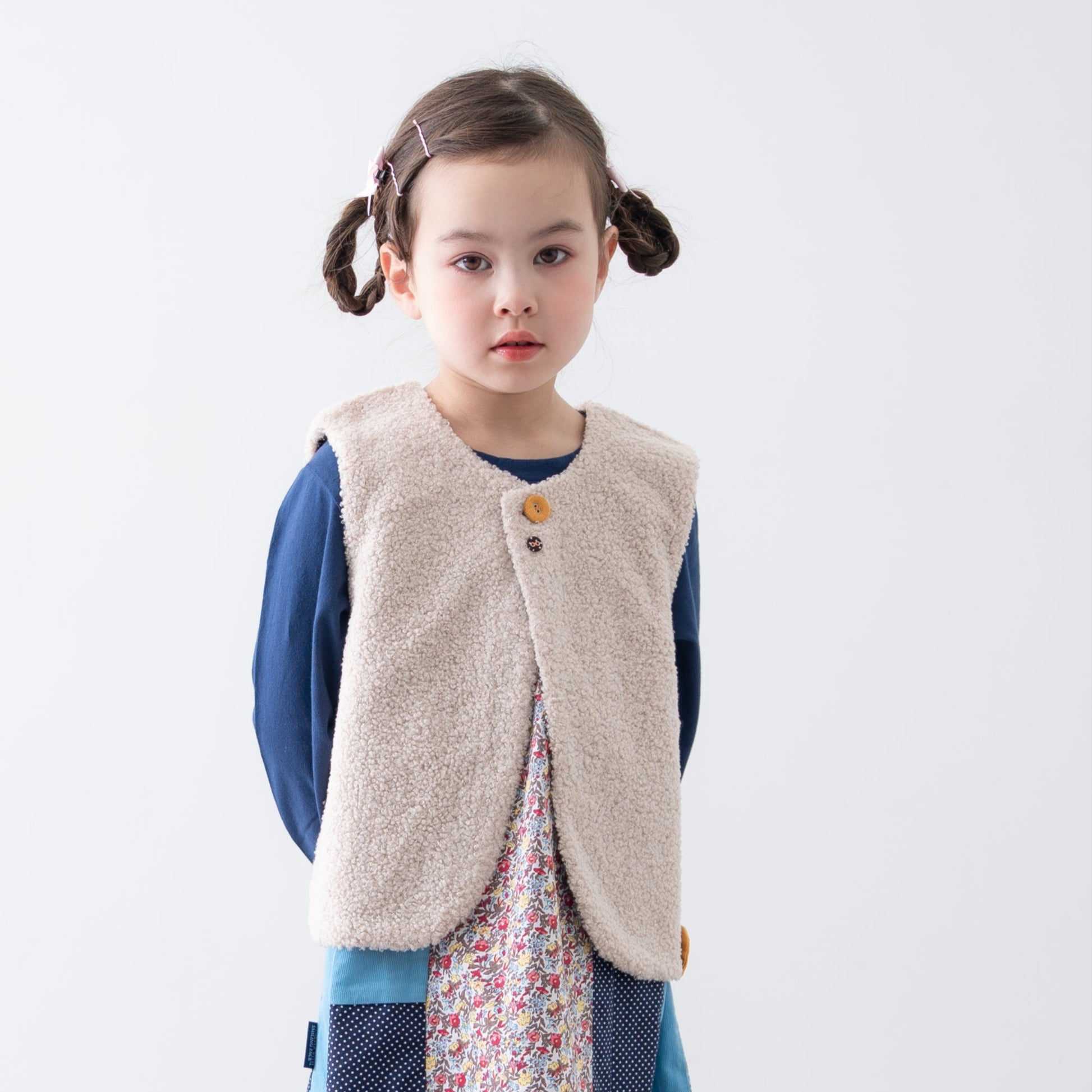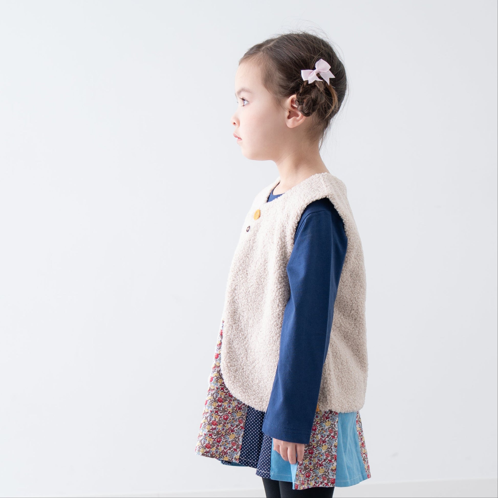 秋のレイヤードコーデに人気のボア素材のベスト。もこもこ感がワンピやパンツとのコーデにグッと秋らしさをプラスします。男の子にもお使いいただけます。同素材のマフラーやポシェットもあり、素材でのリンクコーデをお楽しみください。
