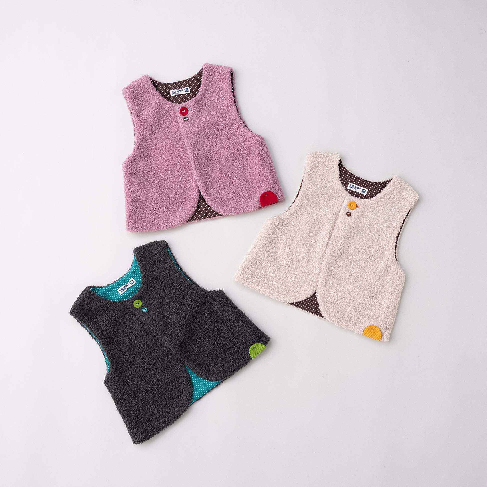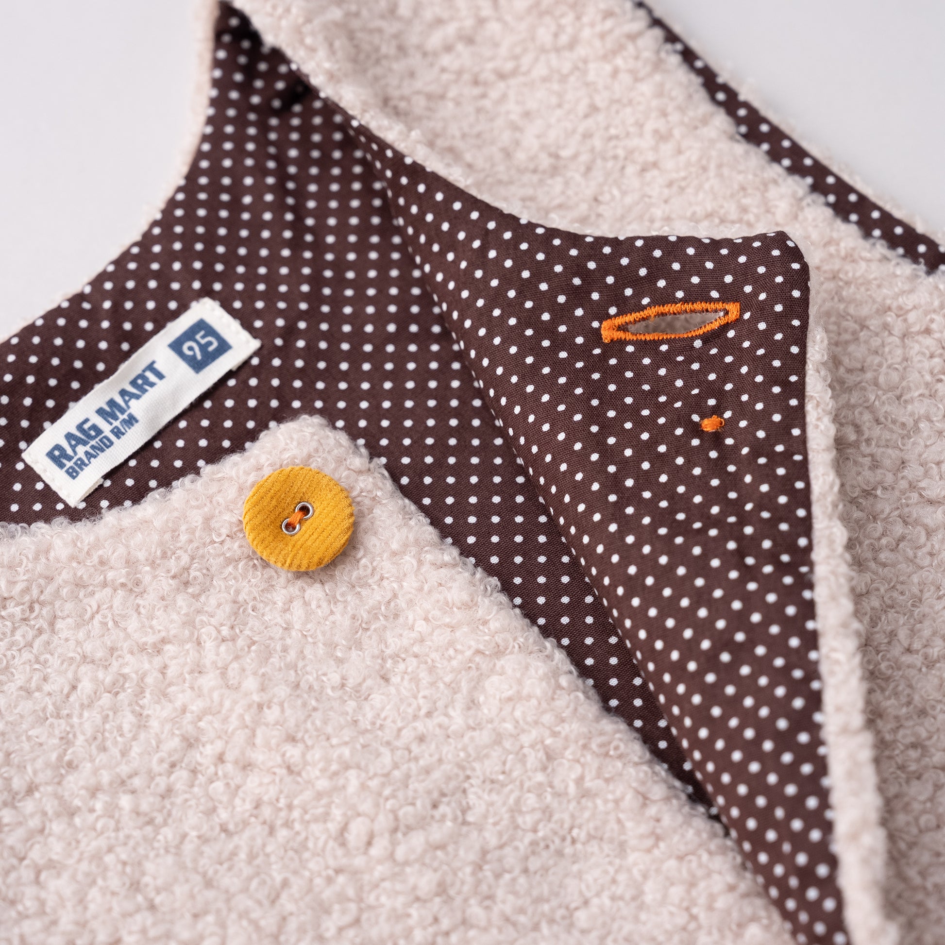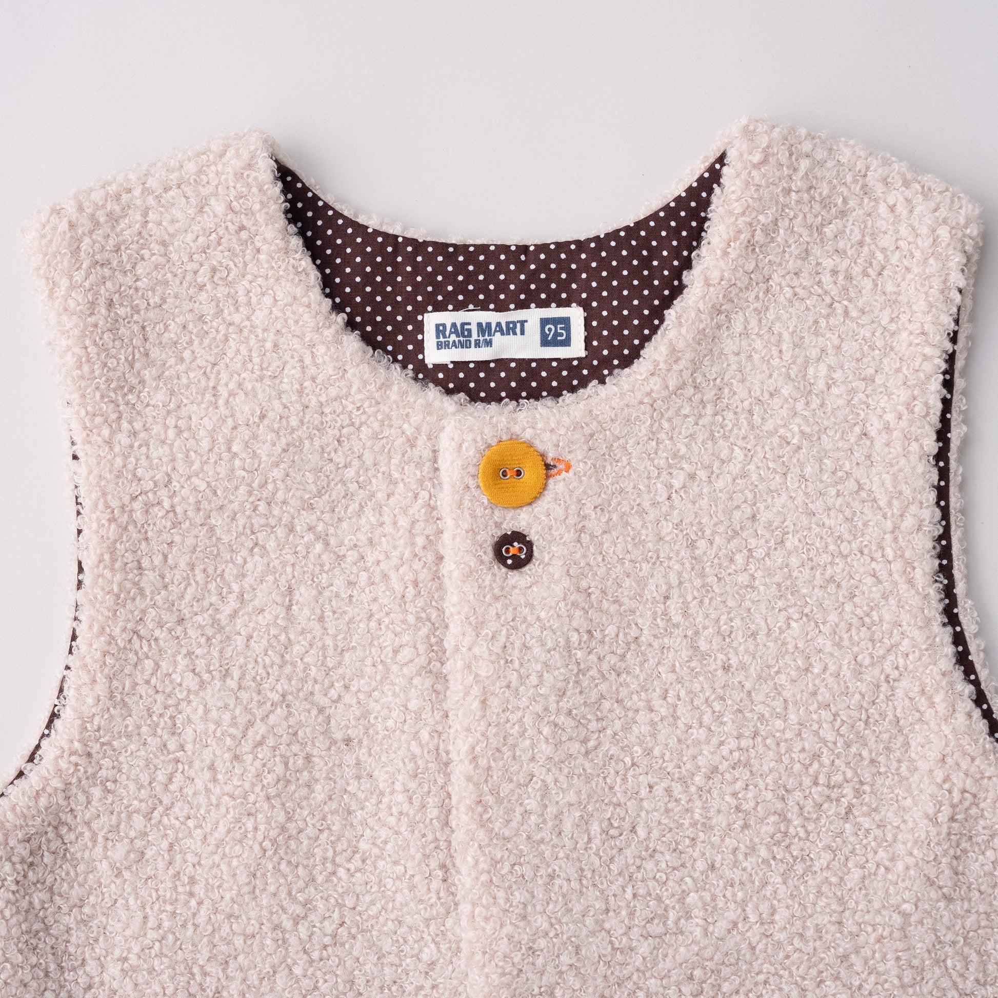 秋のレイヤードコーデに人気のボア素材のベスト。もこもこ感がワンピやパンツとのコーデにグッと秋らしさをプラスします。男の子にもお使いいただけます。同素材のマフラーやポシェットもあり、素材でのリンクコーデをお楽しみください。
