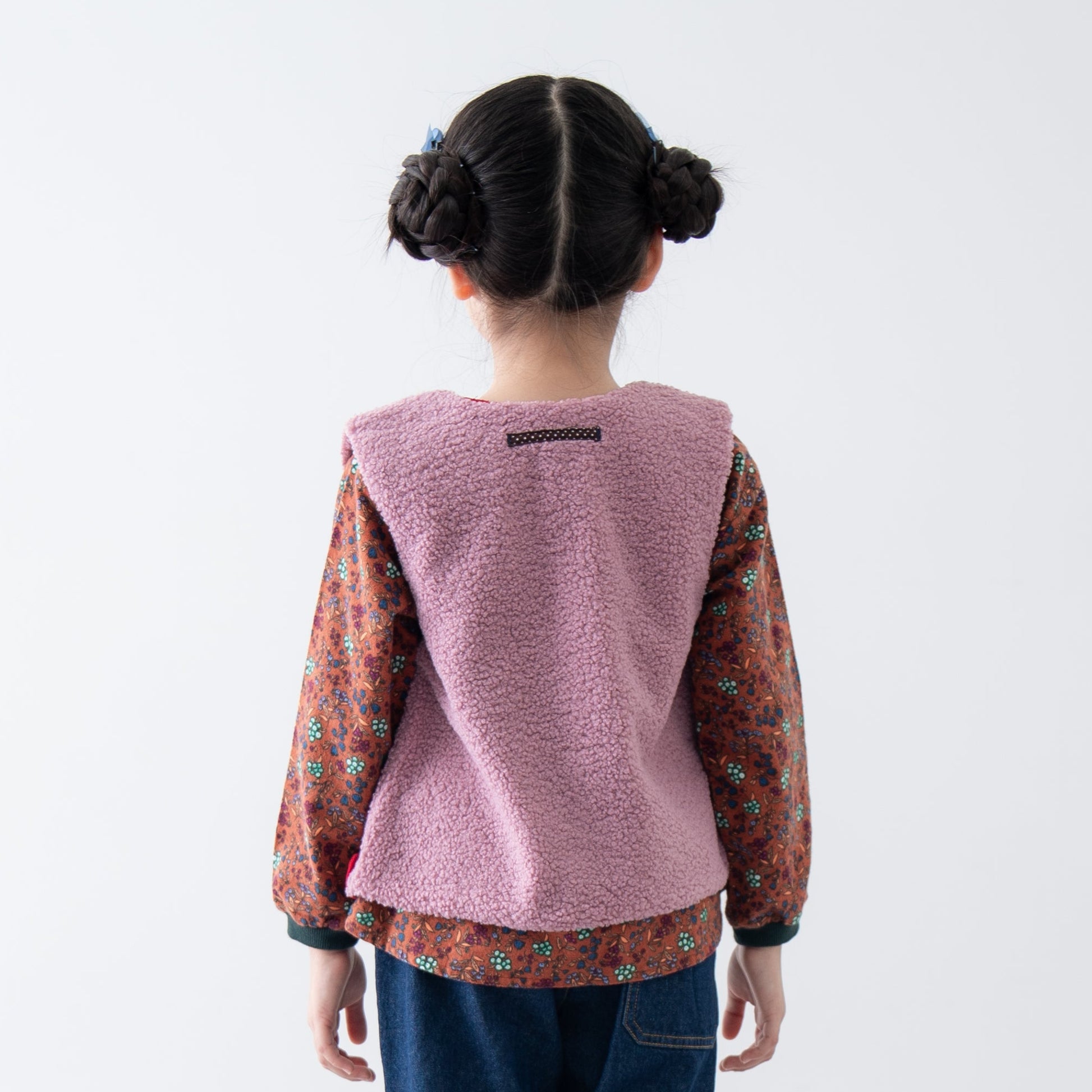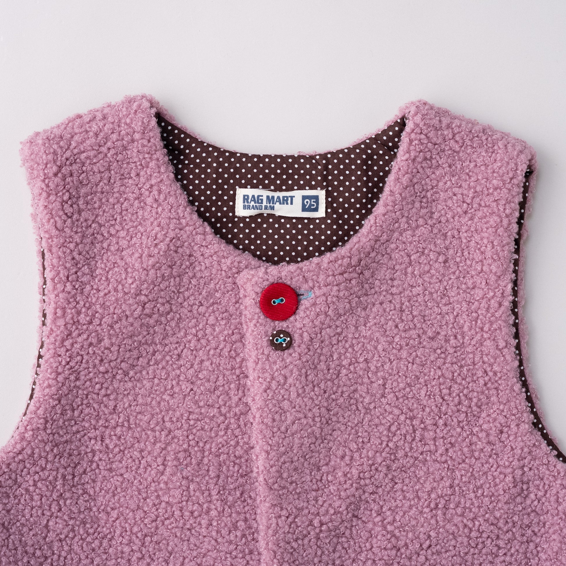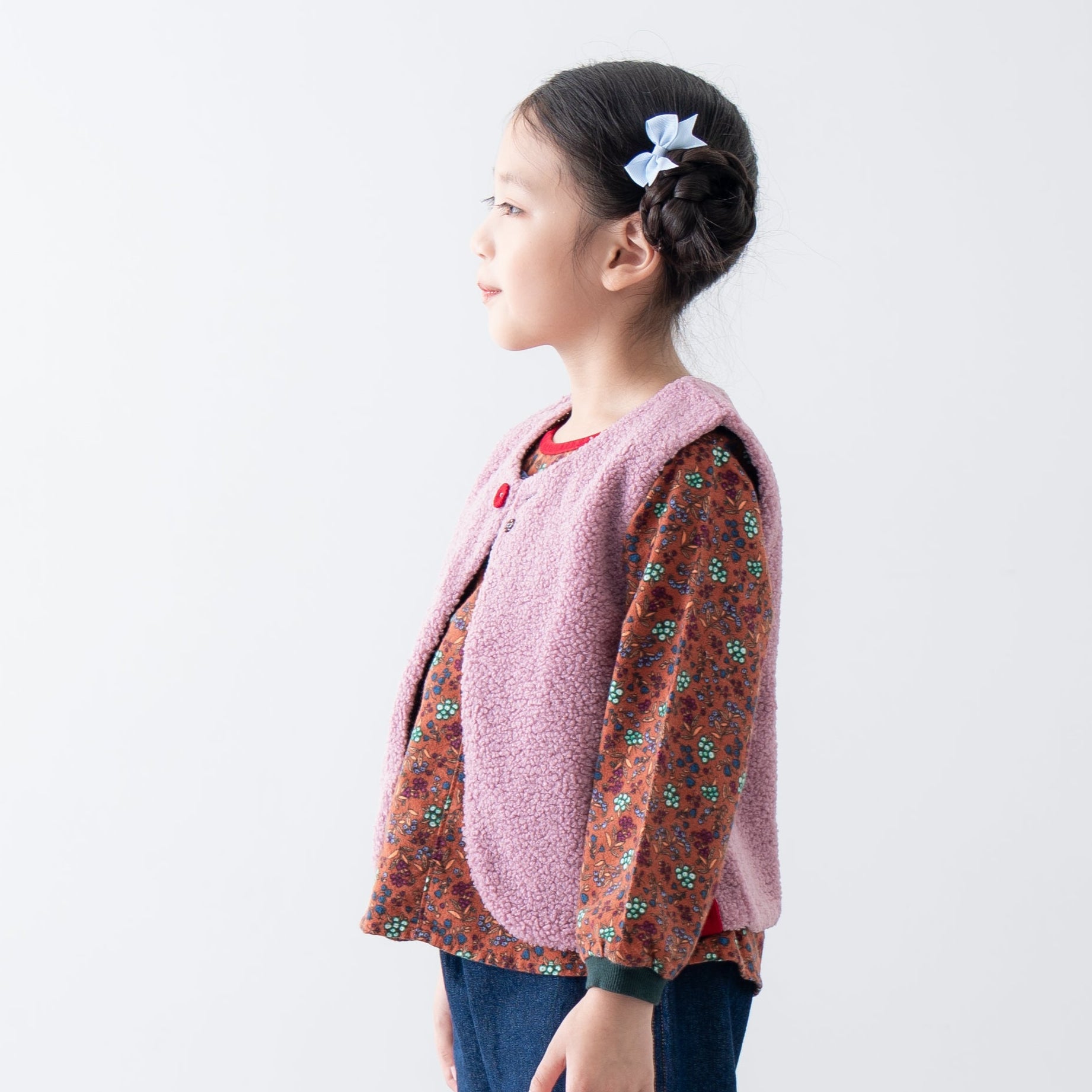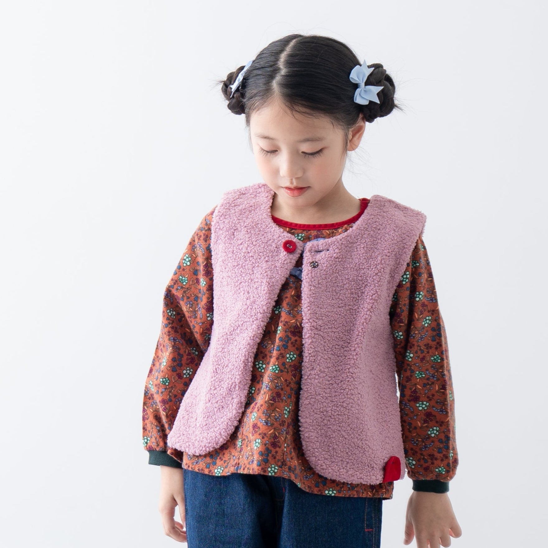 秋のレイヤードコーデに人気のボア素材のベスト。もこもこ感がワンピやパンツとのコーデにグッと秋らしさをプラスします。男の子にもお使いいただけます。同素材のマフラーやポシェットもあり、素材でのリンクコーデをお楽しみください。
