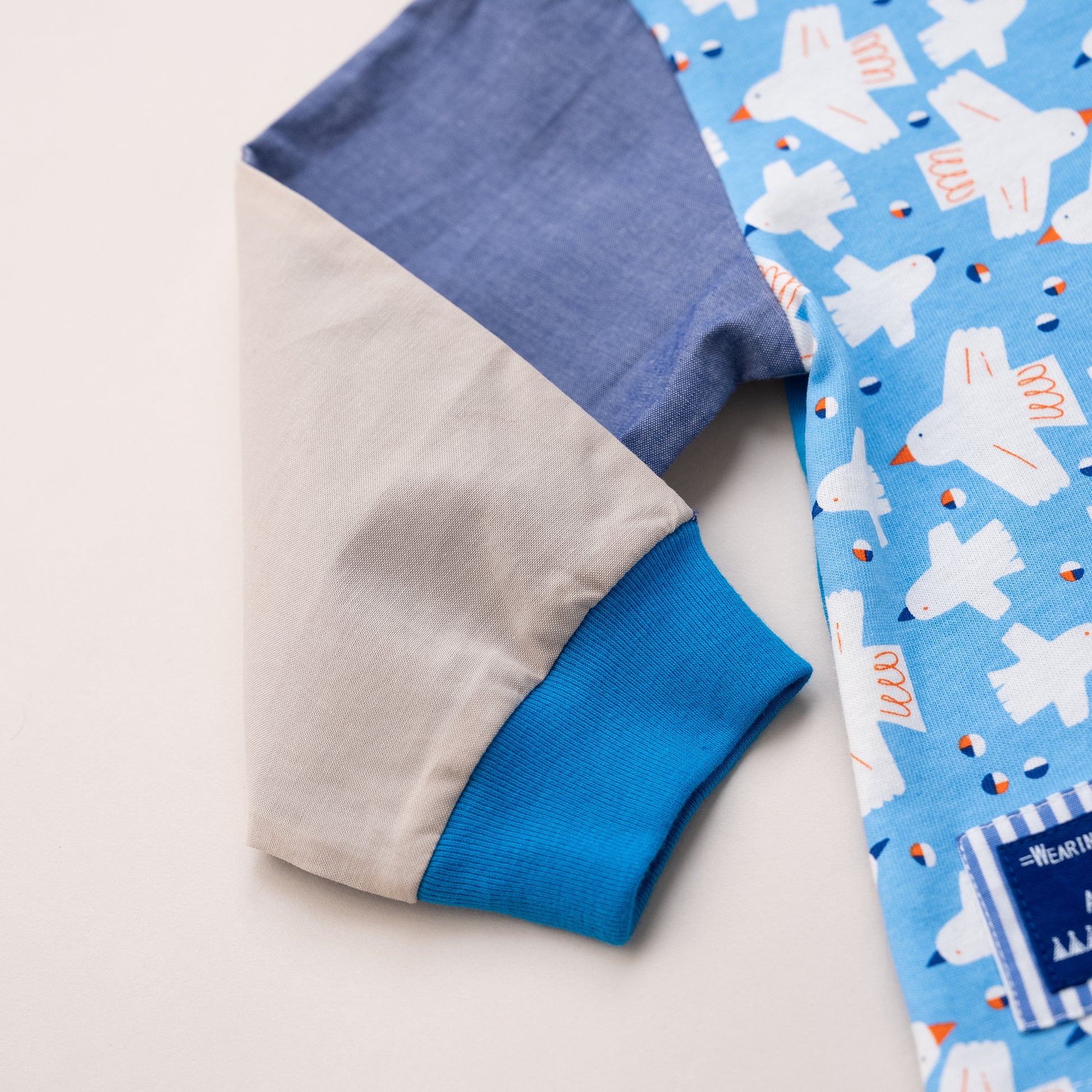 切り替えスリーブTシャツ【トリ】 BLUE