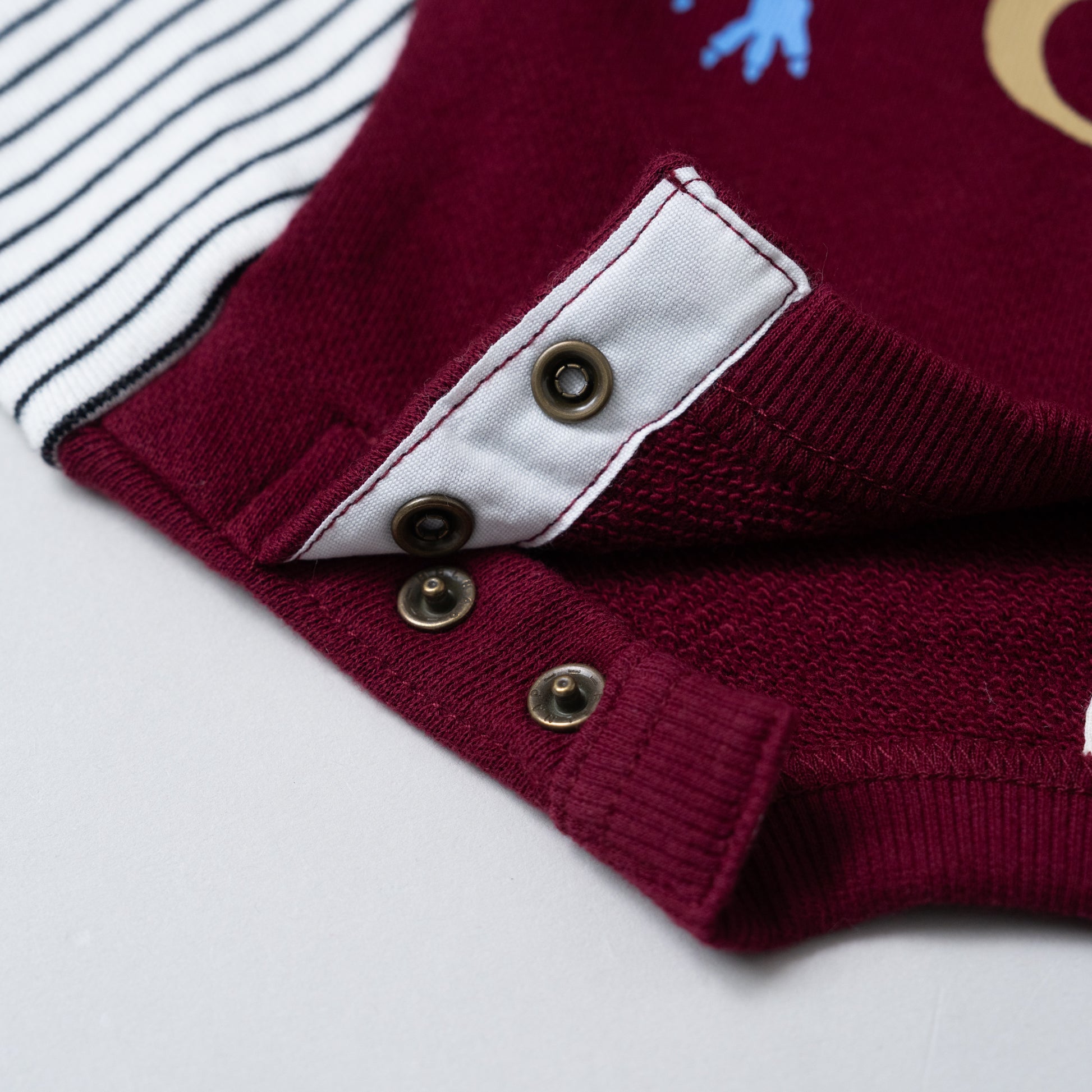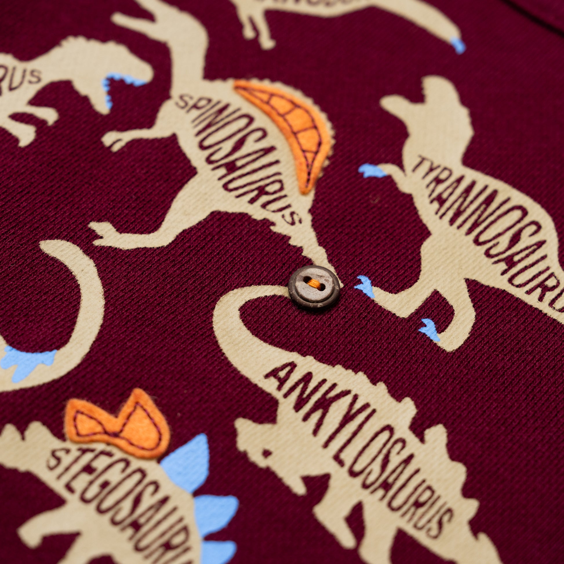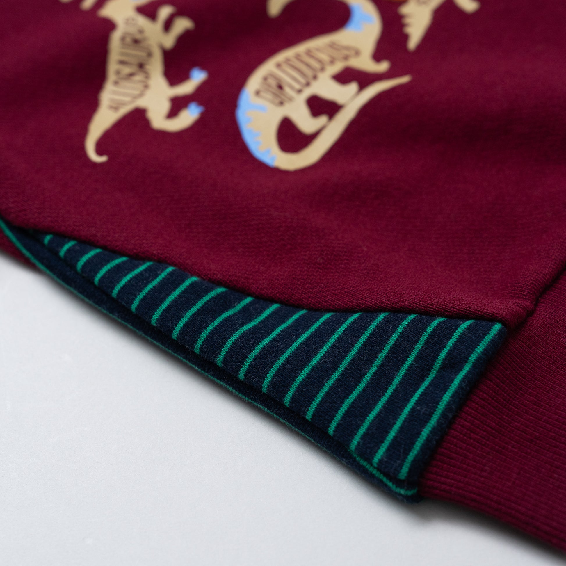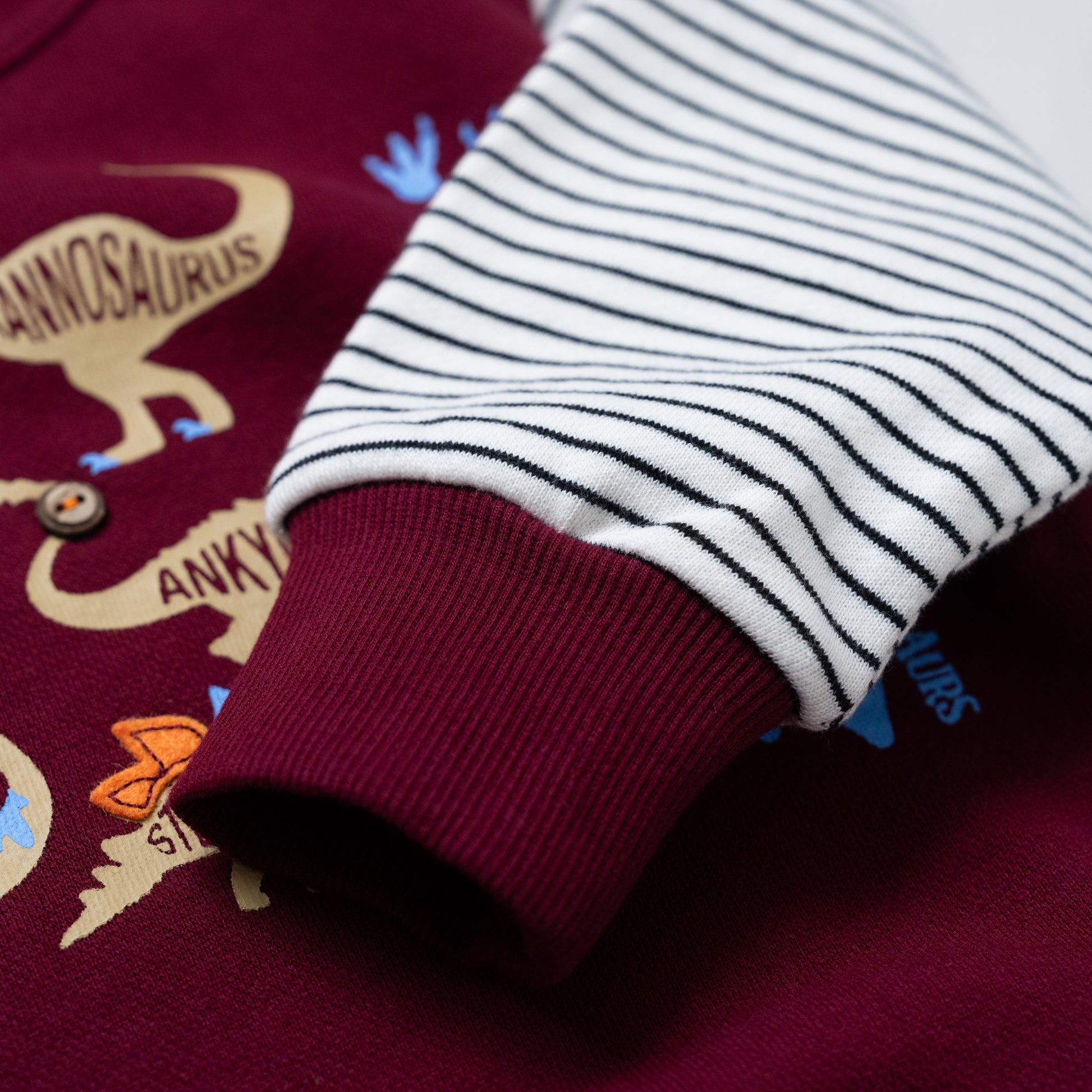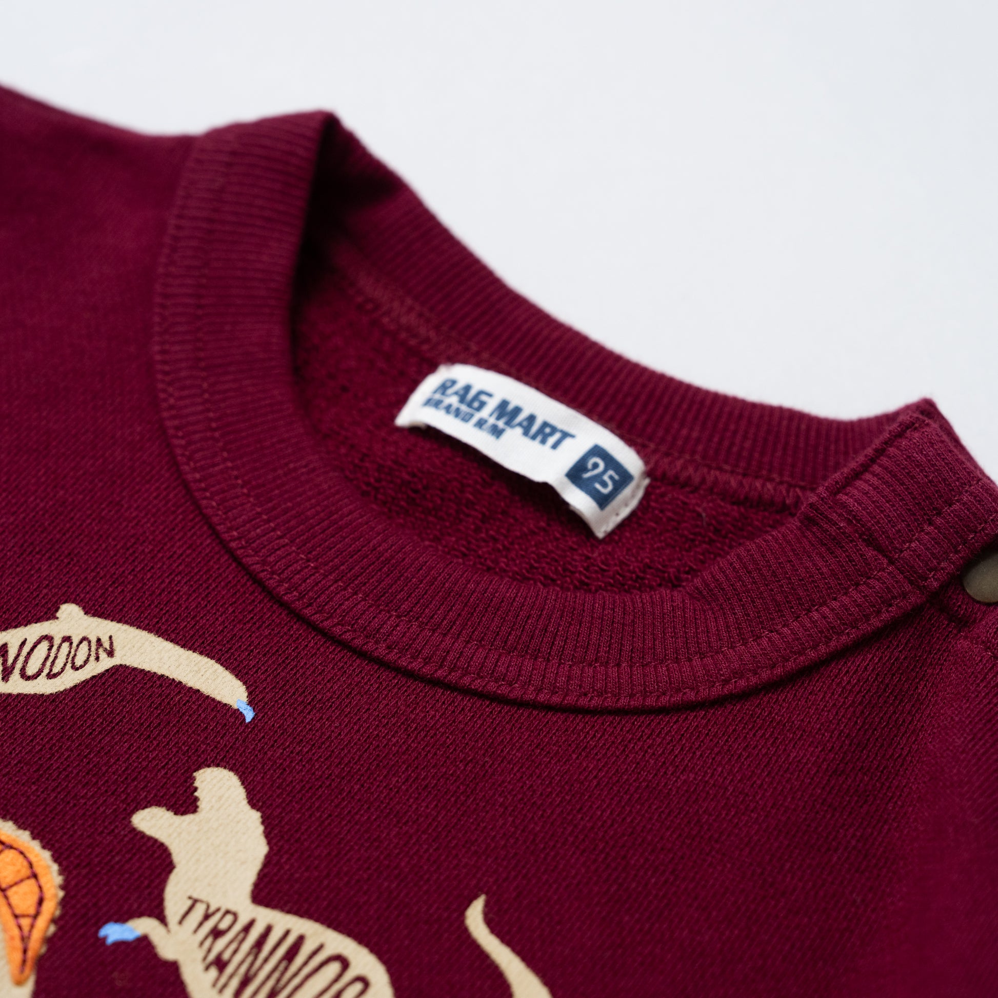 男の子が大好きな、恐竜をモチーフにしたトレーナー。袖の切り替えも楽しい1枚。裏毛素材のトレーナーは春先まで大活躍します。