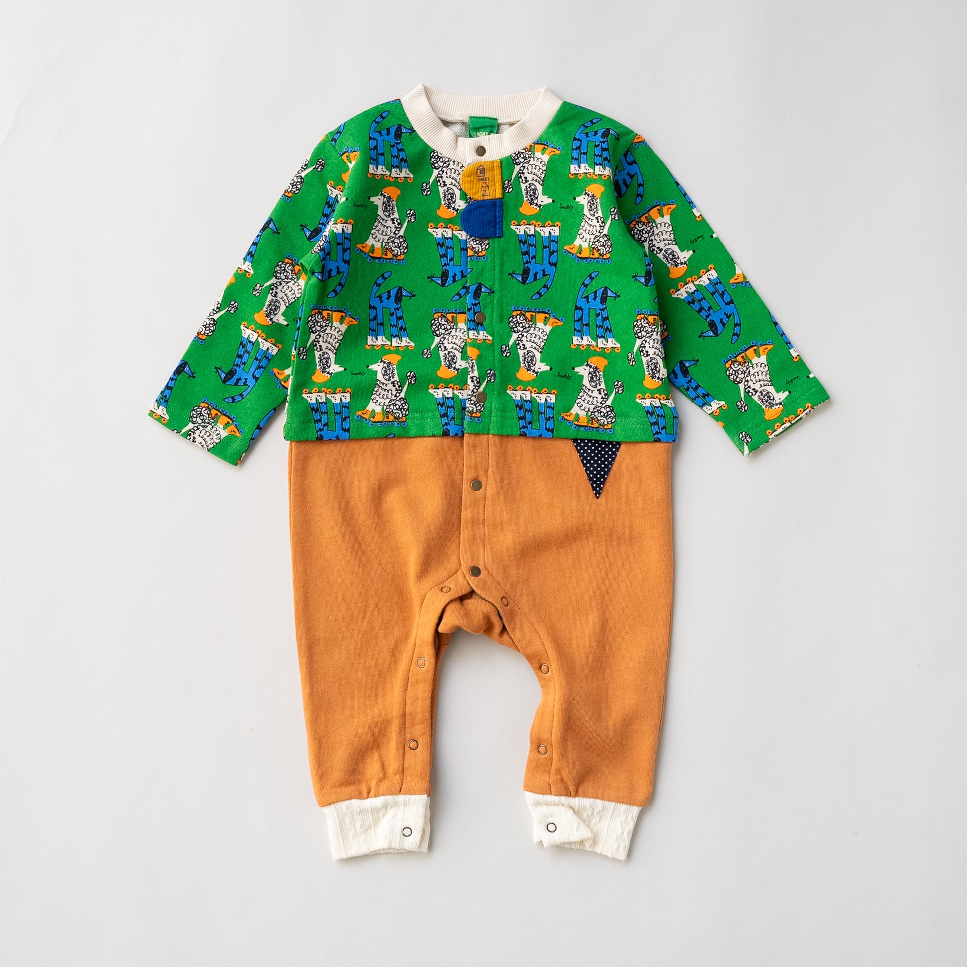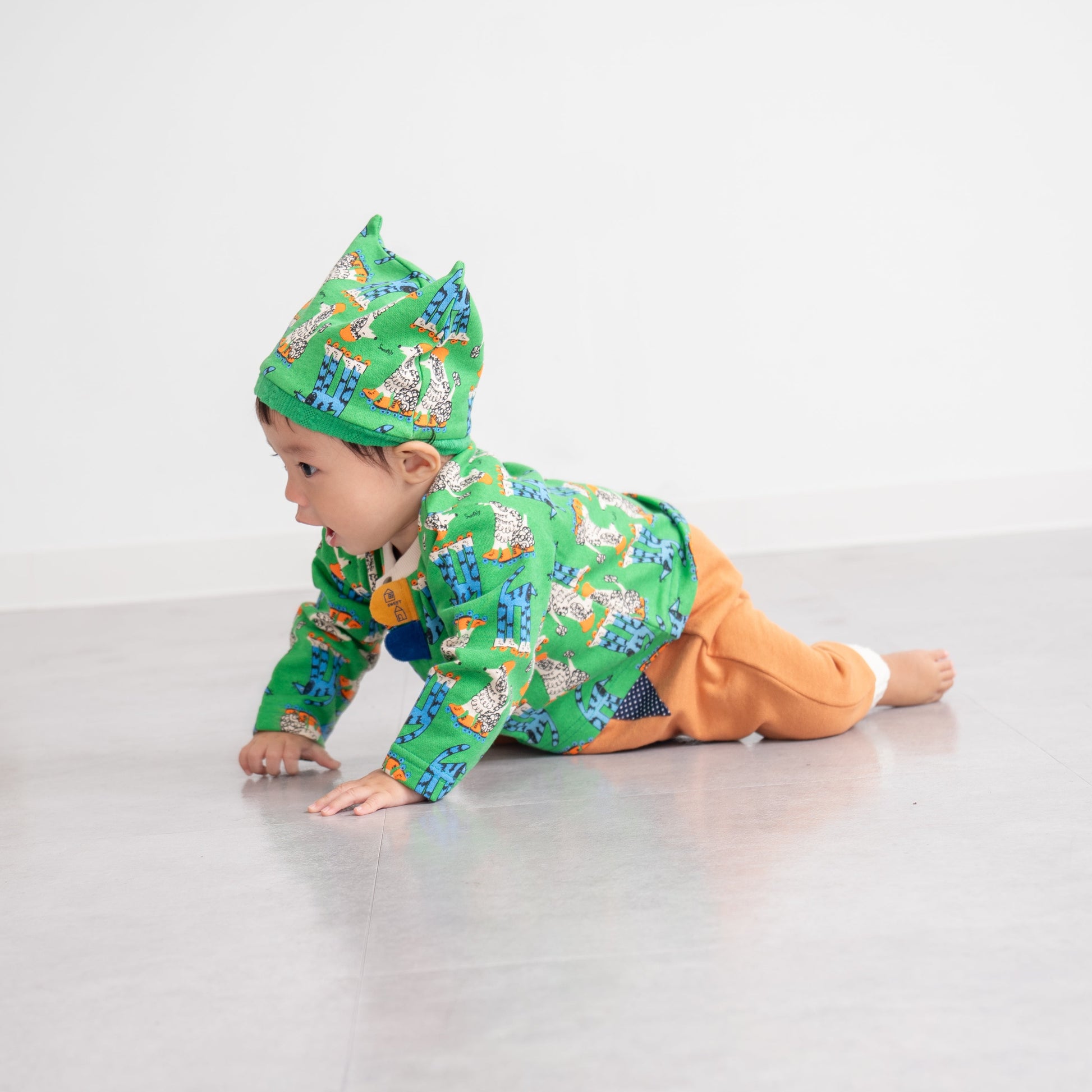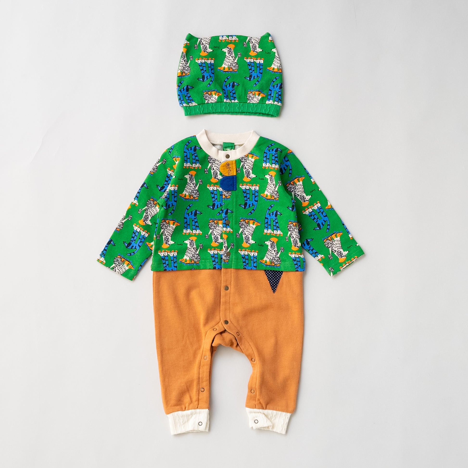 総柄カバーオール(帽子付)【いぬ】 GREEN