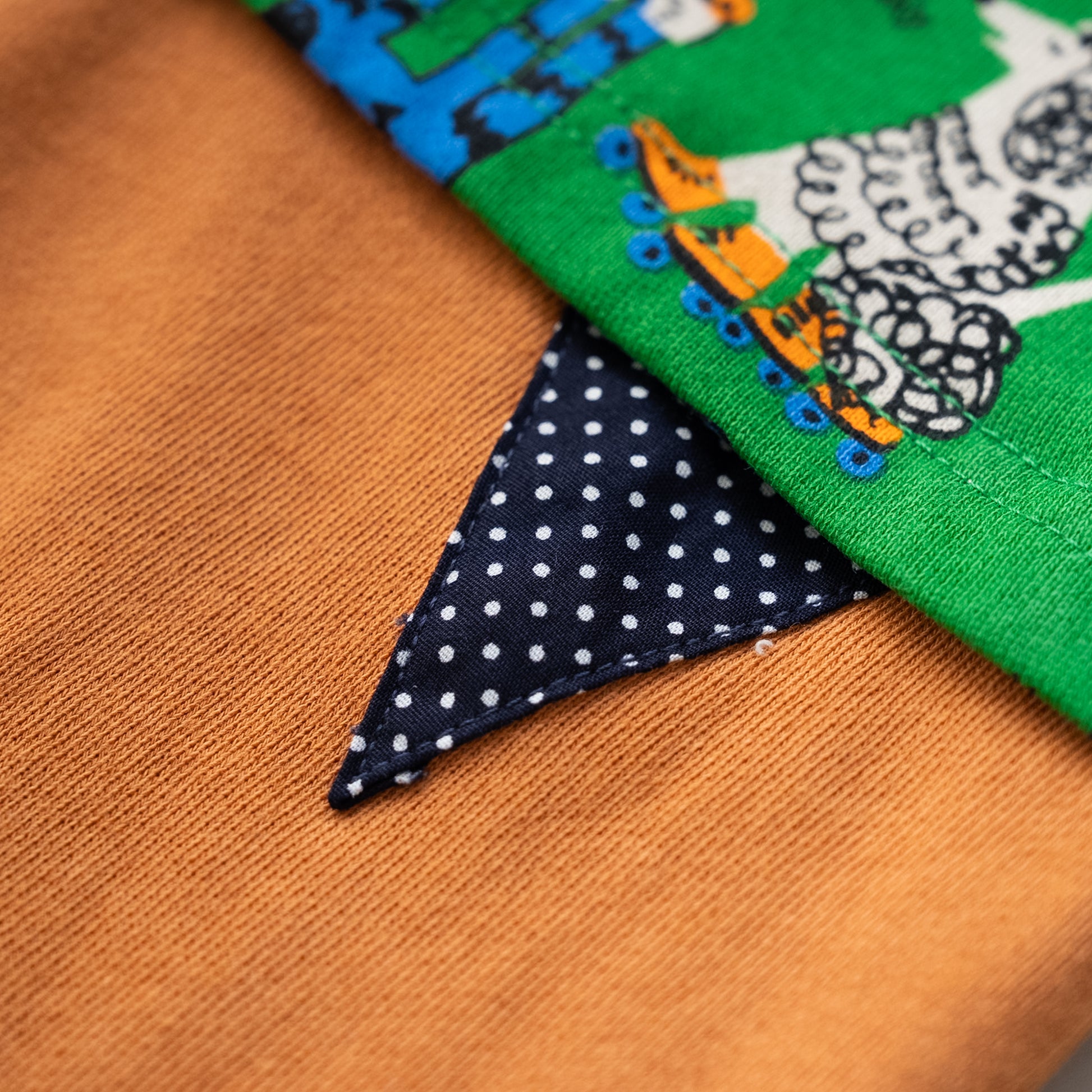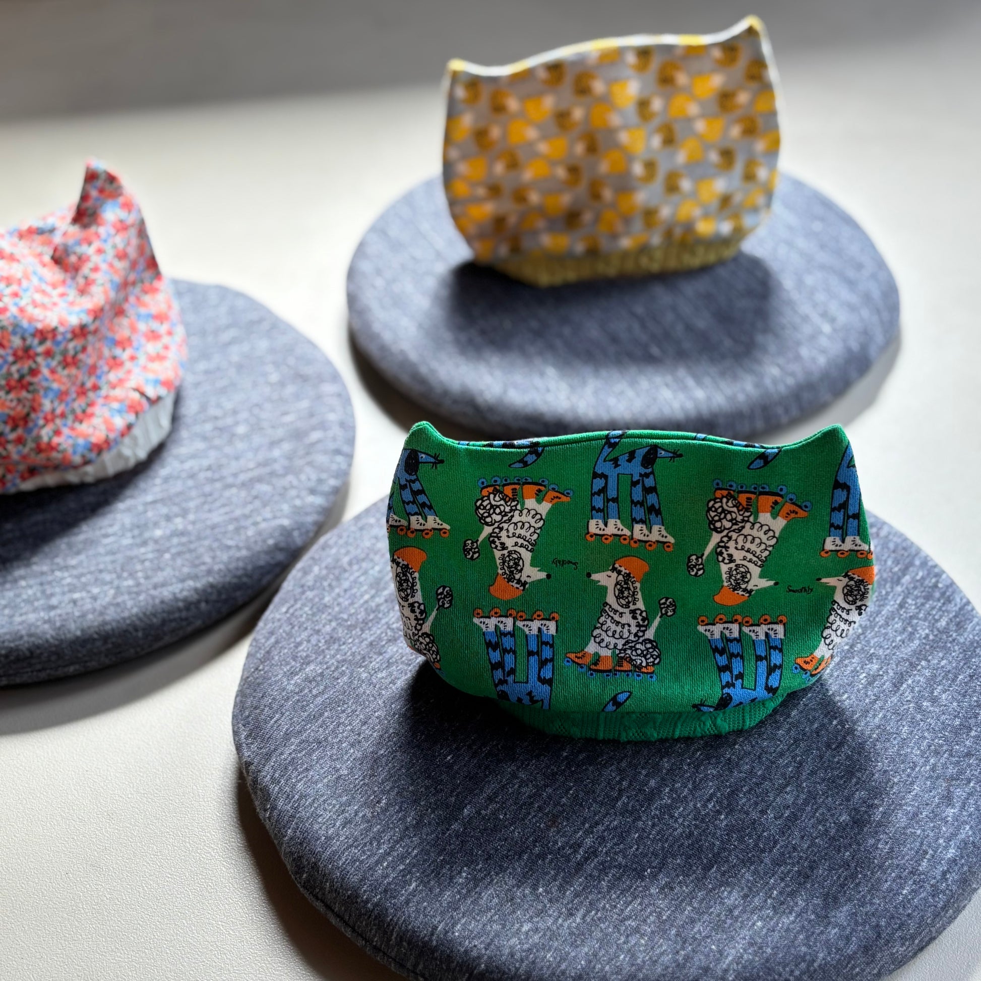 例)ボタンやステッチ糸のカラー・パッチワーク部分の素材変更など。
