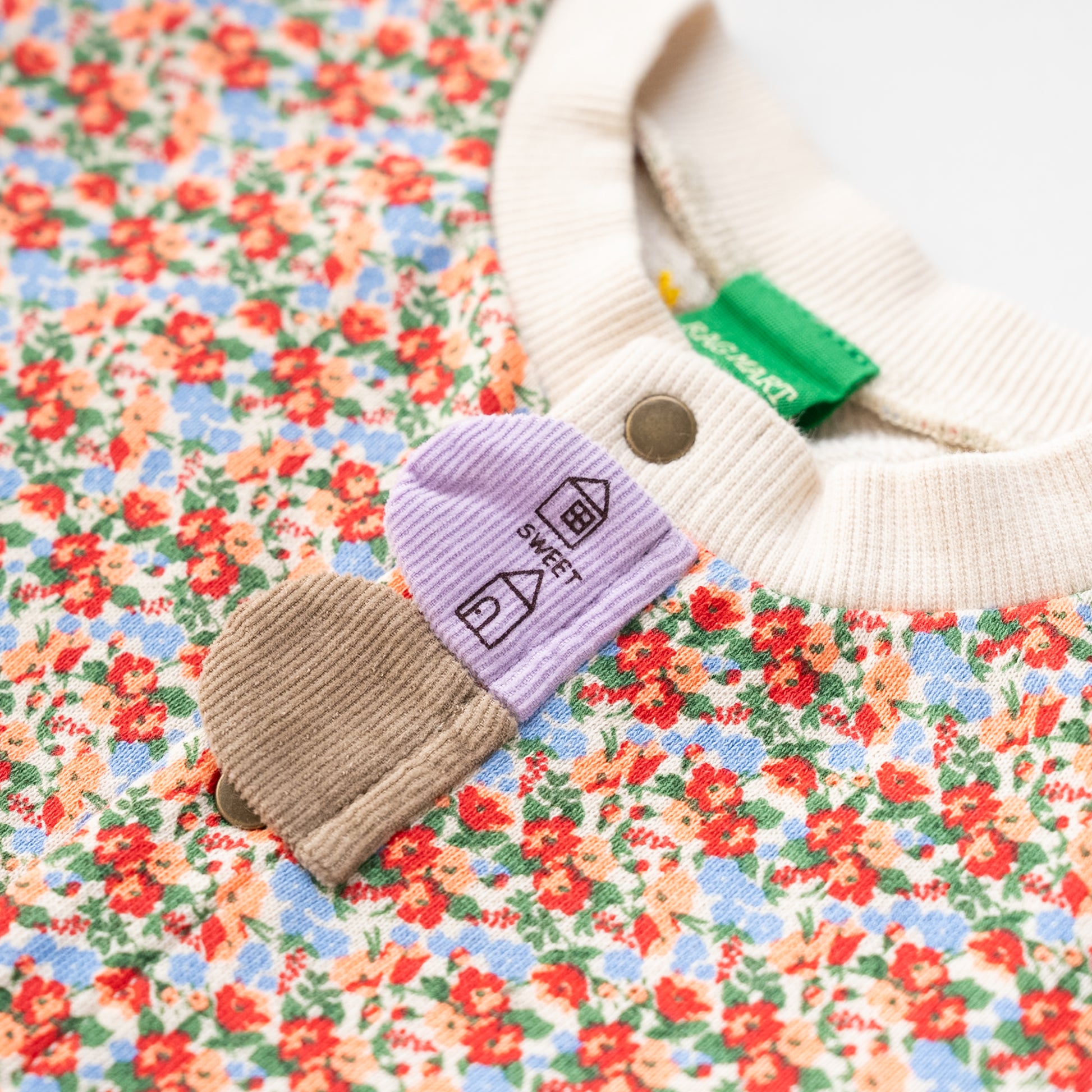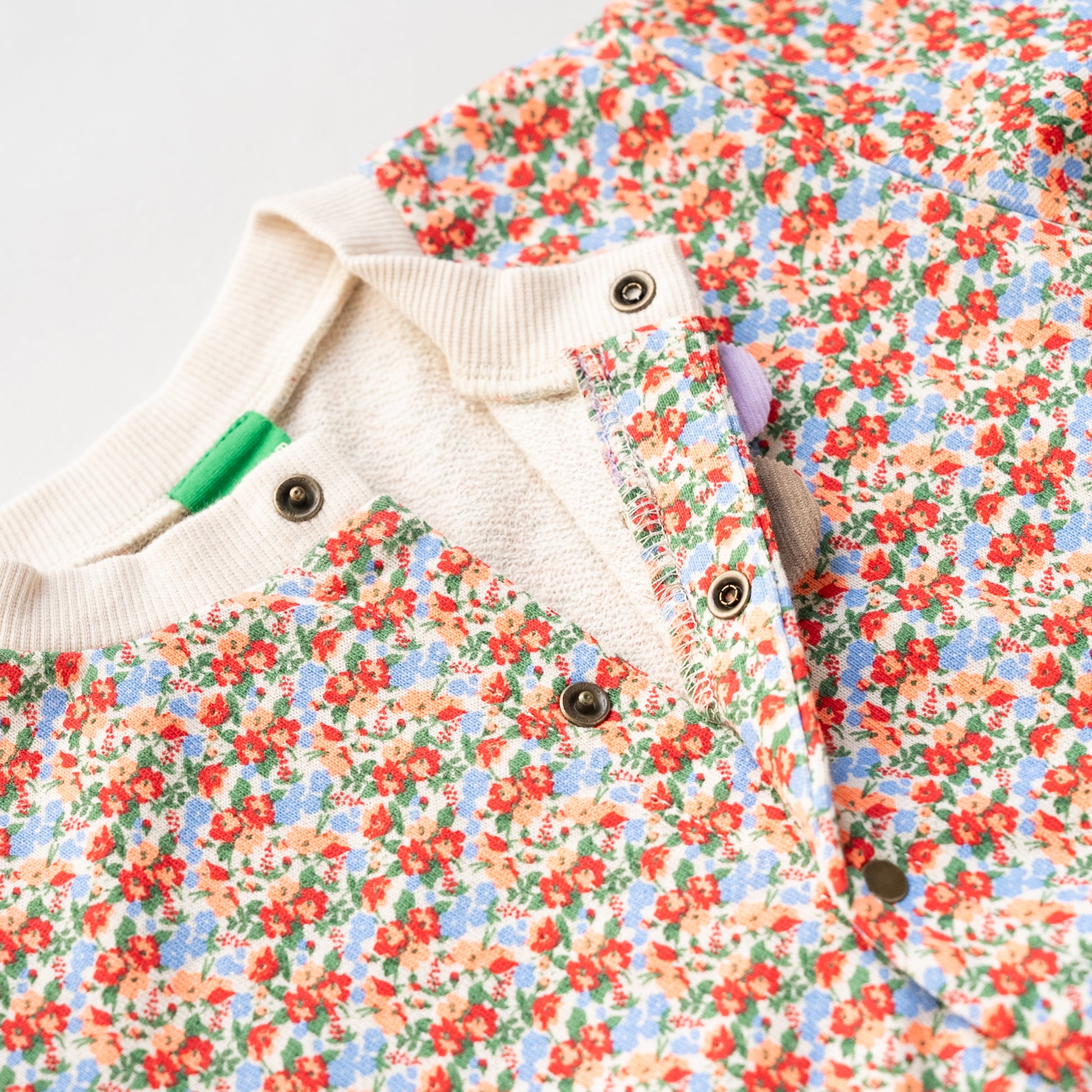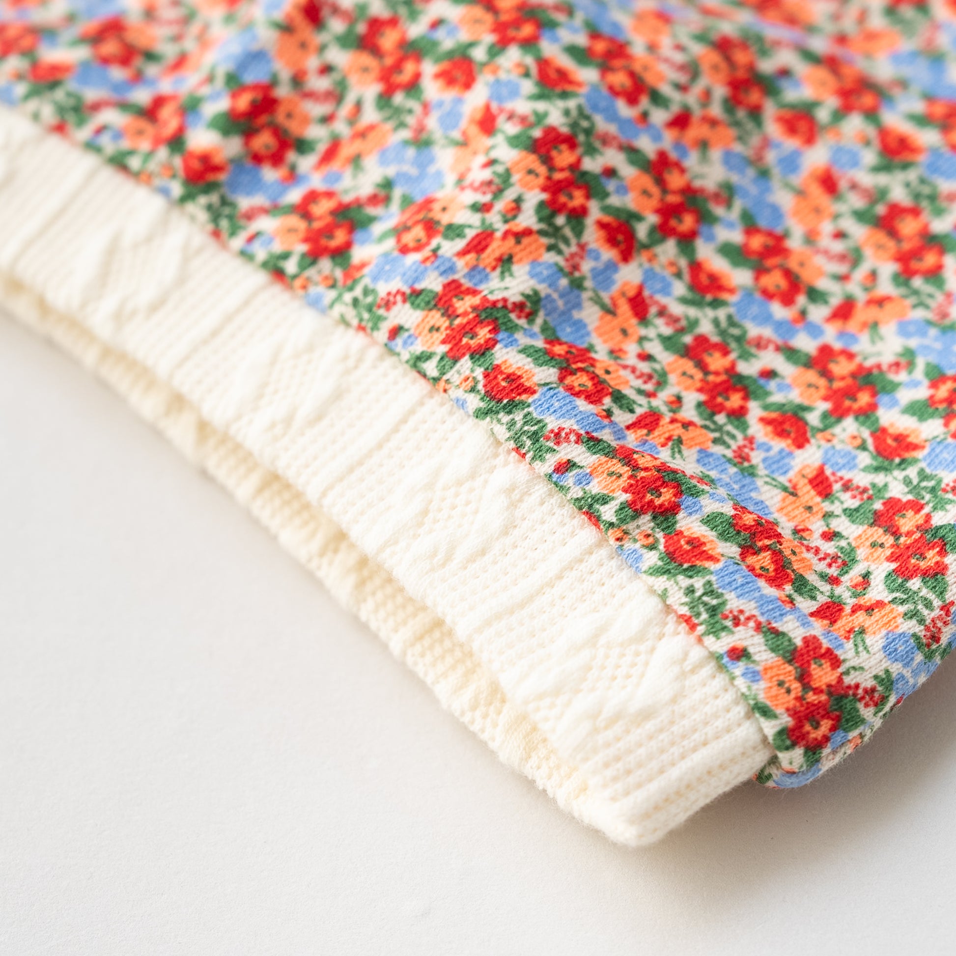 総柄プリントのカバーオールとお揃い柄のベビー帽子でキャッチーなセットアップが楽しめるセットです。赤ちゃんのこの時期にしか楽しめないポップさをぜひ。同柄シリーズでマントやベビーパンツもあります。