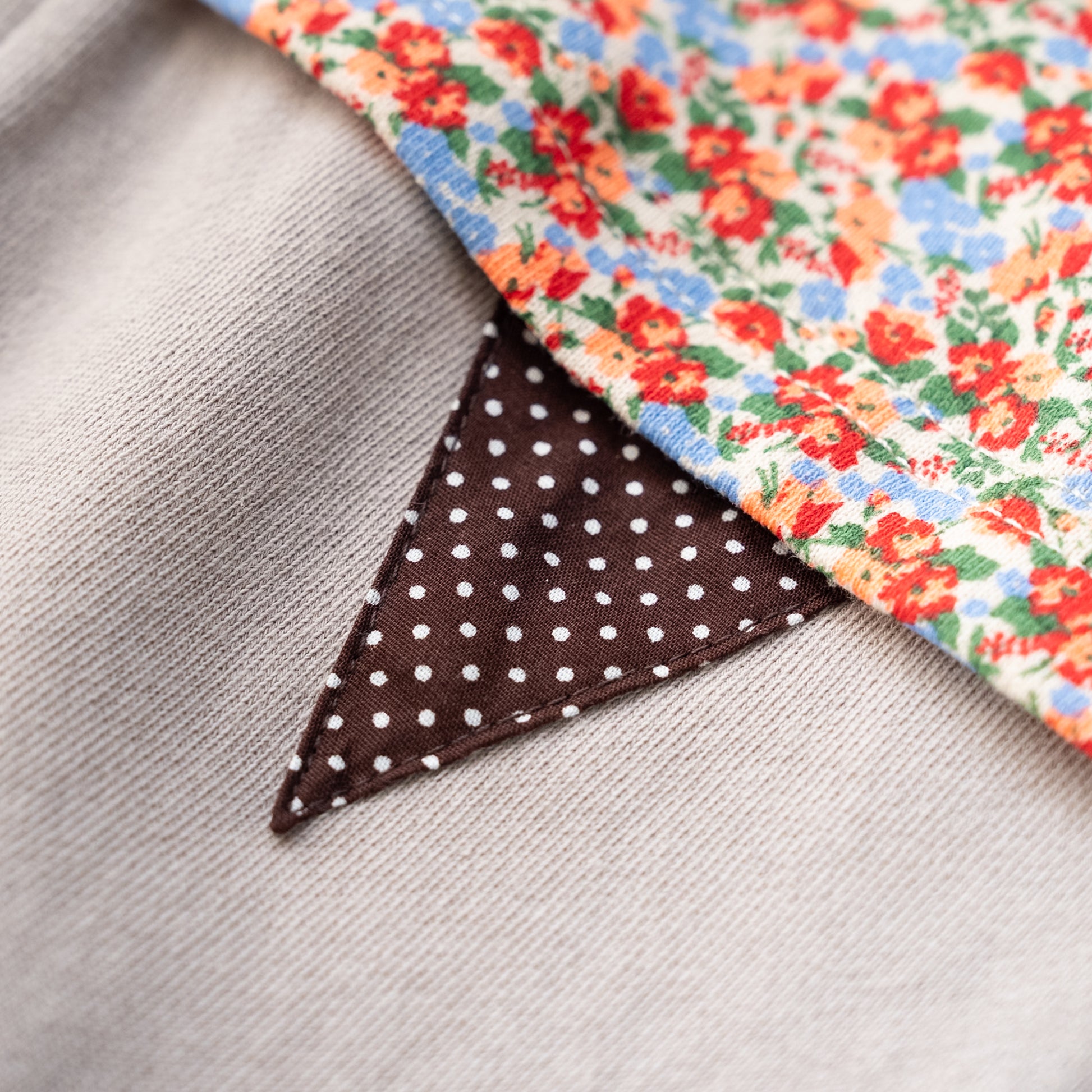 例)ボタンやステッチ糸のカラー・パッチワーク部分の素材変更など。