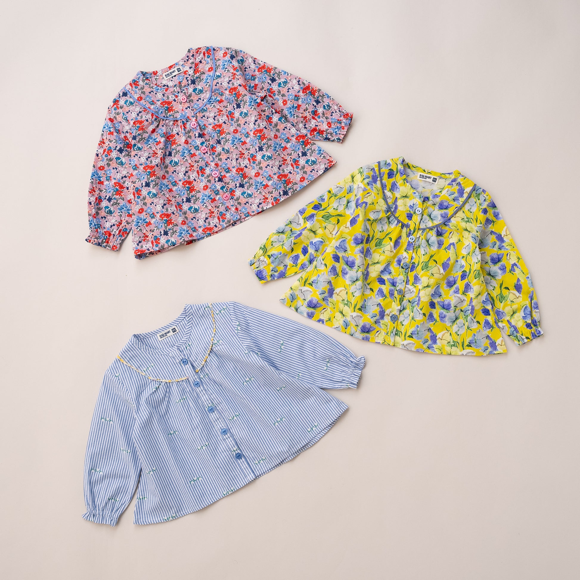 春のお出かけコーデに重宝するブラウスは、1枚持っていると着こなしのワードローブが広がる優秀アイテムです。スッキリとしたボトムでも、トレンド感のあるワイドなボトムやキュロットでも着こなしバランスがとりやすくオススメです。同柄にワンピースもご用意しました。