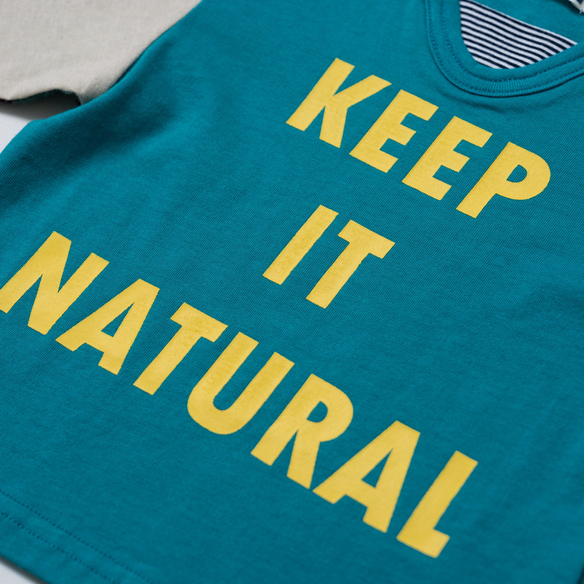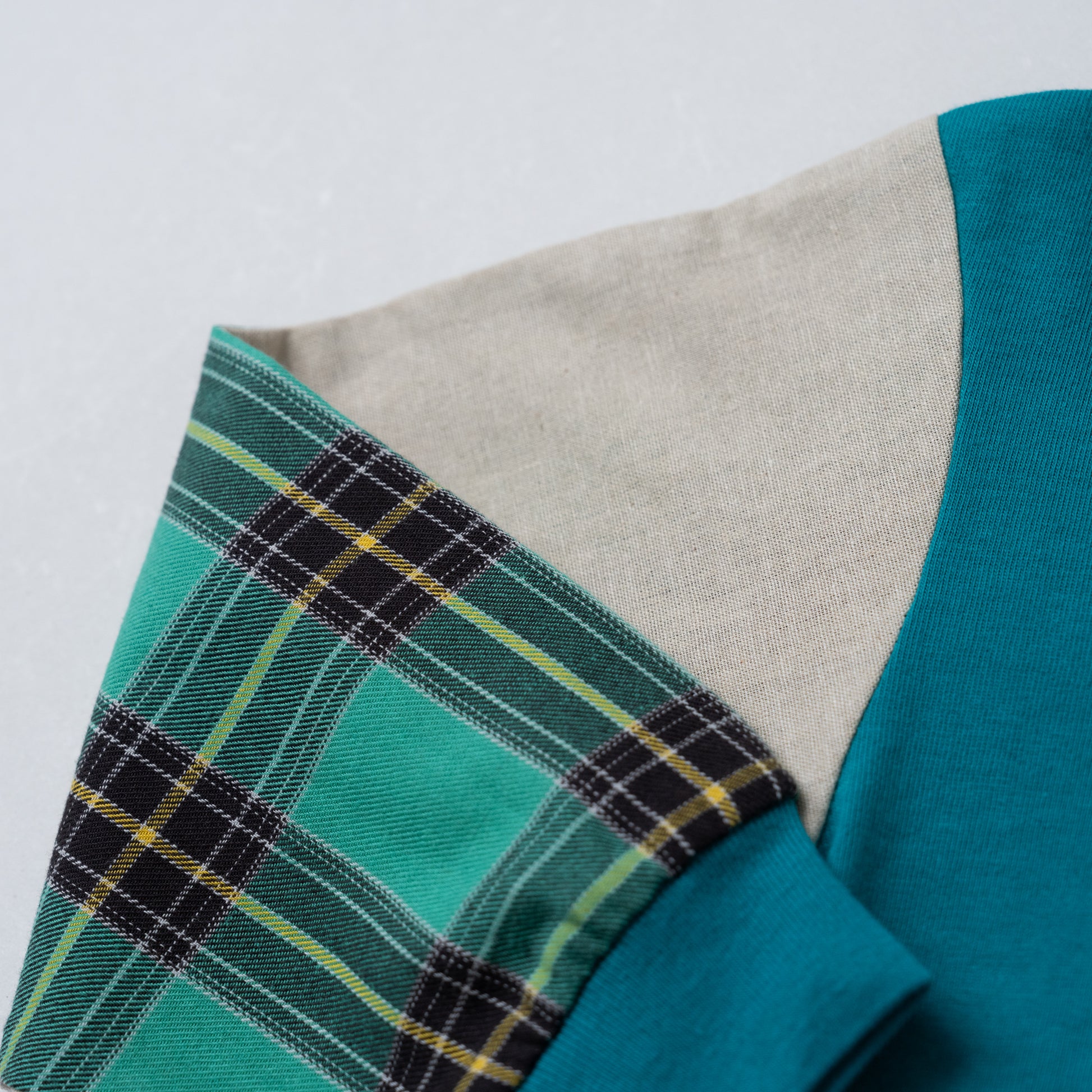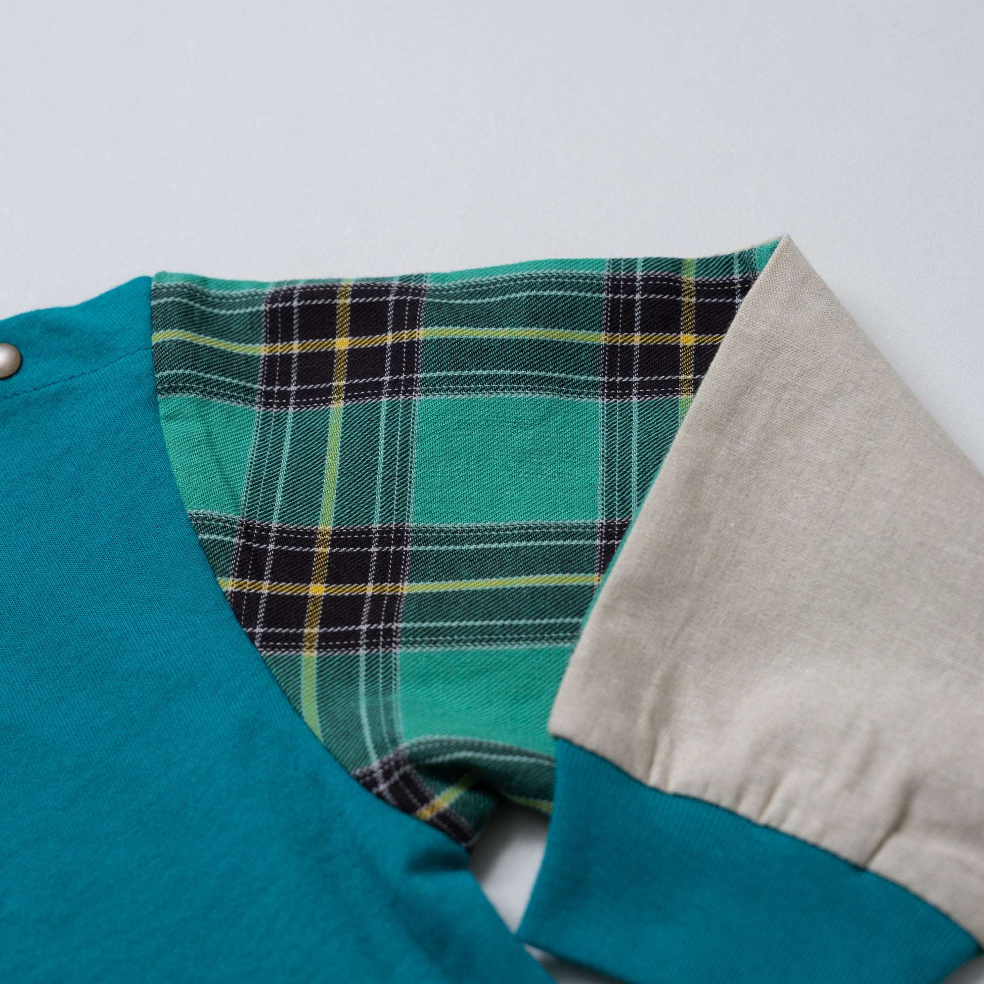 袖の切り替えが印象的な長袖Tシャツ。リラックス感のあるカジュアルなデザインです。普段使いしやすい天竺素材のTシャツは通園・通学にも重宝します。