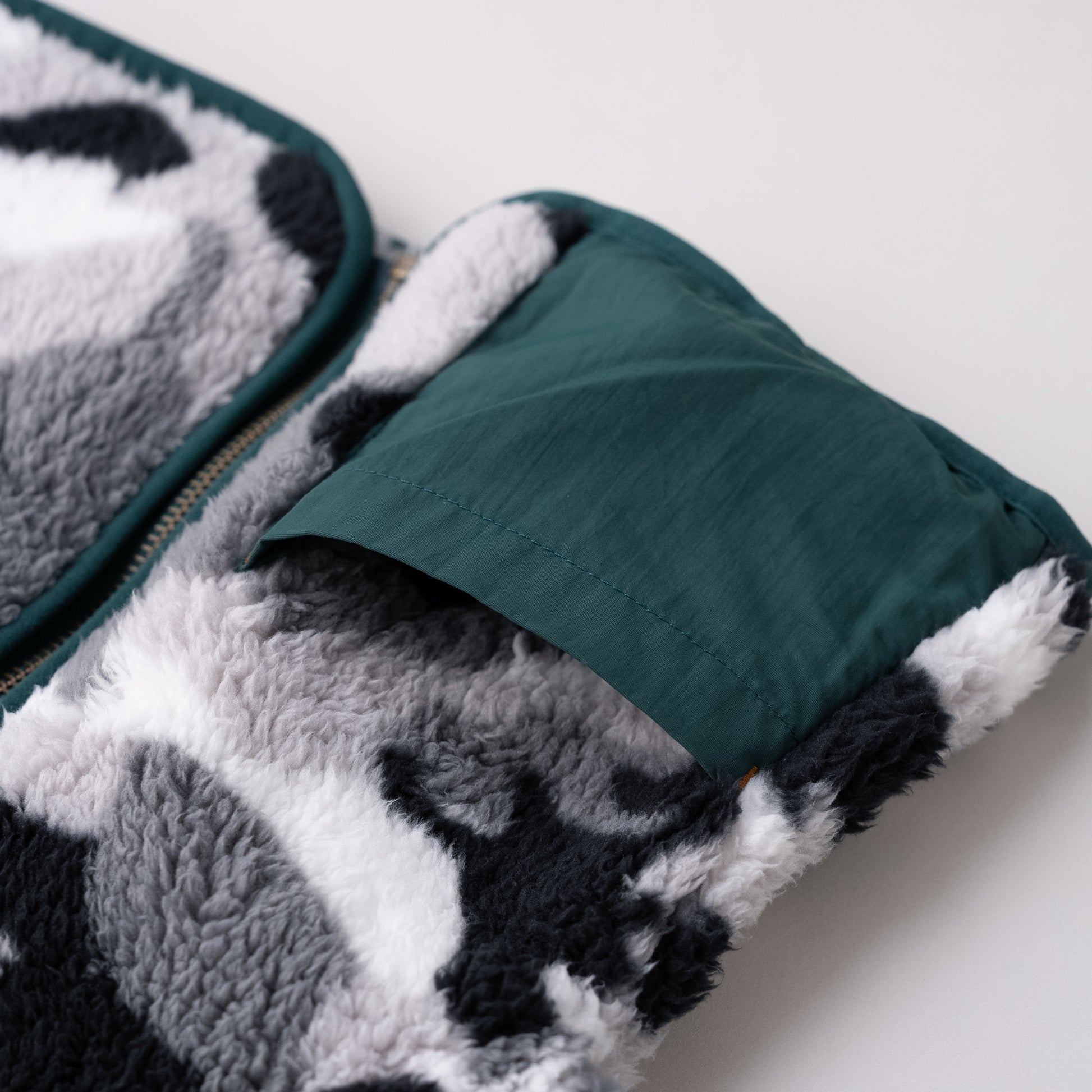 着脱可能なファー素材のライナーをつけた3WAYジャケット。ライナーを外してウインドブレーカーとしてもご使用いただけます。ライナーは迷彩柄がカッコいいデザイン。取り外し可能なフード、着脱しやすいジップアップファスナーなど機能性もありデイリーに大活躍します。